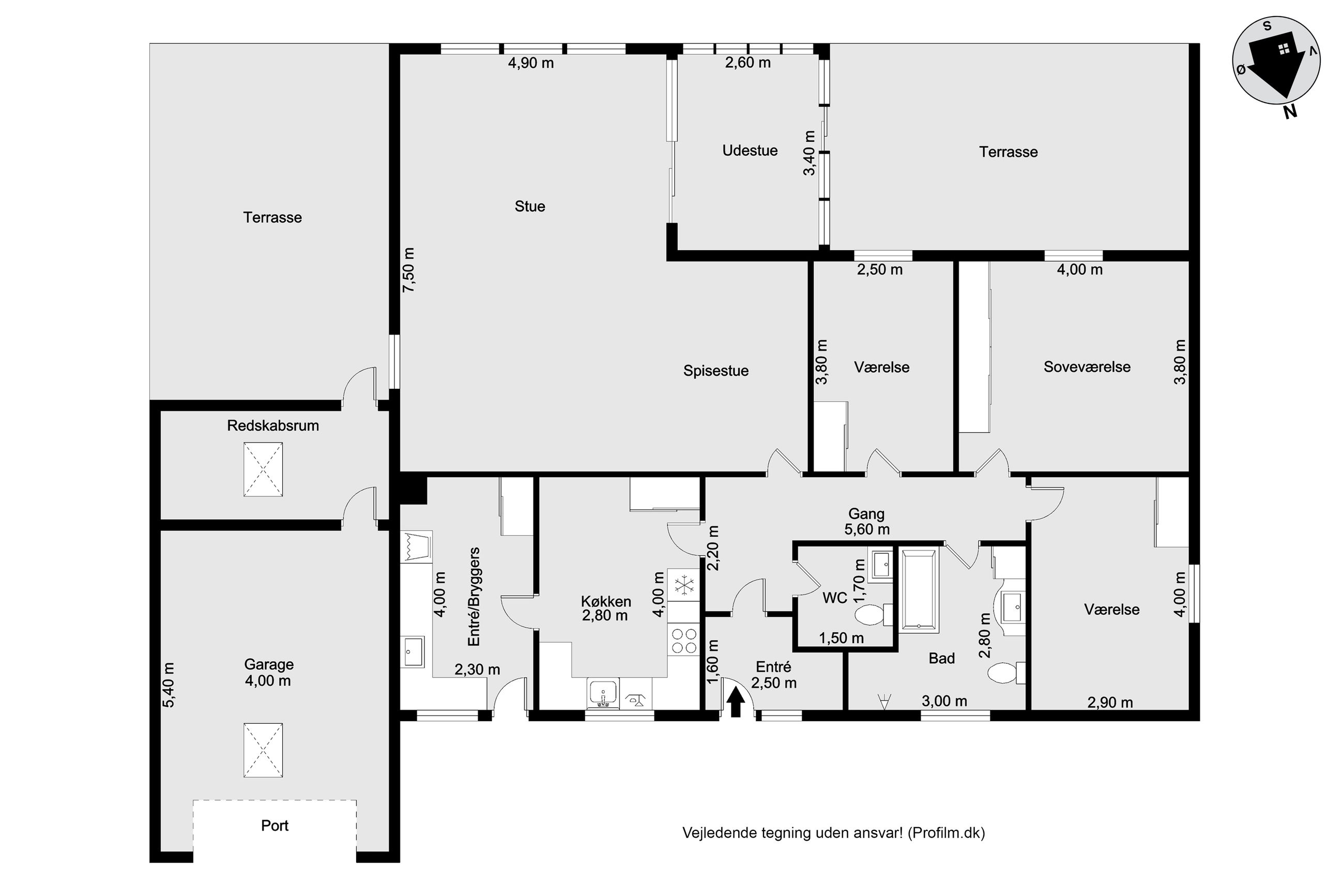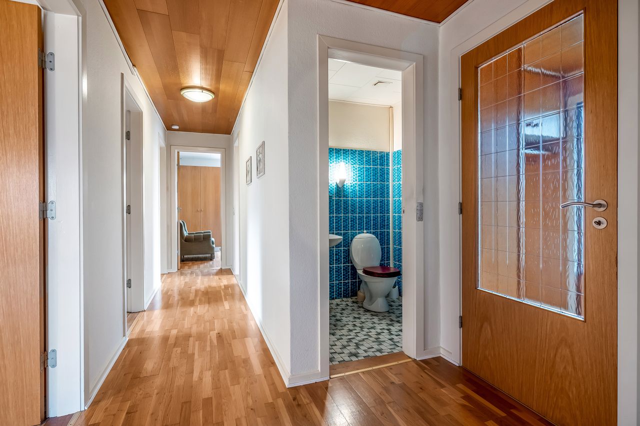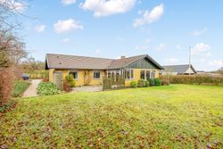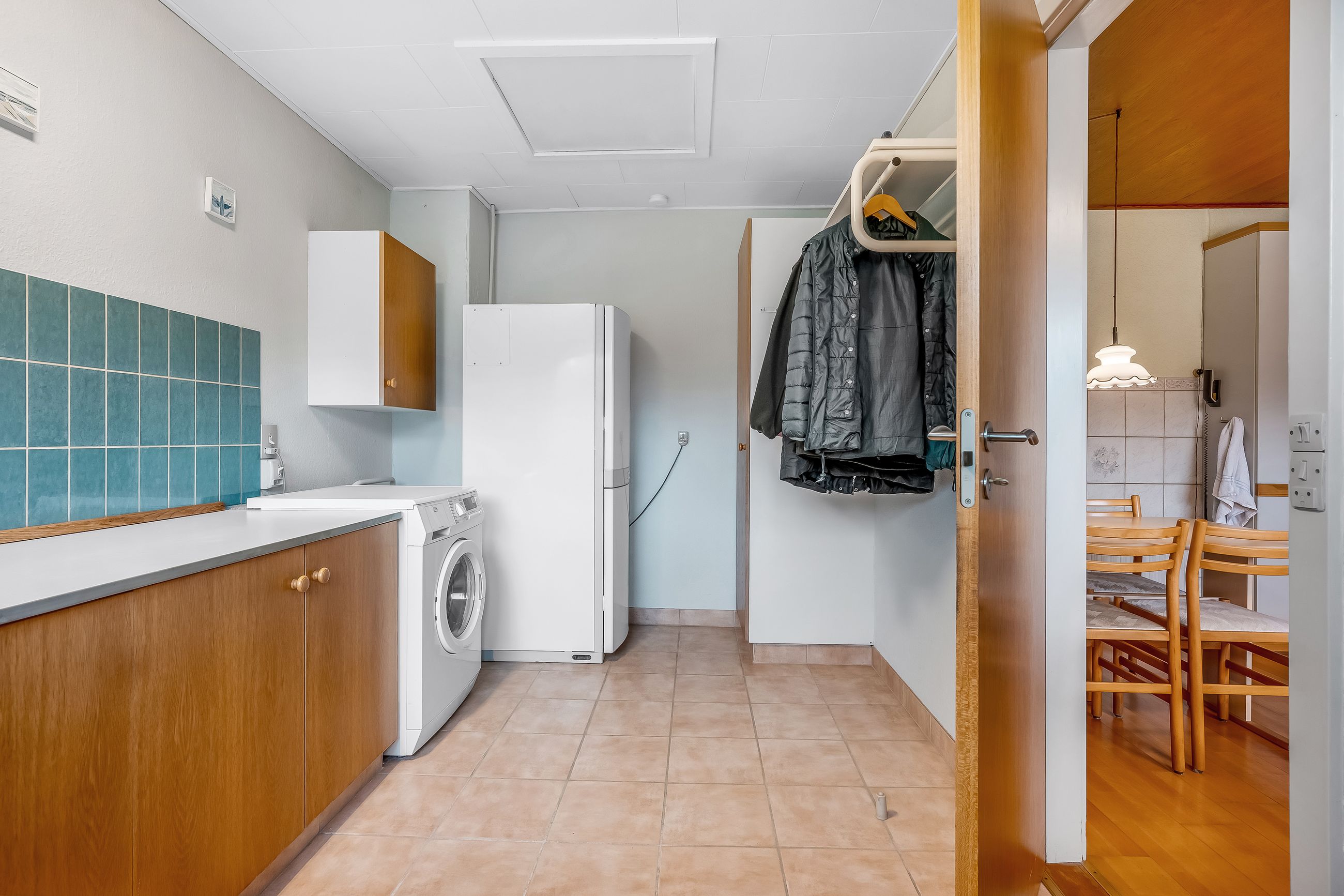 Villaen byder på 148 m2 bolig fordelt på en praktisk indretning. Her findes bryggers med vaskefaciliteter, separat entré og et lyst spisekøkken. En fordelingsgang giver adgang til toilet, badeværelse og tre værelser. Endvidere ligger en stor vinkelstue med gode møbleringsmuligheder og udgang til udestuen, hvorfra der er adgang til terrassen og haven.