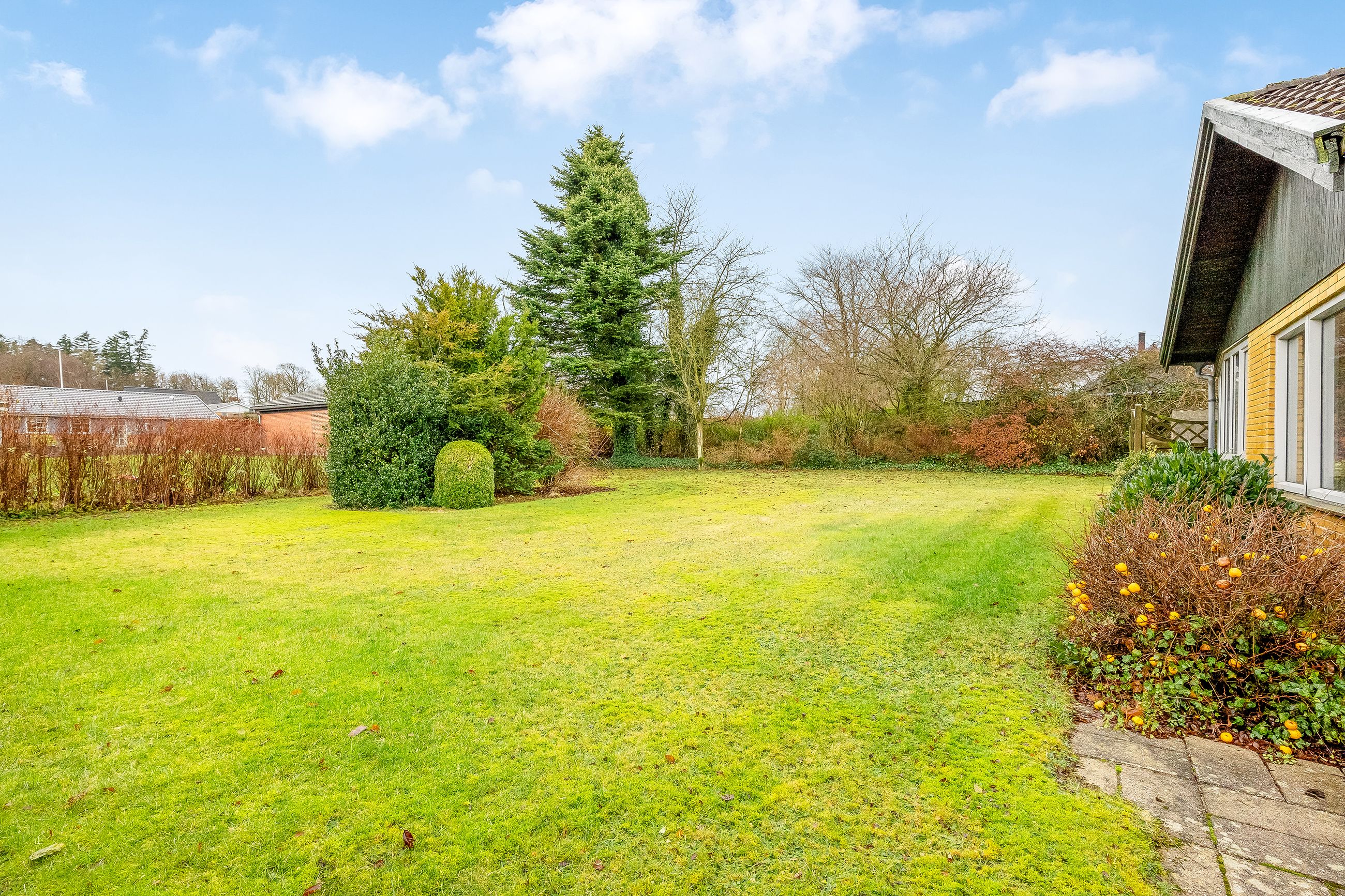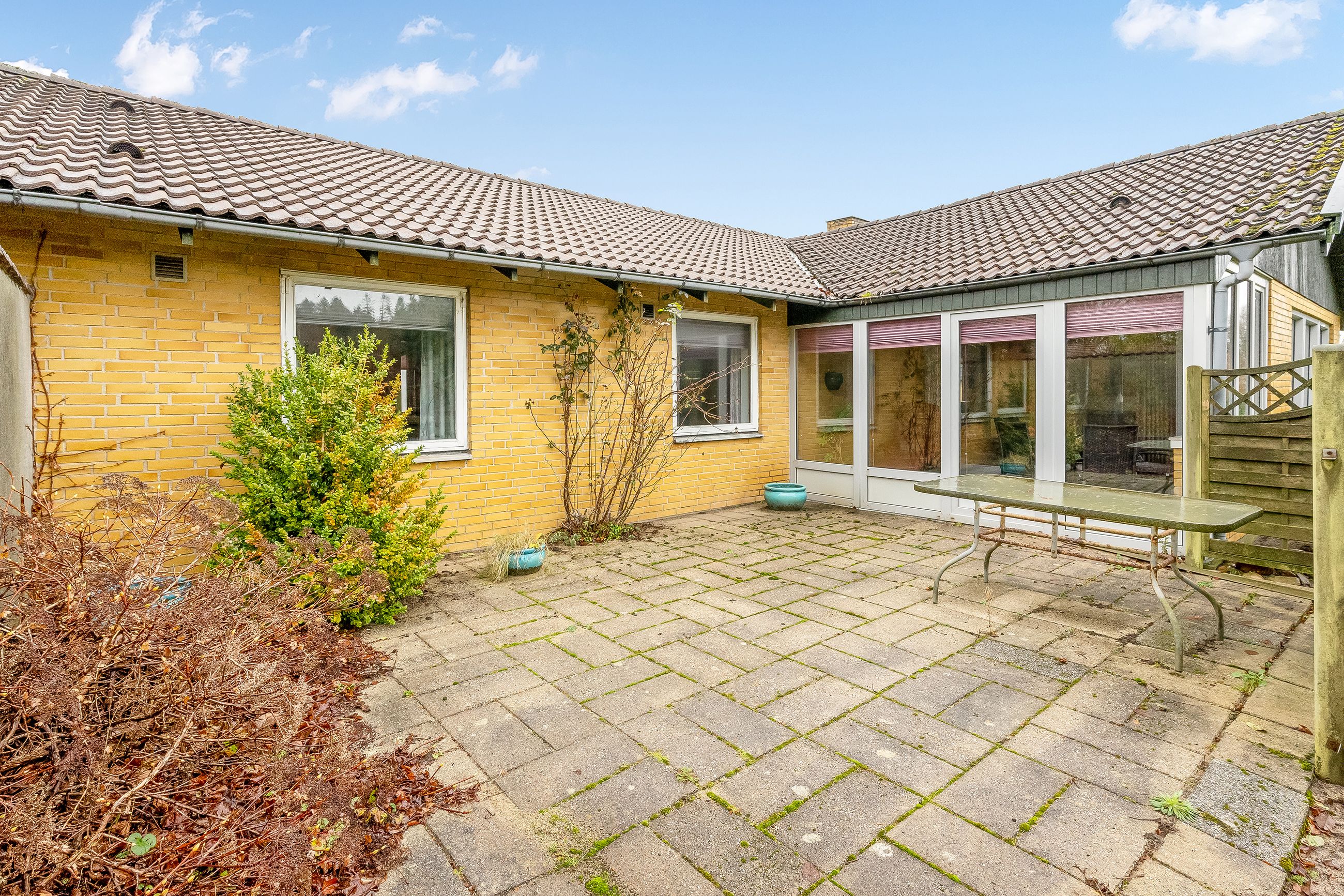 Udendørs findes garage med tilhørende redskabsrum, flere terrasser og en sydvendt have. Haven er anlagt med hyggelig beplantning og giver gode muligheder for at indrette efter egne ønsker og behov.
