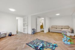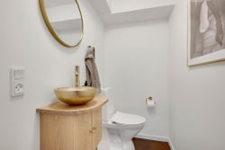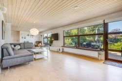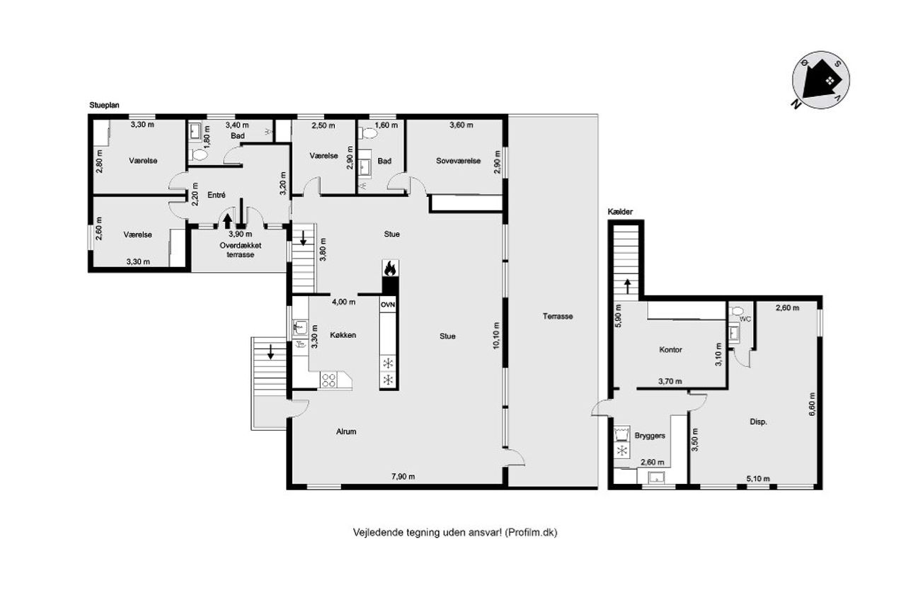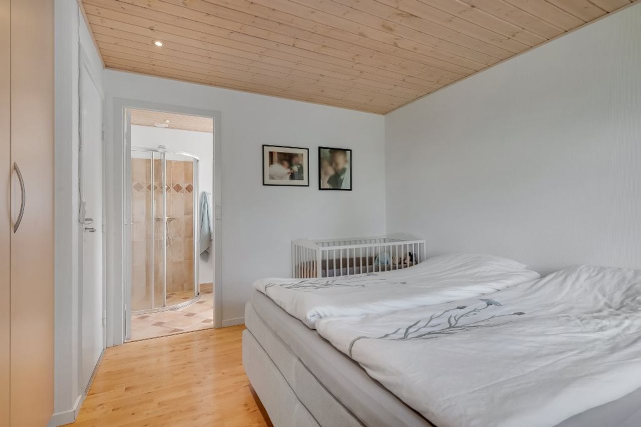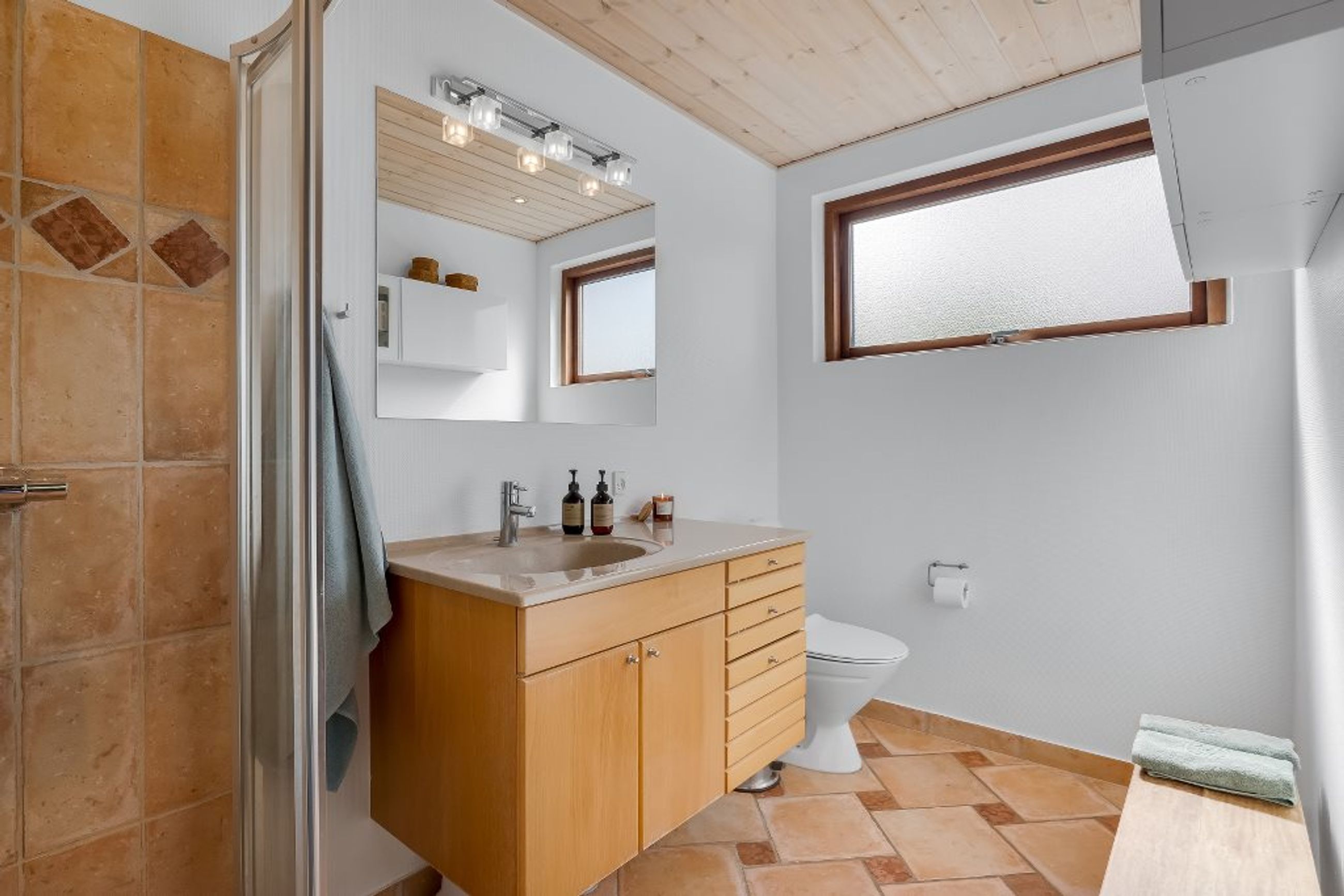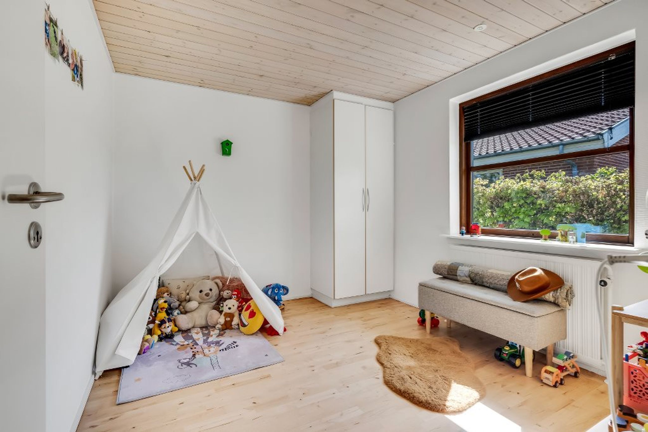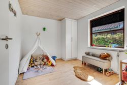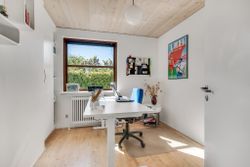 Derudover rummer stueplan yderligere et værelse samt et soveværelse med tilhørende badeværelse – ideelt til forældreafdeling.