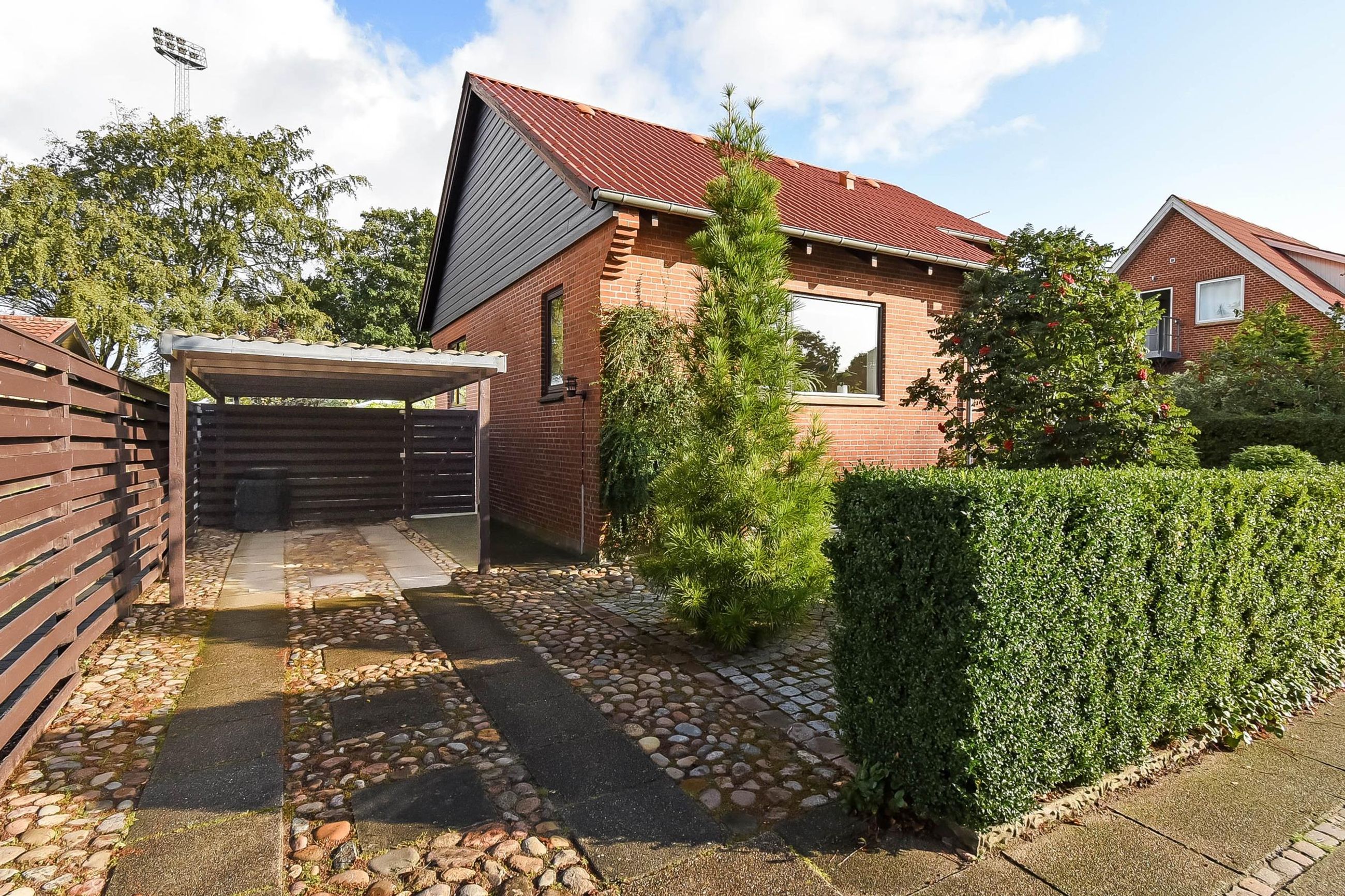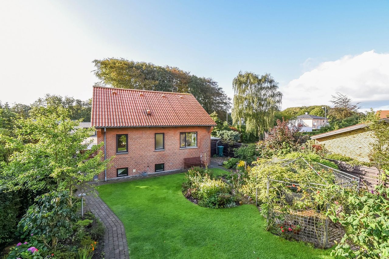 På Lægårdvej 65 finder du dette pæne rødstenshus i 2 plan, der er beliggende særdeles attraktivt tæt på byens centrum. Taget er skiftet på både bolig samt den 15 m2 carport og de udvendige trapper er gået efter. Huset er efterisoleret og vinduer (lydisolerede) er skiftet hvor det trængte. Desuden er vestgavlen monteret med vedligeholdelsesfrit Hardieplank og der er lagt dræn om huset m.m. Kælderen på 68 m2 er således tør og anvendelig med god loftshøjde. Der er malet hvidt, lagt et pænt vinylgulv og i et af de disponible rum er der lagt klinkegulv og indsat et spabad. Indrettet med i alt 3 disponible rum heraf det ene meget stort samt et pænt badeværelse med udskiftet inventar/sanitet, bruseniche samt vaskefaciliteter. 68 m2 bolig i stueplan der er indrettet med entre og fordelingsgang til køkken med pænt malet inventar. Dejlig stue og værelse med godt lysindfald, moderniseret toilet og trapperum med god og bred trappe til kælderen. Lukket have med flere hyggelige kroge i forbindelse med en havestue i glas, et cykelskyr og renoveret tidligere 24 m2 garage – nu indrettet som værksted. Nabo til et af byens boldbaner og Lægårdvej er et kønt og attraktivt strøg med bl.a. fine ældre og flot restaurerede patriciervillaer og helt nye arkitekttegnede boliger. Permanente vejpump er med til, at nedbringe både fart og trafik ad denne indfaldsvej på ca. 1,5 km til centrum. Kort afstand til både vuggestue/børnehave/fritidshjem og den populære Rolf Krake Skole samt bl.a. byens anlæg med søer og grønne områder.
