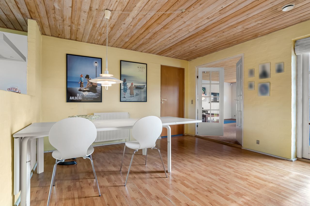 Huset rummer i alt fire værelser, hvilket giver plads til både børn, gæster og hjemmekontor. Dertil kommer en separat entré og et badeværelse med et lyst inventar.
