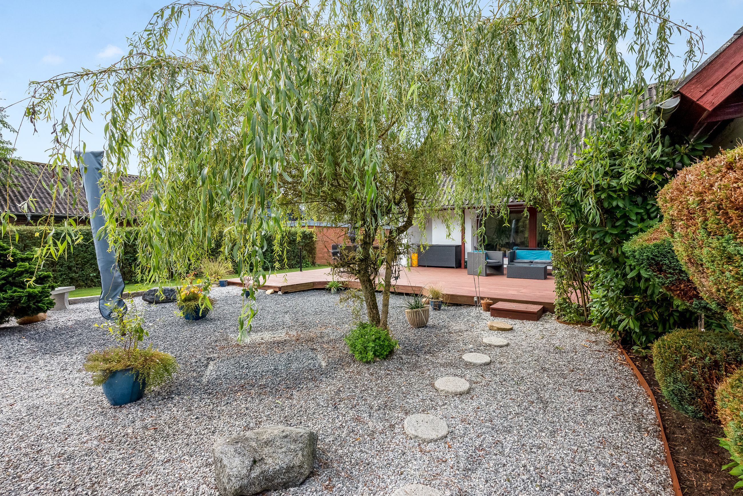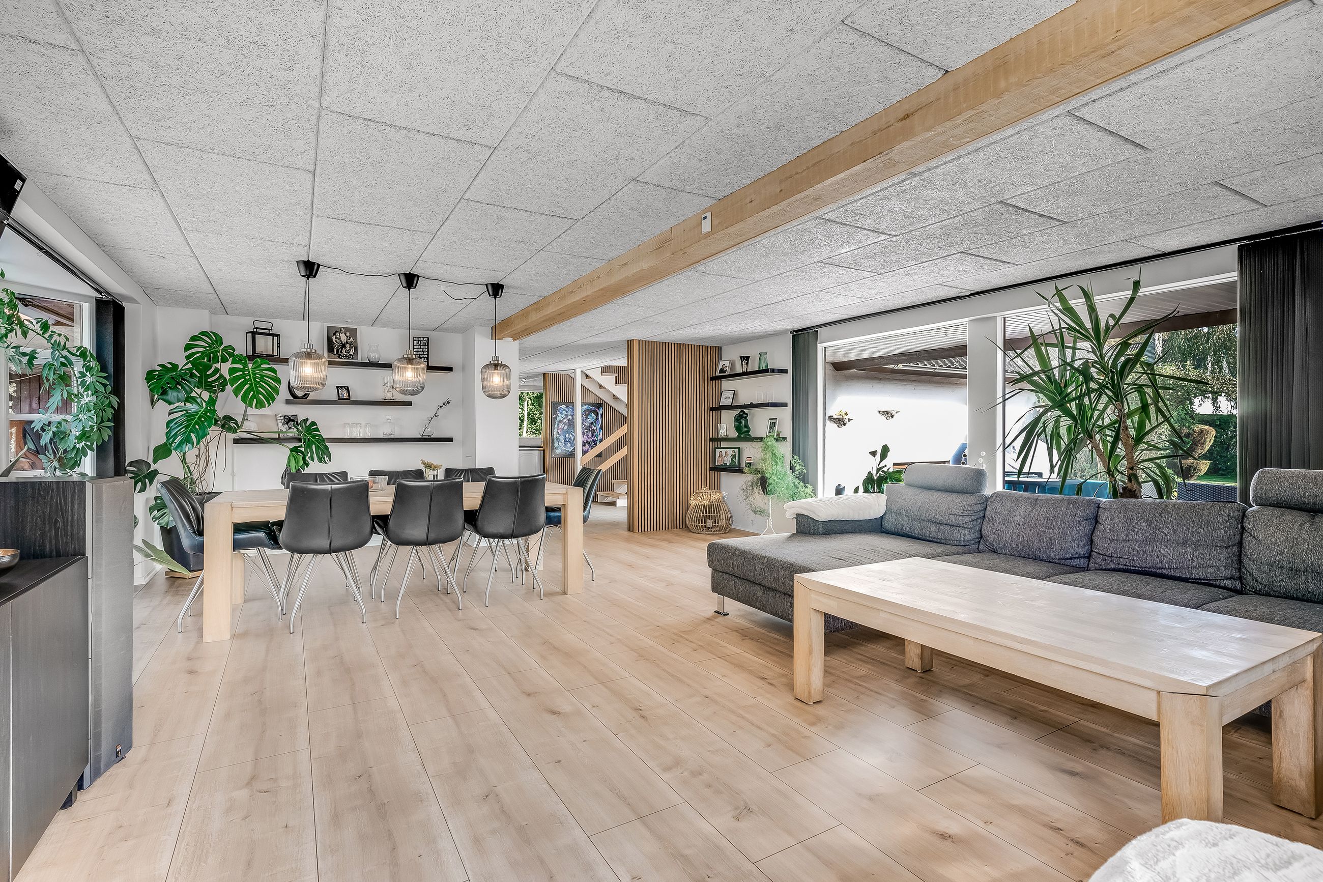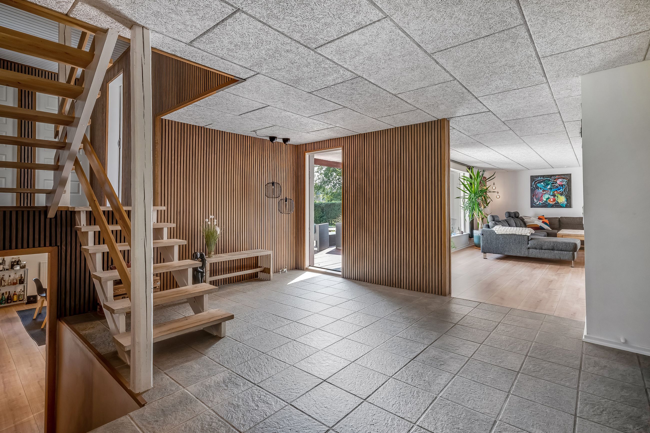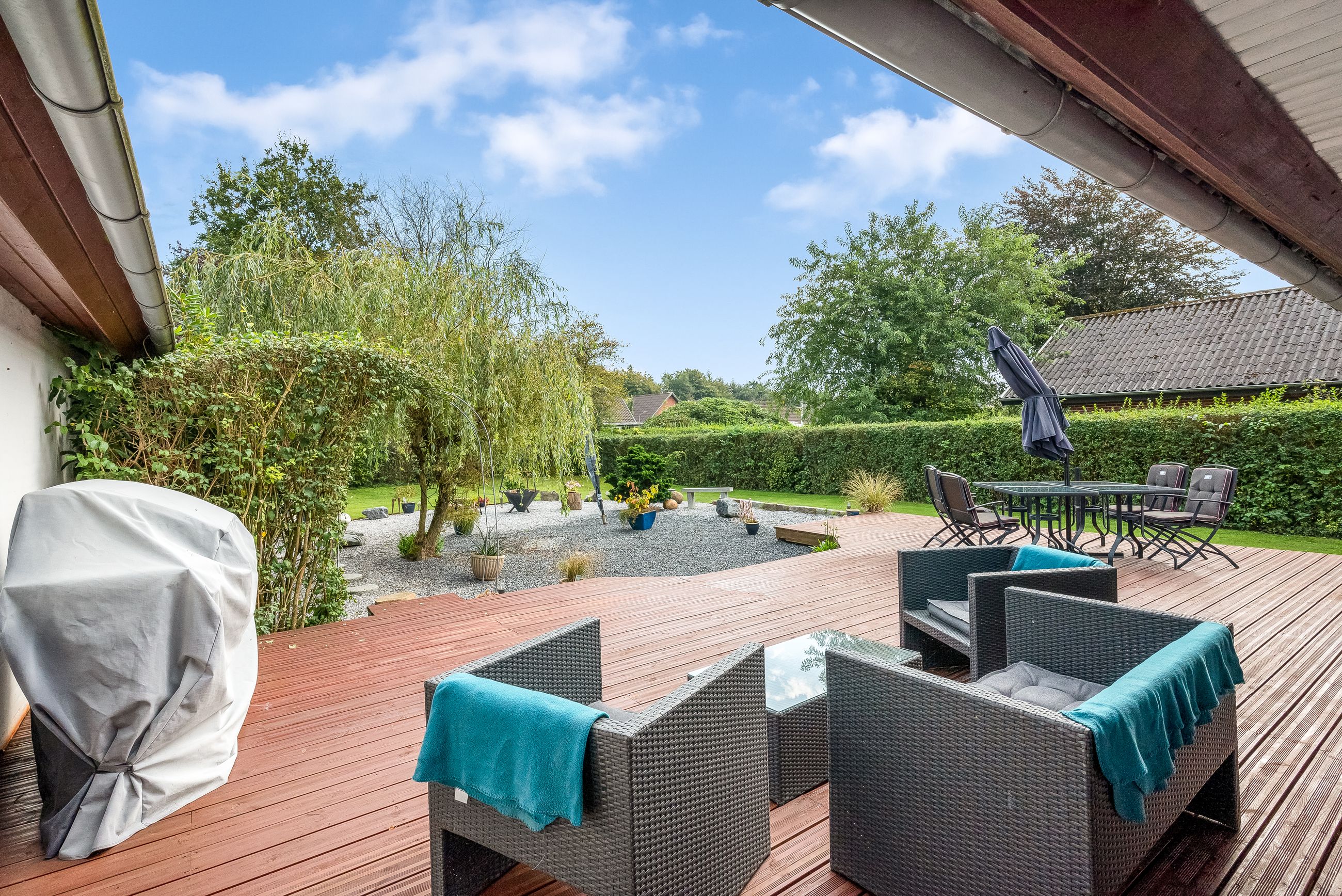 Er I på udkig efter en rummelig og familievenlig bolig i rolige omgivelser? Så er denne villa for enden af en lukket vej i Feldborg stedet for jer! Med 5 værelser, 2 badeværelser og store opholdsrum, er der masser af plads til både privatliv og hyggeligt samvær. Huset er indrettet i finurlige niveauforskelle, som giver en helt særlig rumfornemmelse, når man bevæger sig rundt. Villaen byder i stueplan på et åbent køkken/alrum, der fungerer som husets hjerte med akustikpaneler i valnød og køkkenets praktiske detaljer - som en ovn i ergonomisk højde. I den lyse stue er der en hyggelig karnap og store vinduer, der giver et dejligt lysindfald. Derudover er der 2 toiletter, bryggers og 2 værelser - hvoraf det ene har et tilstødende walk-in-closet. På 1. salen findes yderligere 3 værelser med charmerende skråvægge samt et badeværelse med Aubo-elementer. I kælderen er der 2 disponible rum samt et badeværelse med spabad. Med husets mange værelser og disponible rum er der mange muligheder, hvad end der ønskes hobbyrum, kontor eller noget helt tredje? Huset er i 2021 både blevet hulmursisoleret og fået efterisoleret loft. Ude venter der en pragtfuld grund med en nyere anlagt terrasse med granitskærver fra 2021 og en lækker træterrasse fra 2020. Til huset hører desuden en carport, et skur og et havehus med udendørs pejs. Beliggenheden er ideel med indkøb, skole og sportsfaciliteter inden for få kilometer, og Holstebro, Herning og Ikast kan nås i bil indenfor omtrent en halv time.