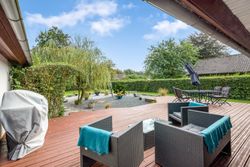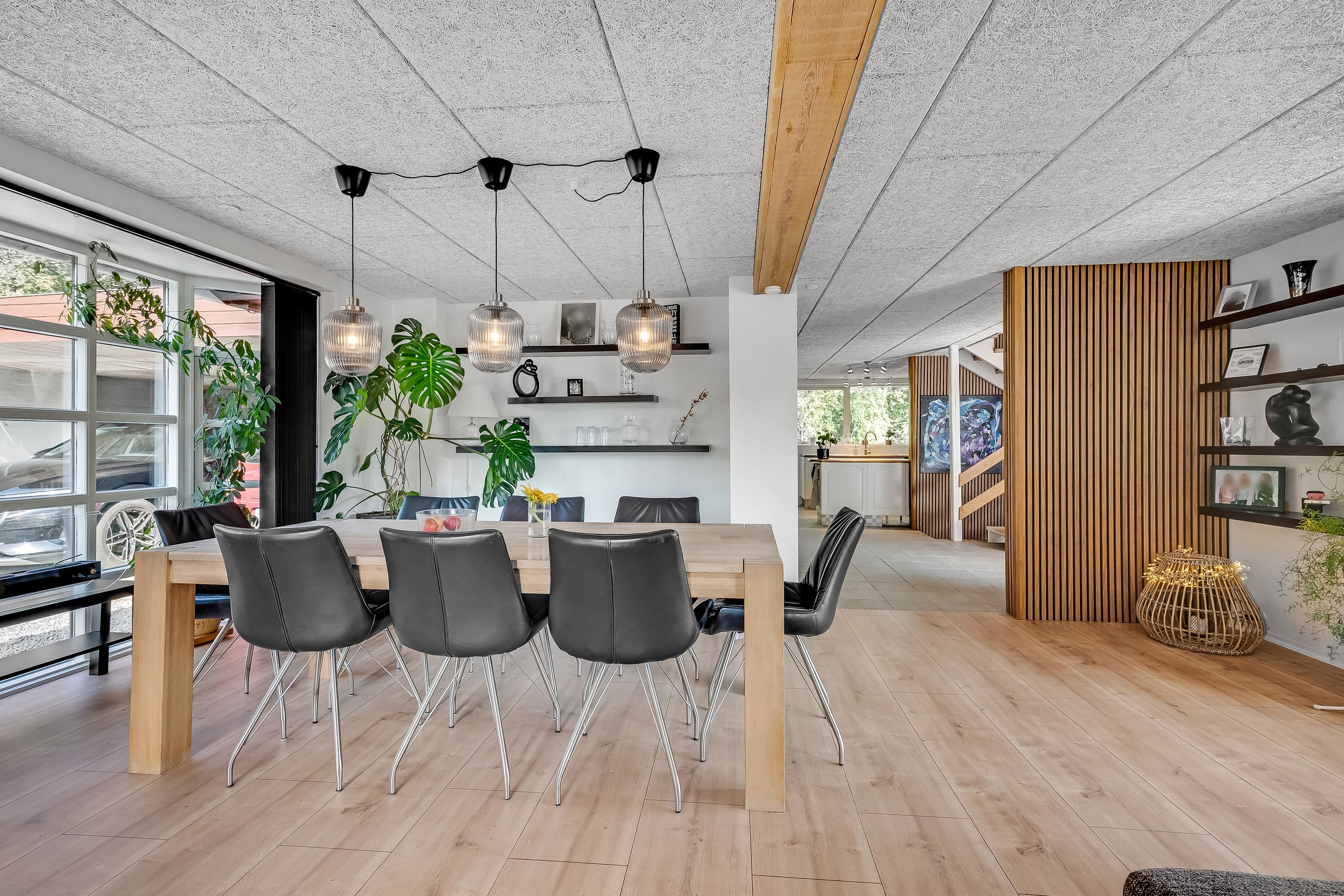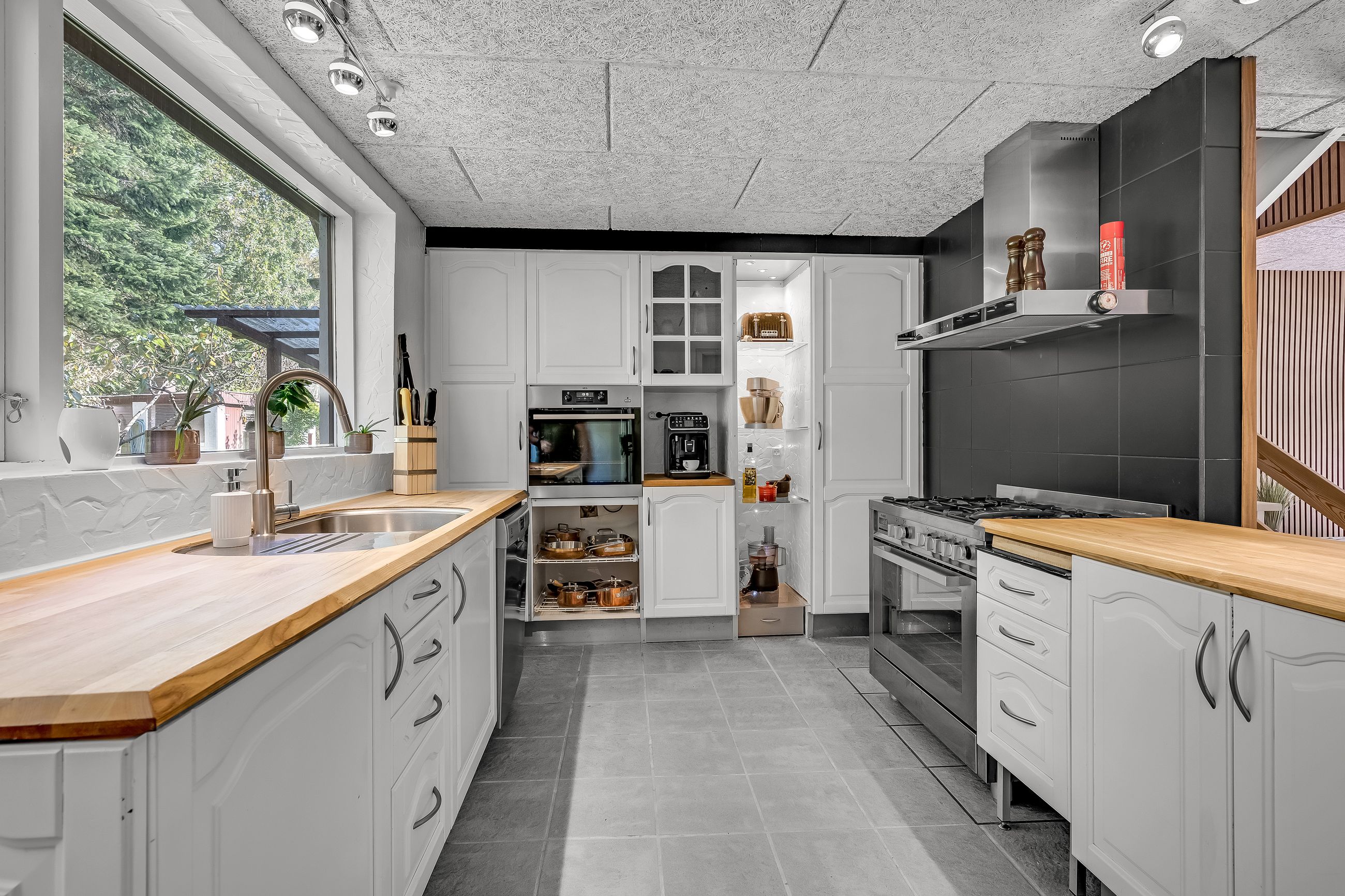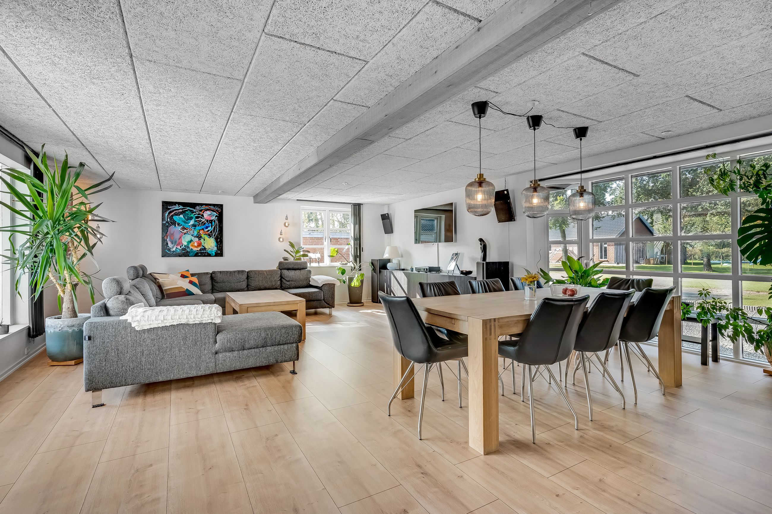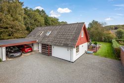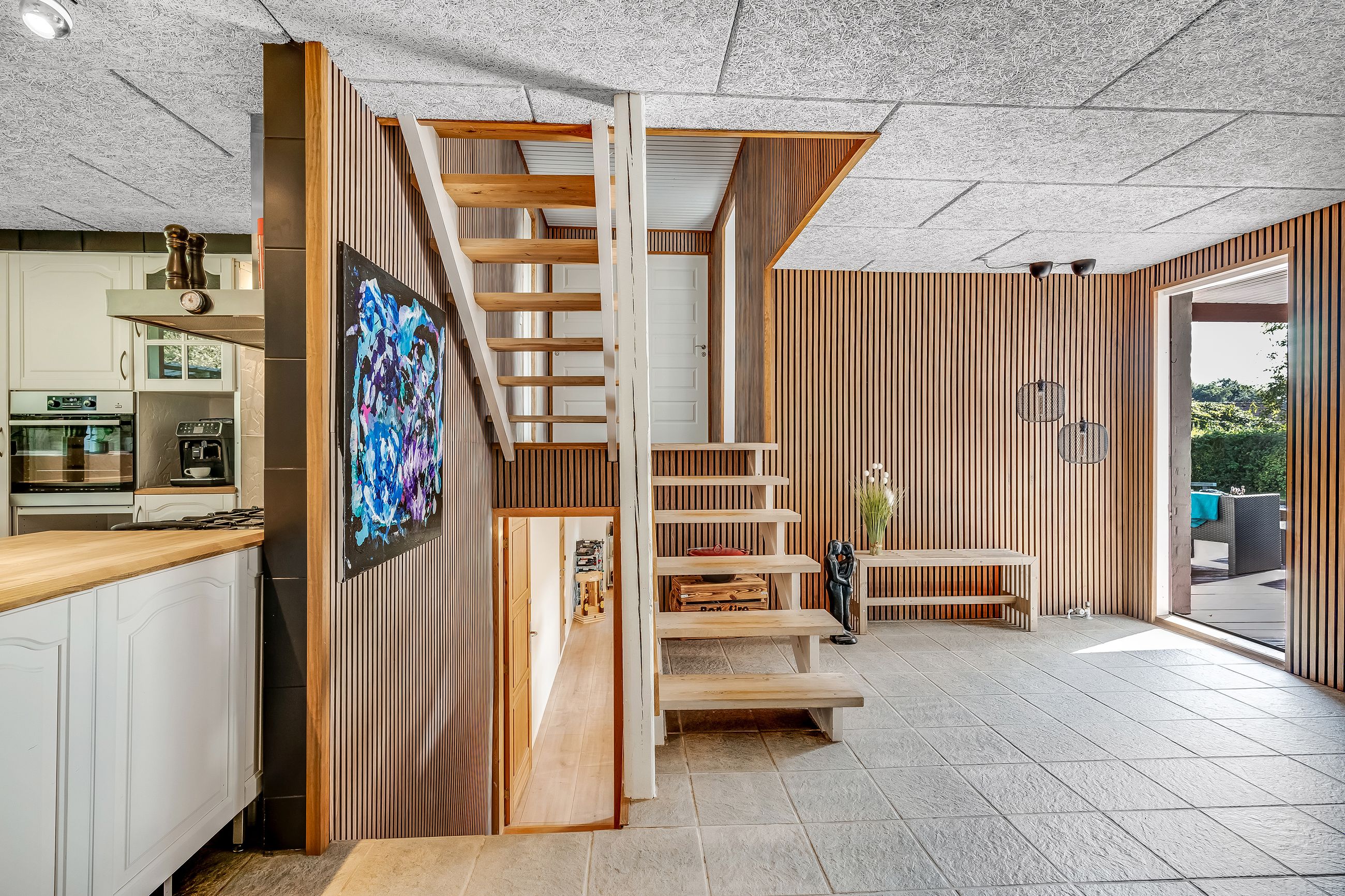 Er I på udkig efter en rummelig og familievenlig bolig i rolige omgivelser? Så er denne villa for enden af en lukket vej i Feldborg stedet for jer! Med 5 værelser, 2 badeværelser og store opholdsrum, er der masser af plads til både privatliv og hyggeligt samvær. Huset er indrettet i finurlige niveauforskelle, som giver en helt særlig rumfornemmelse, når man bevæger sig rundt. Villaen byder i stueplan på et åbent køkken/alrum, der fungerer som husets hjerte med akustikpaneler i valnød og køkkenets praktiske detaljer - som en ovn i ergonomisk højde. I den lyse stue er der en hyggelig karnap og store vinduer, der giver et dejligt lysindfald. Derudover er der 2 toiletter, bryggers og 2 værelser - hvoraf det ene har et tilstødende walk-in-closet. På 1. salen findes yderligere 3 værelser med charmerende skråvægge samt et badeværelse med Aubo-elementer. I kælderen er der 2 disponible rum samt et badeværelse med spabad. Med husets mange værelser og disponible rum er der mange muligheder, hvad end der ønskes hobbyrum, kontor eller noget helt tredje? Huset er i 2021 både blevet hulmursisoleret og fået efterisoleret loft. Ude venter der en pragtfuld grund med en nyere anlagt terrasse med granitskærver fra 2021 og en lækker træterrasse fra 2020. Til huset hører desuden en carport, et skur og et havehus med udendørs pejs. Beliggenheden er ideel med indkøb, skole og sportsfaciliteter inden for få kilometer, og Holstebro, Herning og Ikast kan nås i bil indenfor omtrent en halv time.