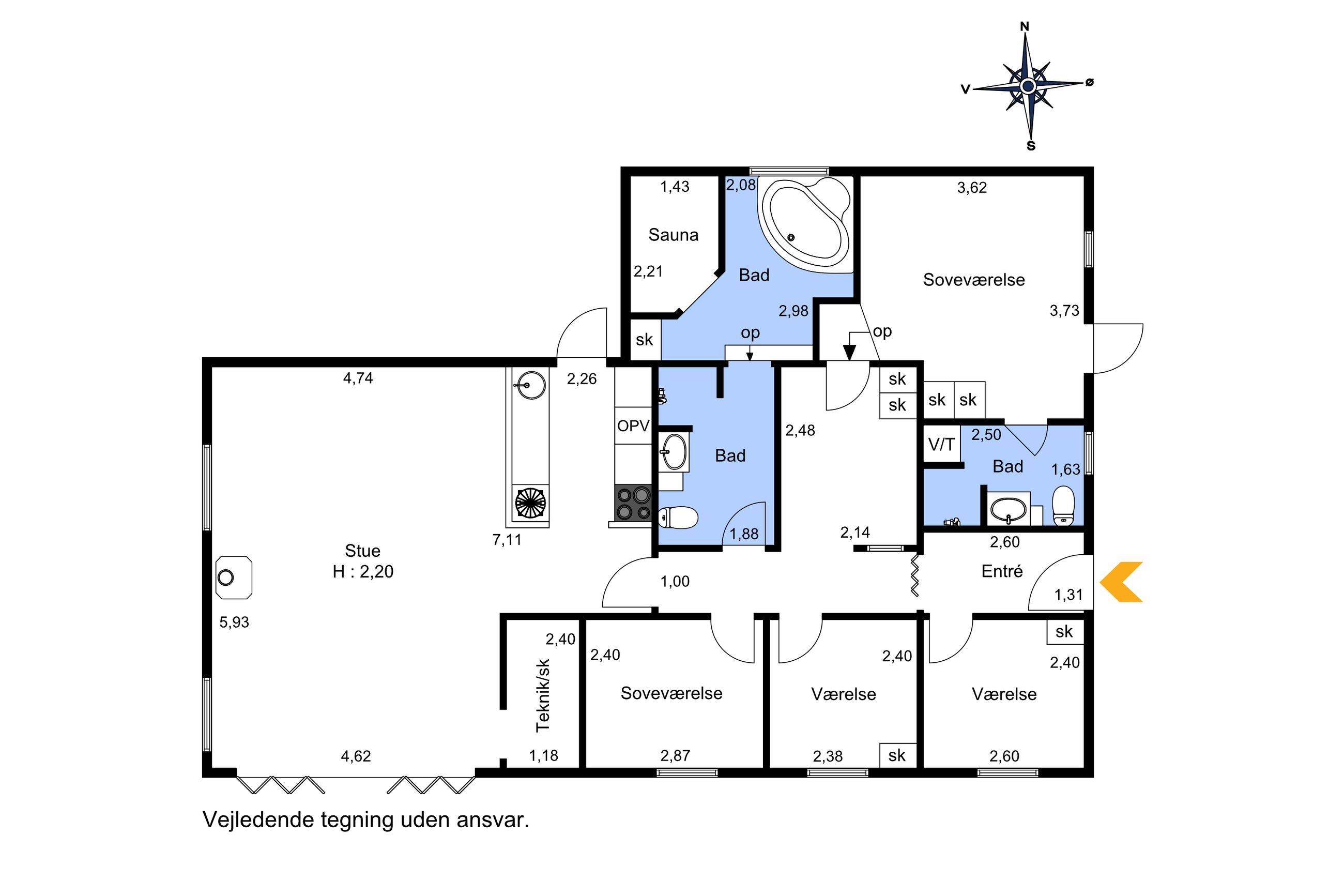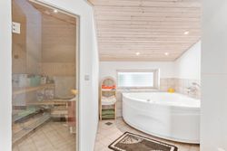 Sommerhuset er særdeles velindrettet og har masser af plads til den store familie med hele fire værelser og to badeværelser. Det ene badeværelse er indrettet med både spa og sauna, hvilket gør det til den perfekte afslapningsoase efter en dag ved stranden.