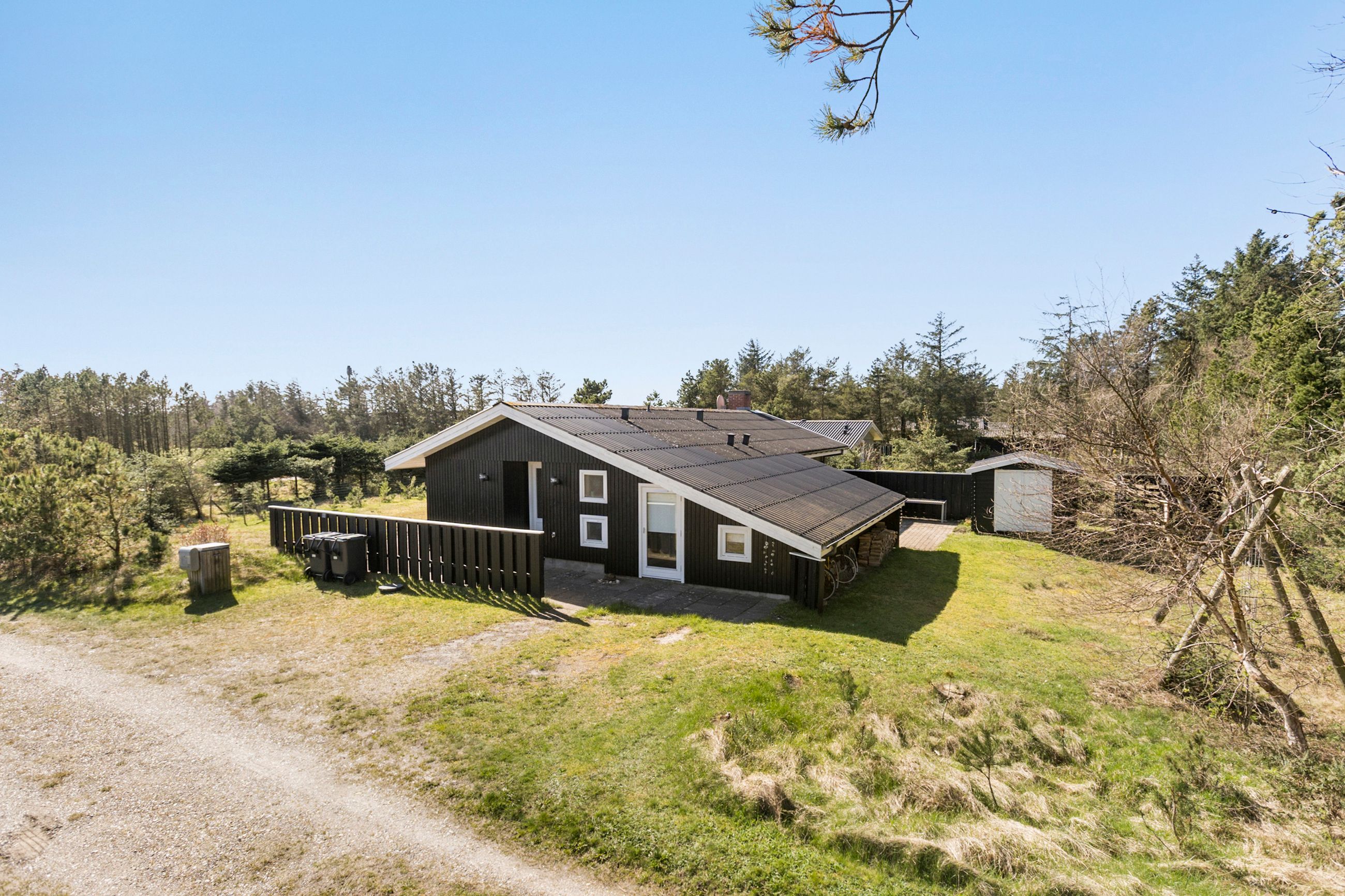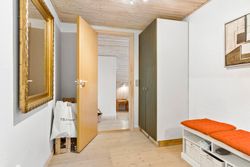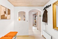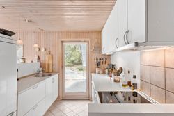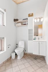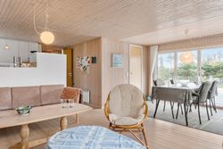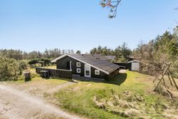Dette imponerende sommerhus på Ingeborgvej 27 i Grønhøj byder på en sjælden kombination af rolig beliggenhed, rummelighed og kvalitetsbevidste detaljer. Med en kort gåtur til de brede, hvide sandstrande, der kendetegner området, er huset ideelt til dem, der søger fred og naturoplevelser.