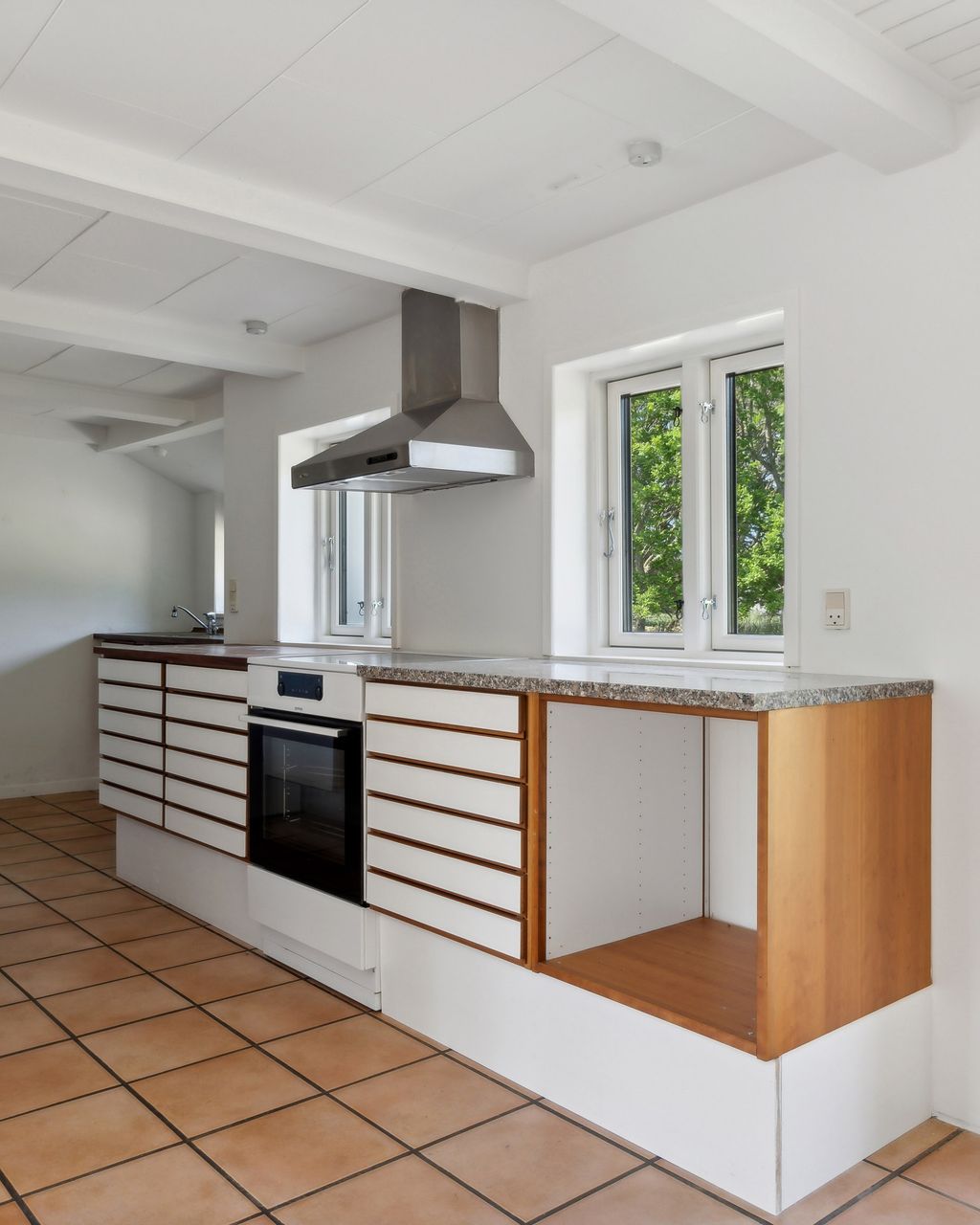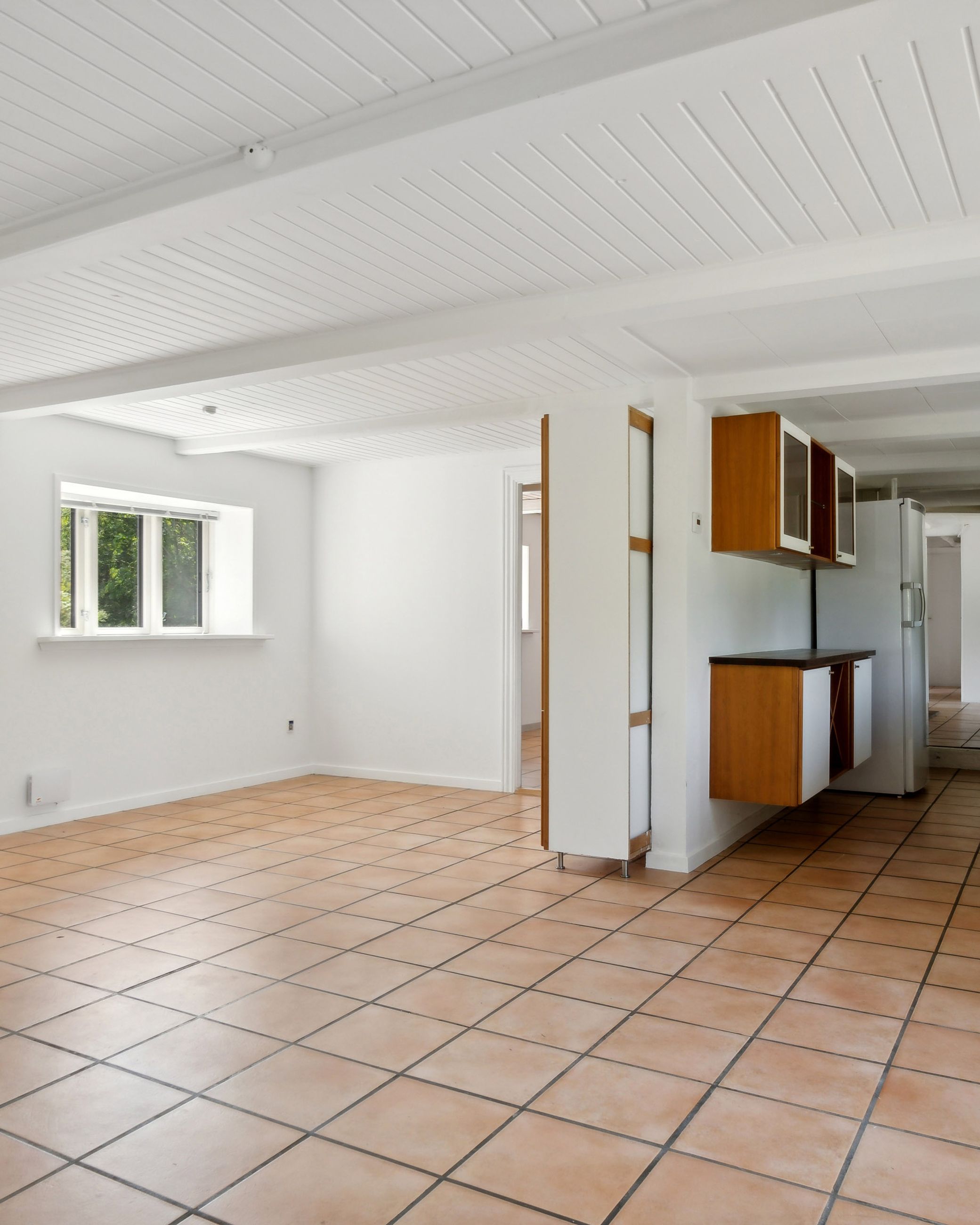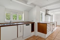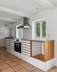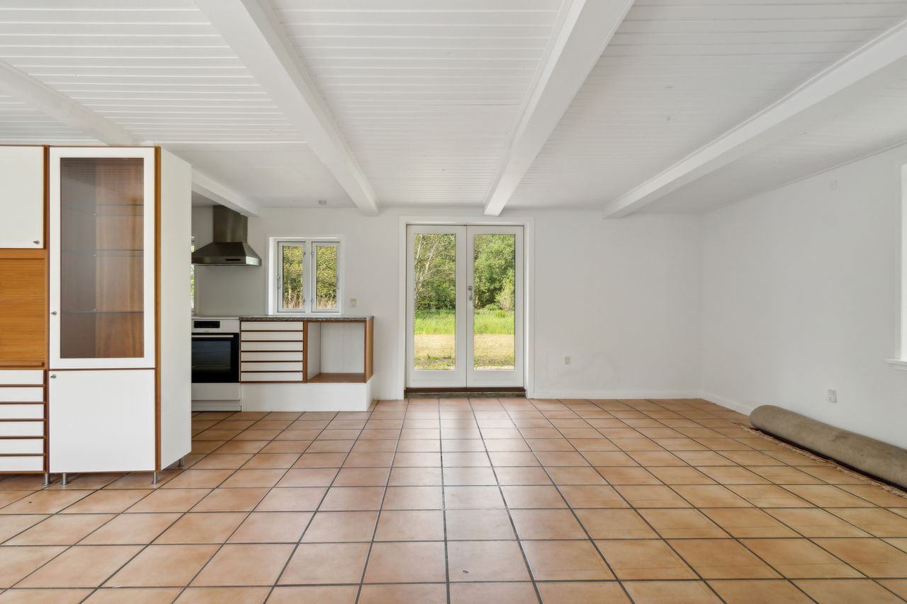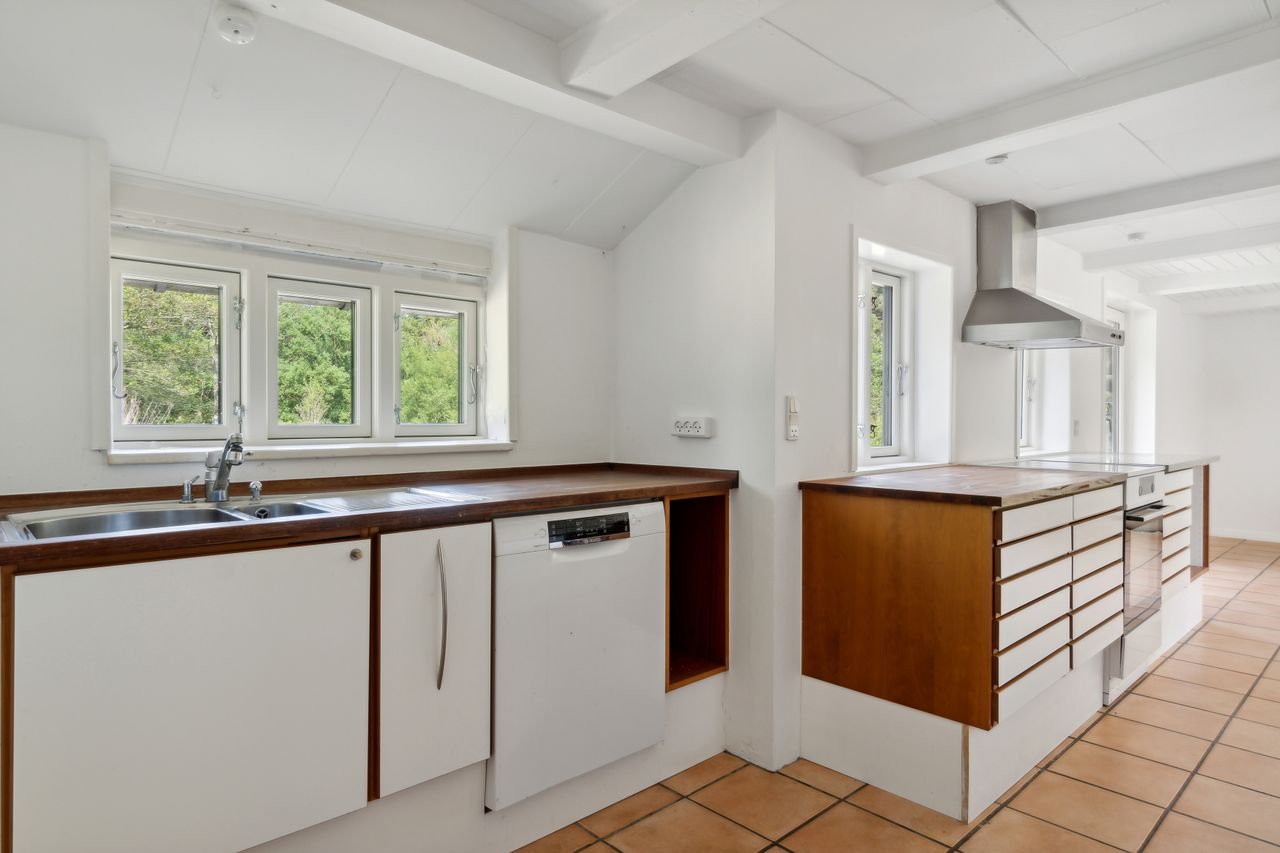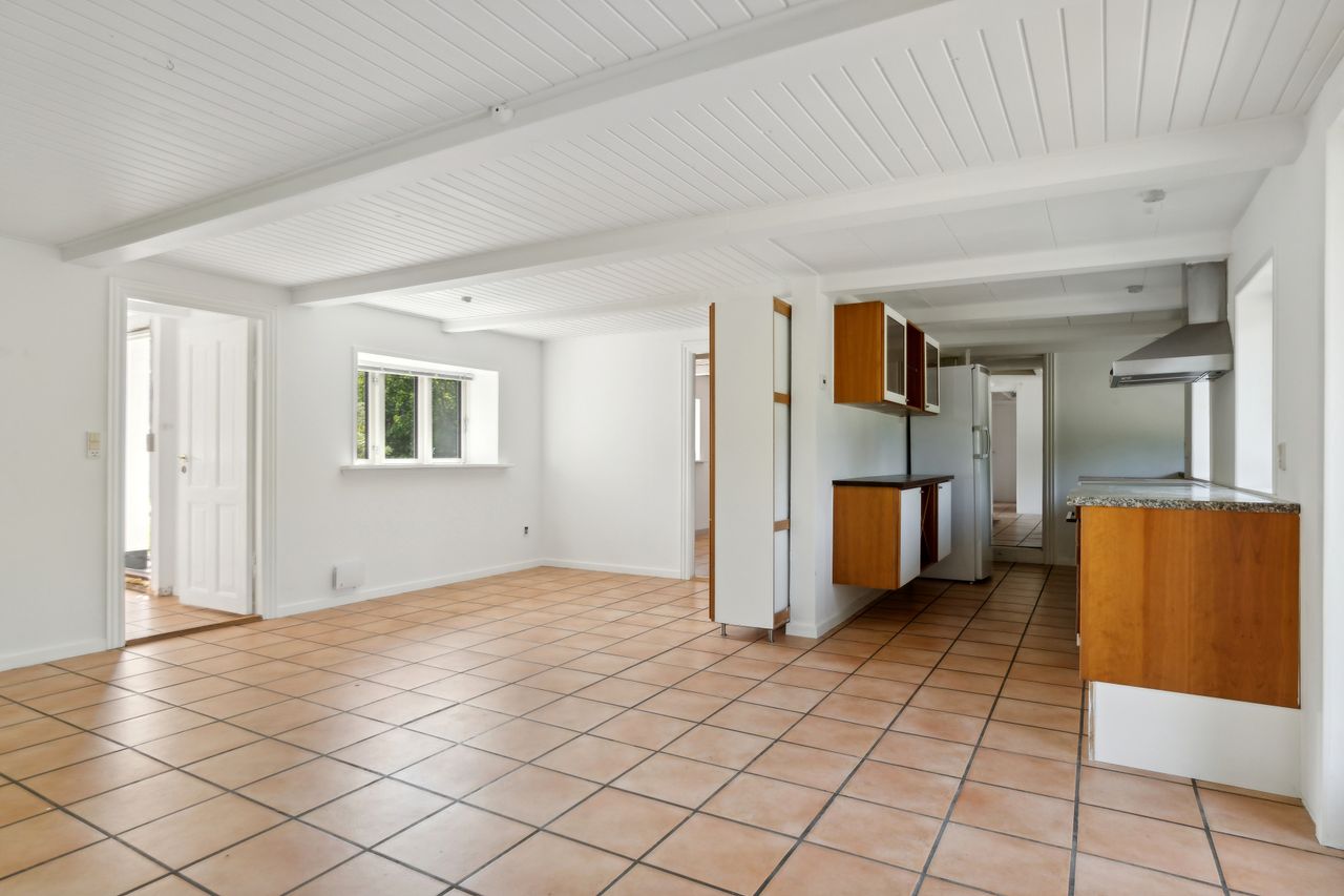 Boligen er velindrettet med et dejligt, lyst køkken-alrum med multiform køkken fra 2008, der udgør hjemmets naturlige samlingspunkt. Her er der god plads til både madlavning og hyggestunder, og direkte udgang til den skønne have gør det let at forlænge opholdet udendørs i de varme måneder.