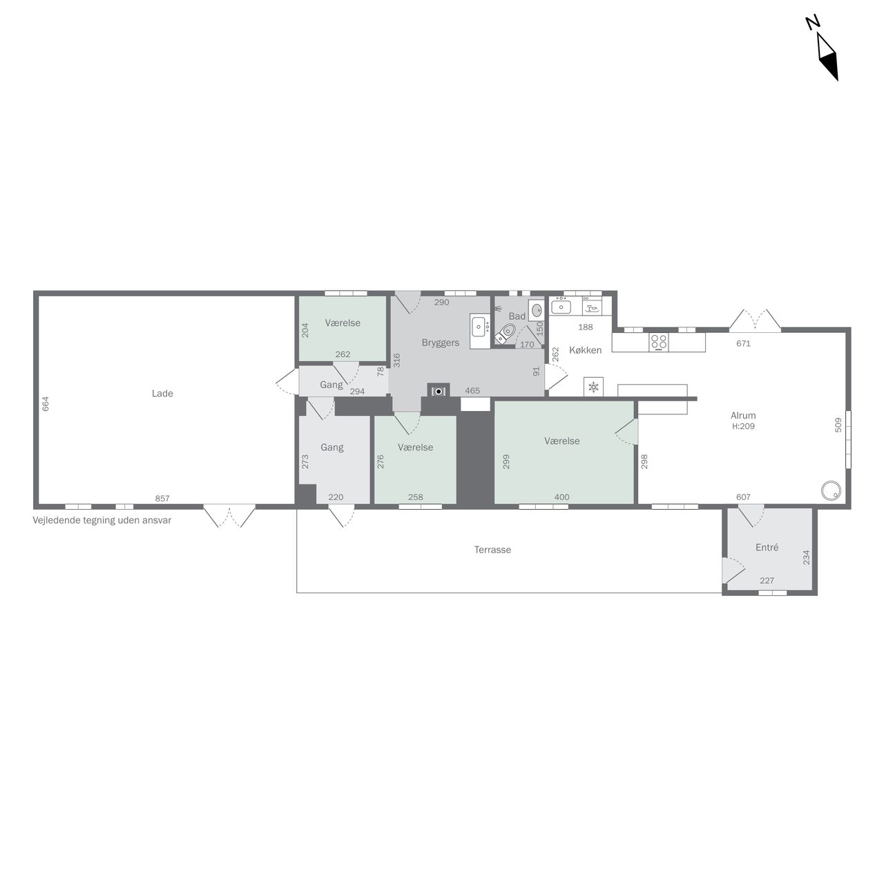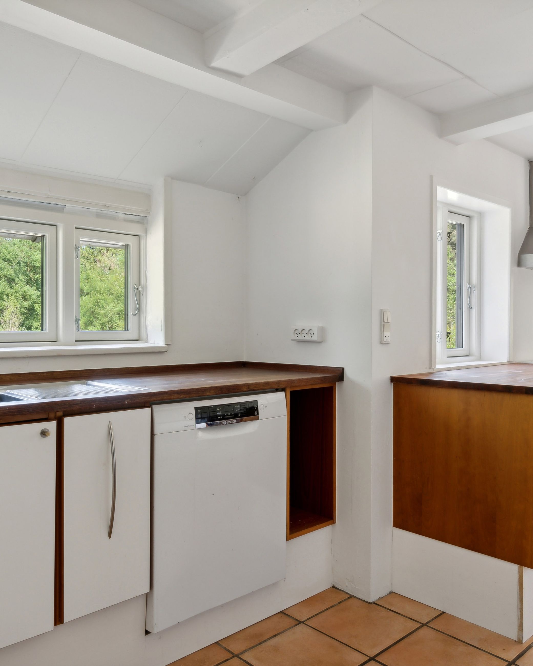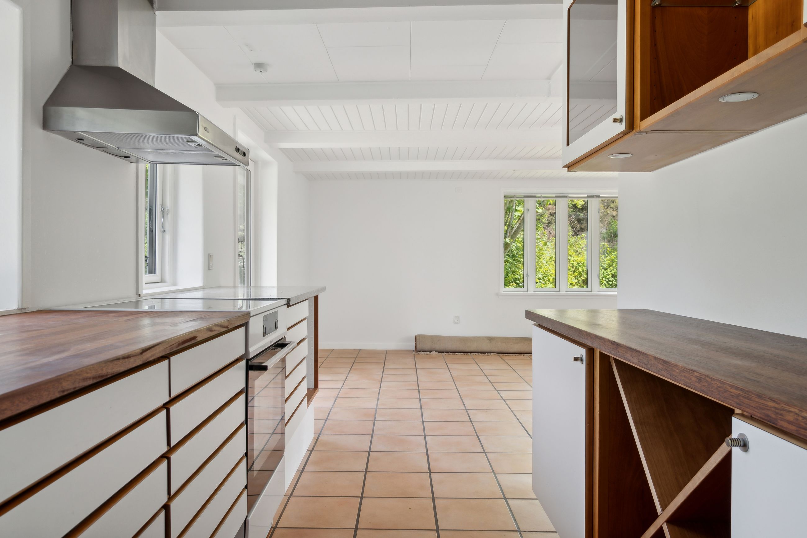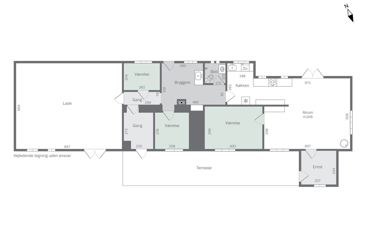 Boligen er velindrettet med et dejligt, lyst køkken-alrum med multiform køkken fra 2008, der udgør hjemmets naturlige samlingspunkt. Her er der god plads til både madlavning og hyggestunder, og direkte udgang til den skønne have gør det let at forlænge opholdet udendørs i de varme måneder.
