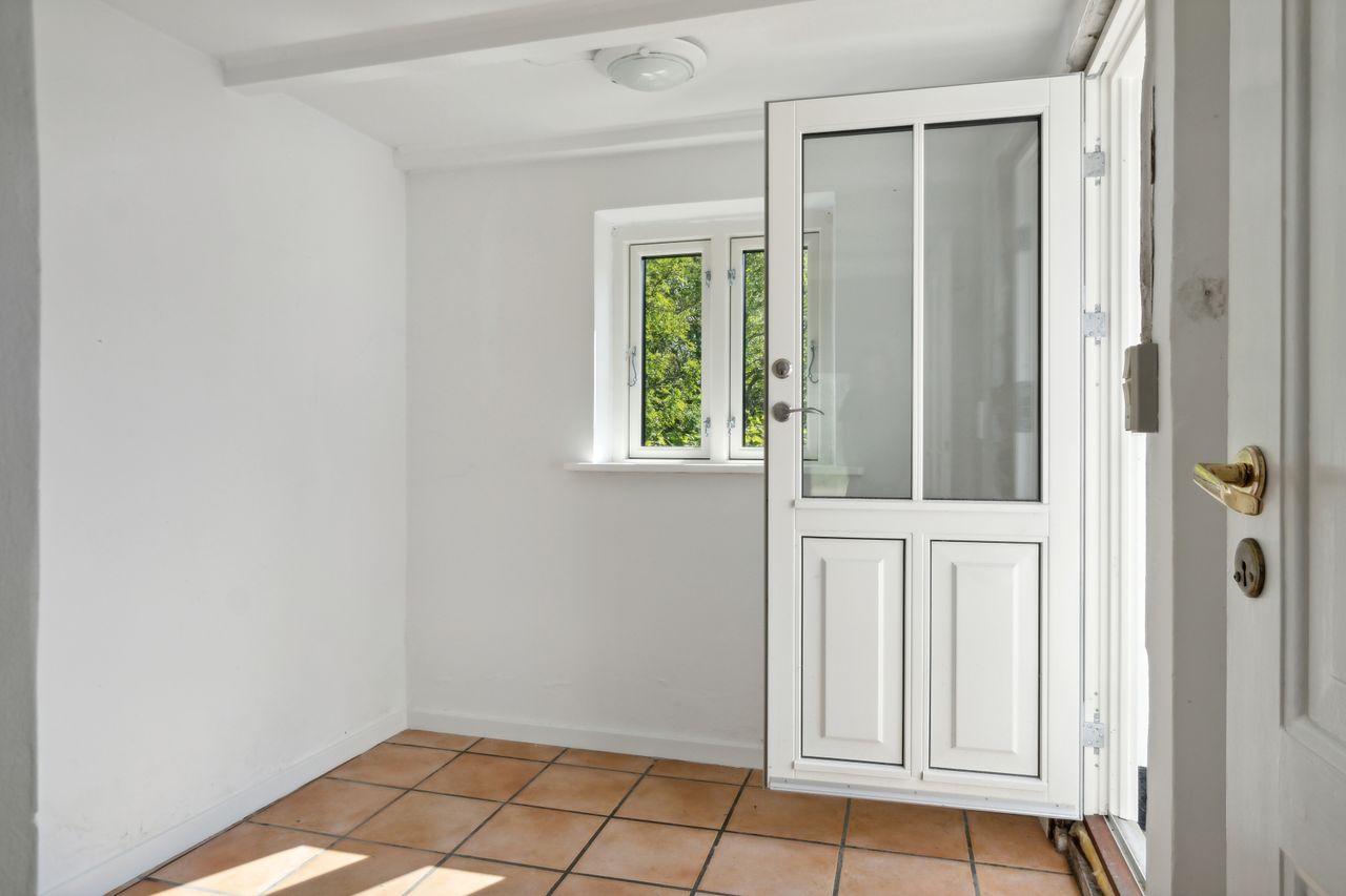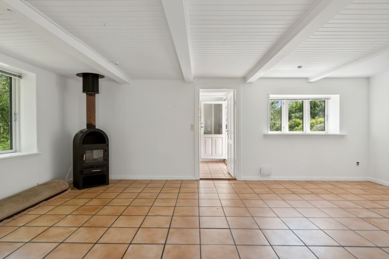 For enden af en stille vej, helt ugenert og omkranset af åbne vidder, finder du denne skønne villa/landejendom, som byder på både fredelige omgivelser og kort afstand til vandet. Her får du muligheden for at bo midt i naturen, uden at gå på kompromis med hverken komfort eller funktionalitet.