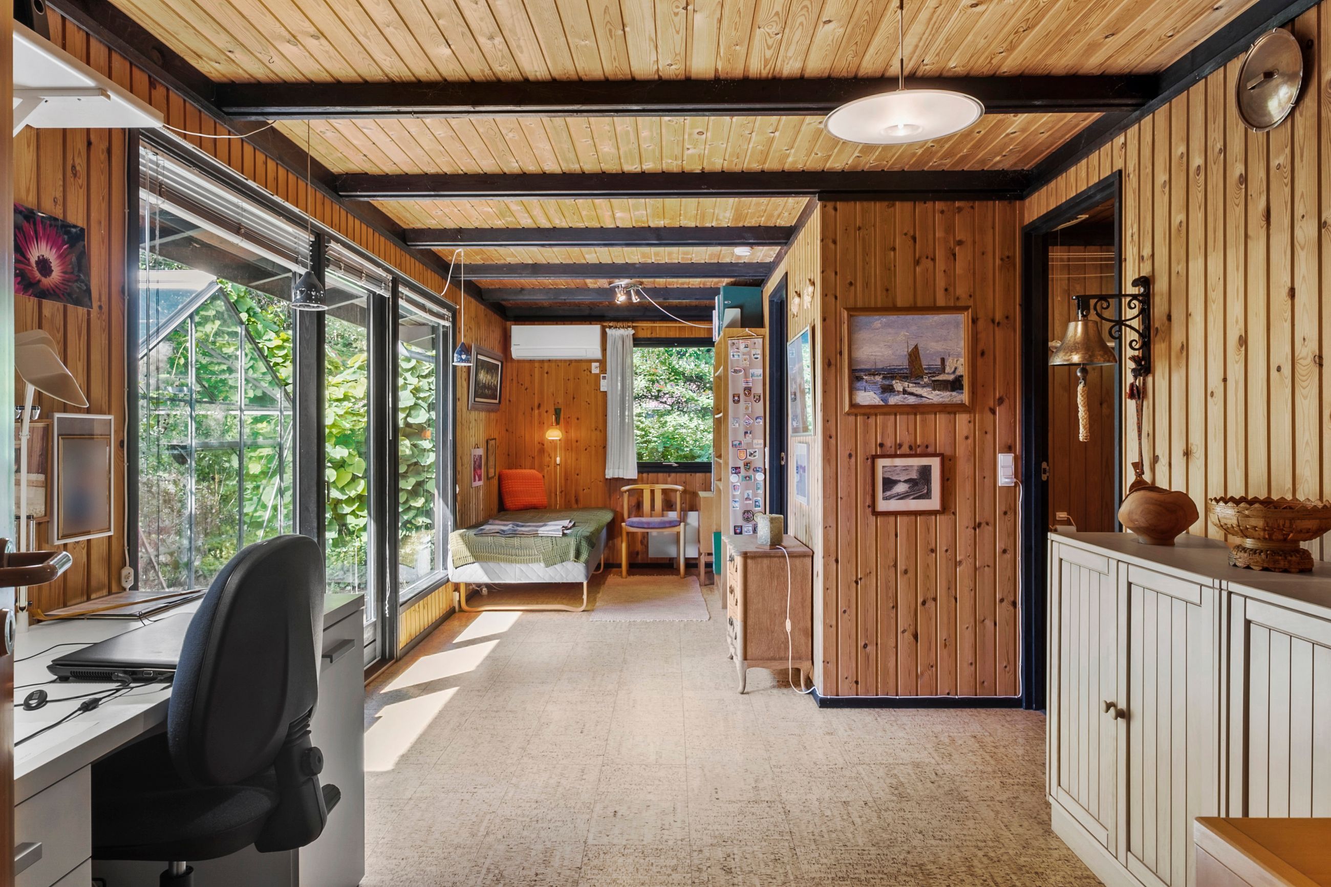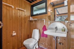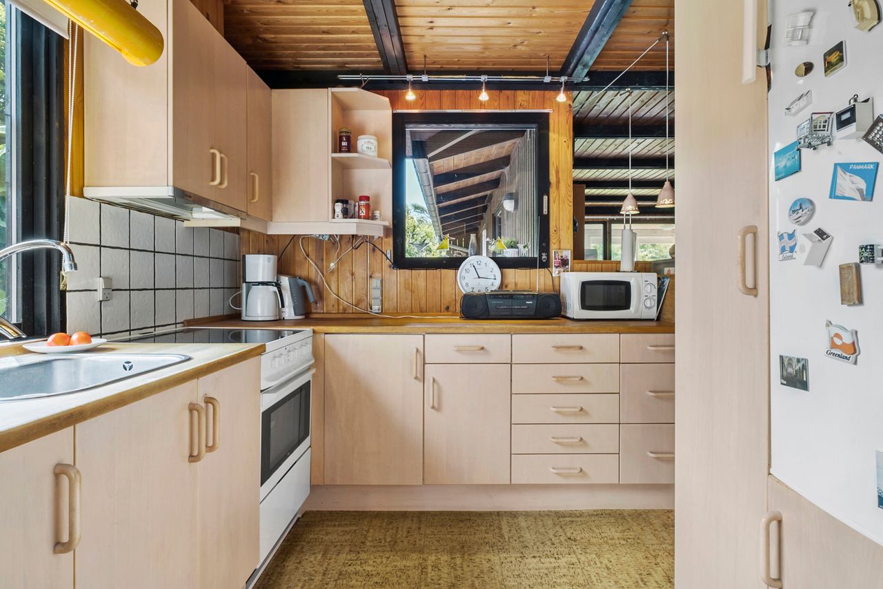 Sommerhuset byder på hele 89 m2 veldisponeret bolig, hvor pladsen er udnyttet optimalt. Du bydes velkommen i en rummelig entré med vaskefaciliteter og god plads til overtøj og sko – praktisk og funktionelt fra første skridt.