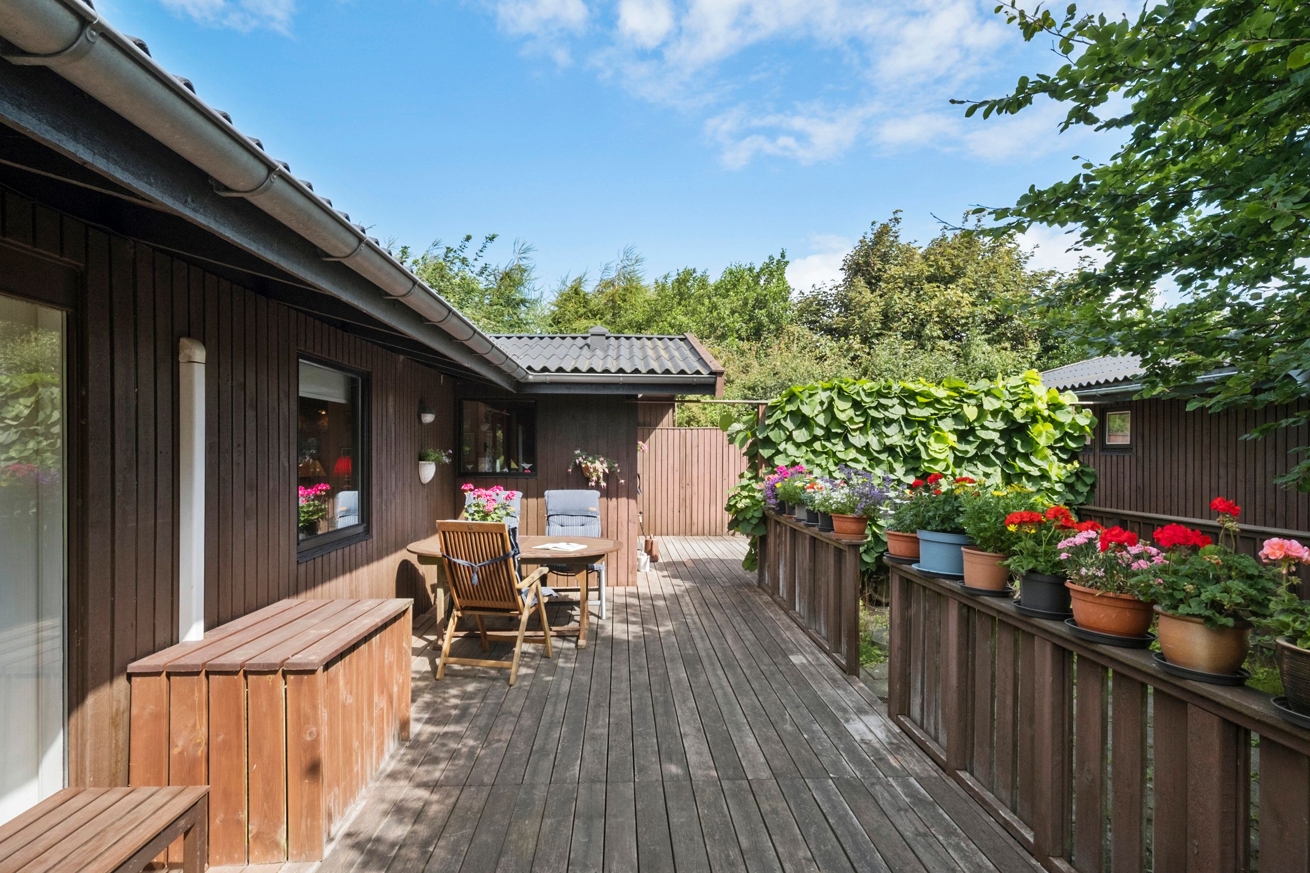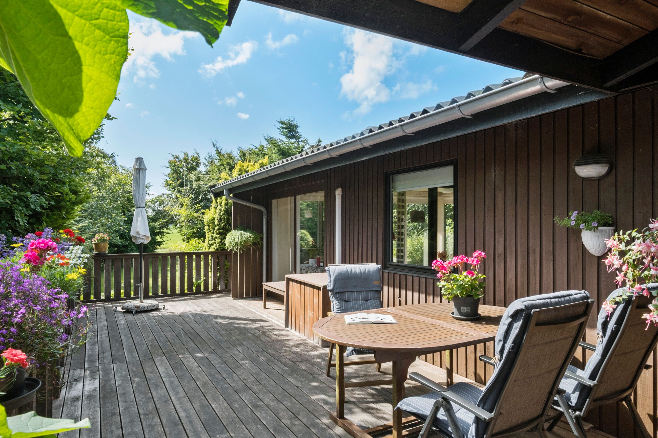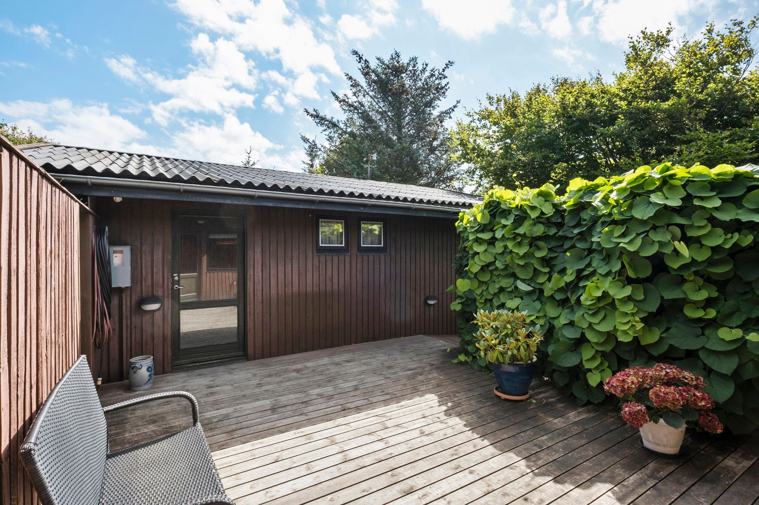 Udendørs får du glæde af flere skønne terrassearealer, der skaber læ og små hyggelige kroge – ideelle til solrige dage, grillmiddage og aftenhygge under åben himmel.