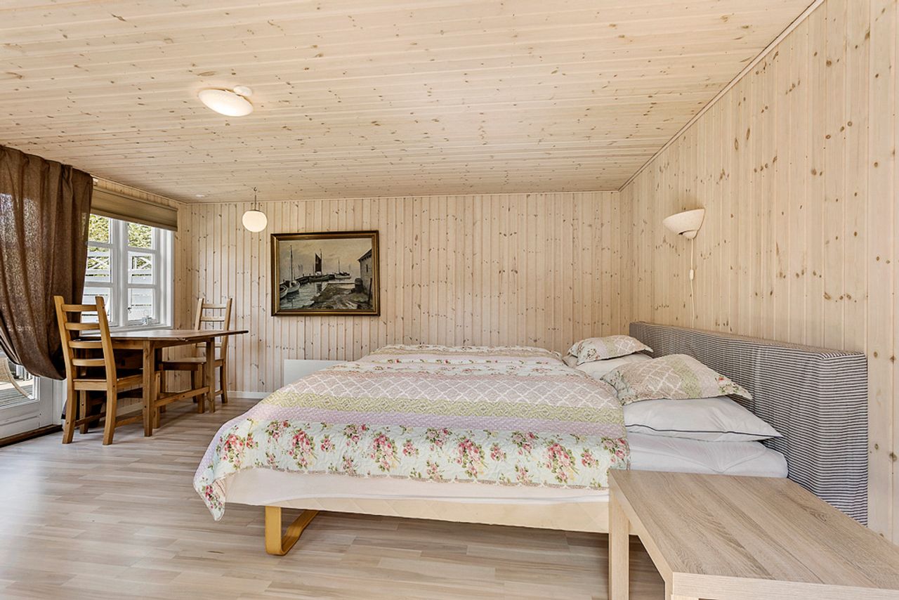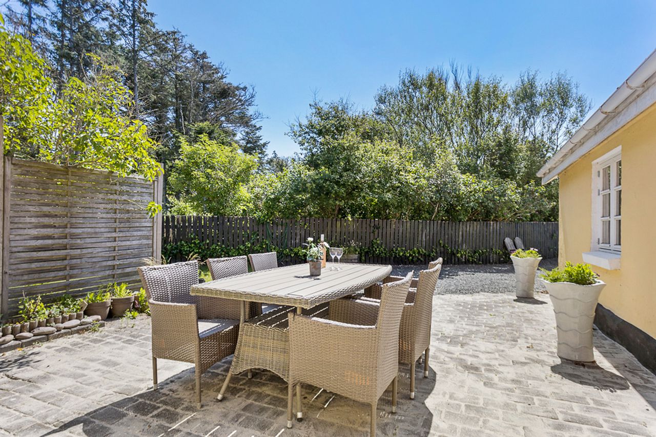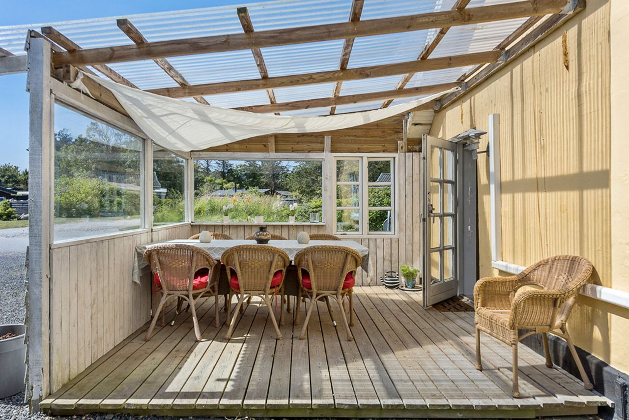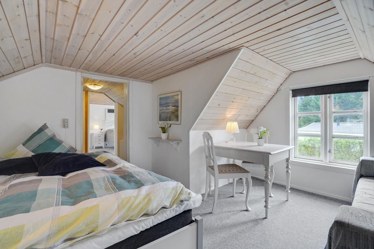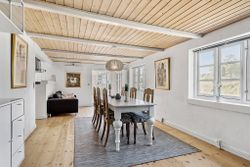 Med plads til den helt store familie og mulighed for overnattende gæster i det nyrenoverede anneks, er der rigeligt med plads til alle. Haven er helt ugenert, og den skønne overdækkede terrasse/udestue inviterer til hyggelige aftener året rundt. Hovedhuset byder på 4 rummelige værelser og 2 badeværelser samt et stort køkken-alrum med direkte udgang til terrassen og haven. En praktisk baggang giver plads til at smide overtøjet efter en lang dag på stranden.