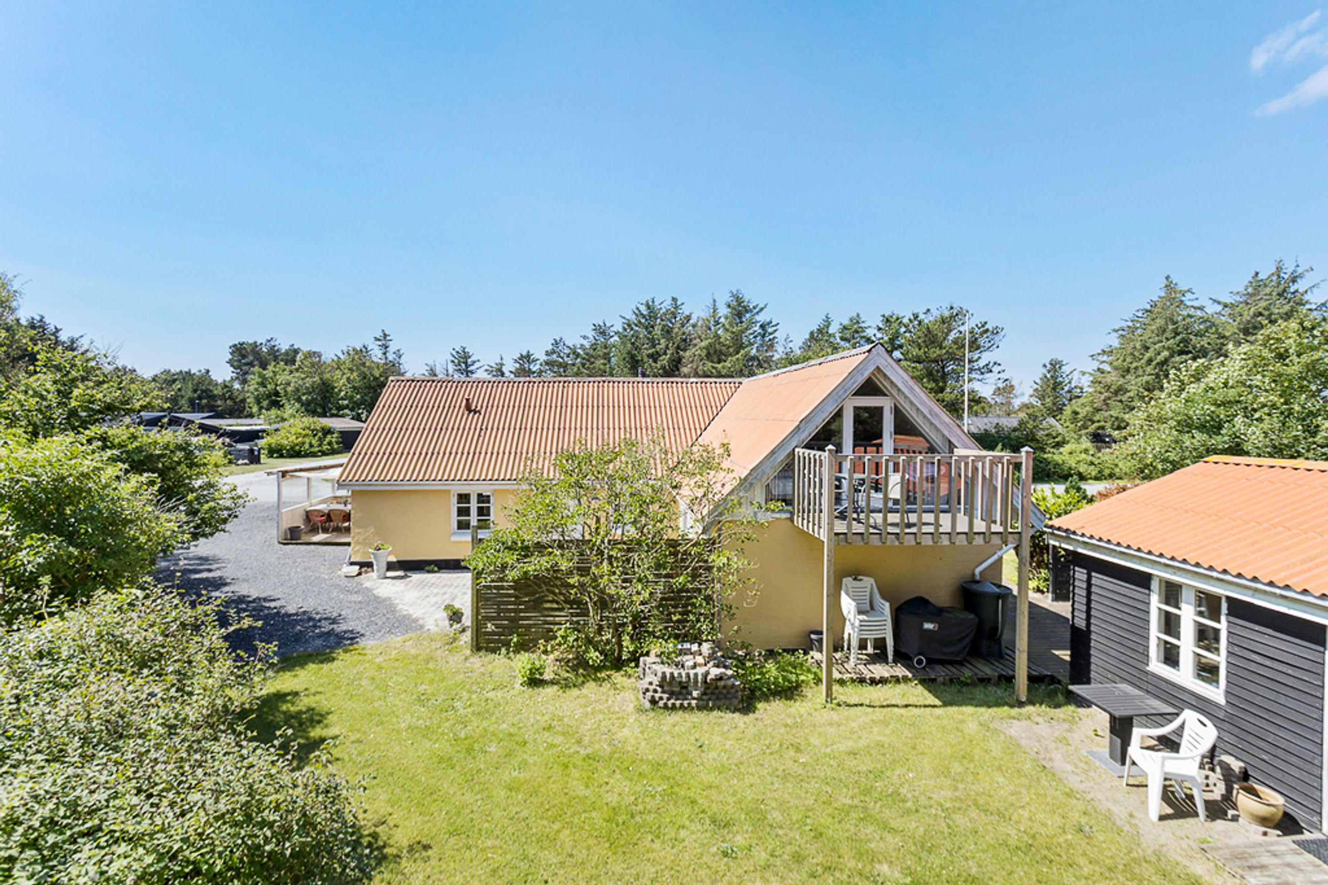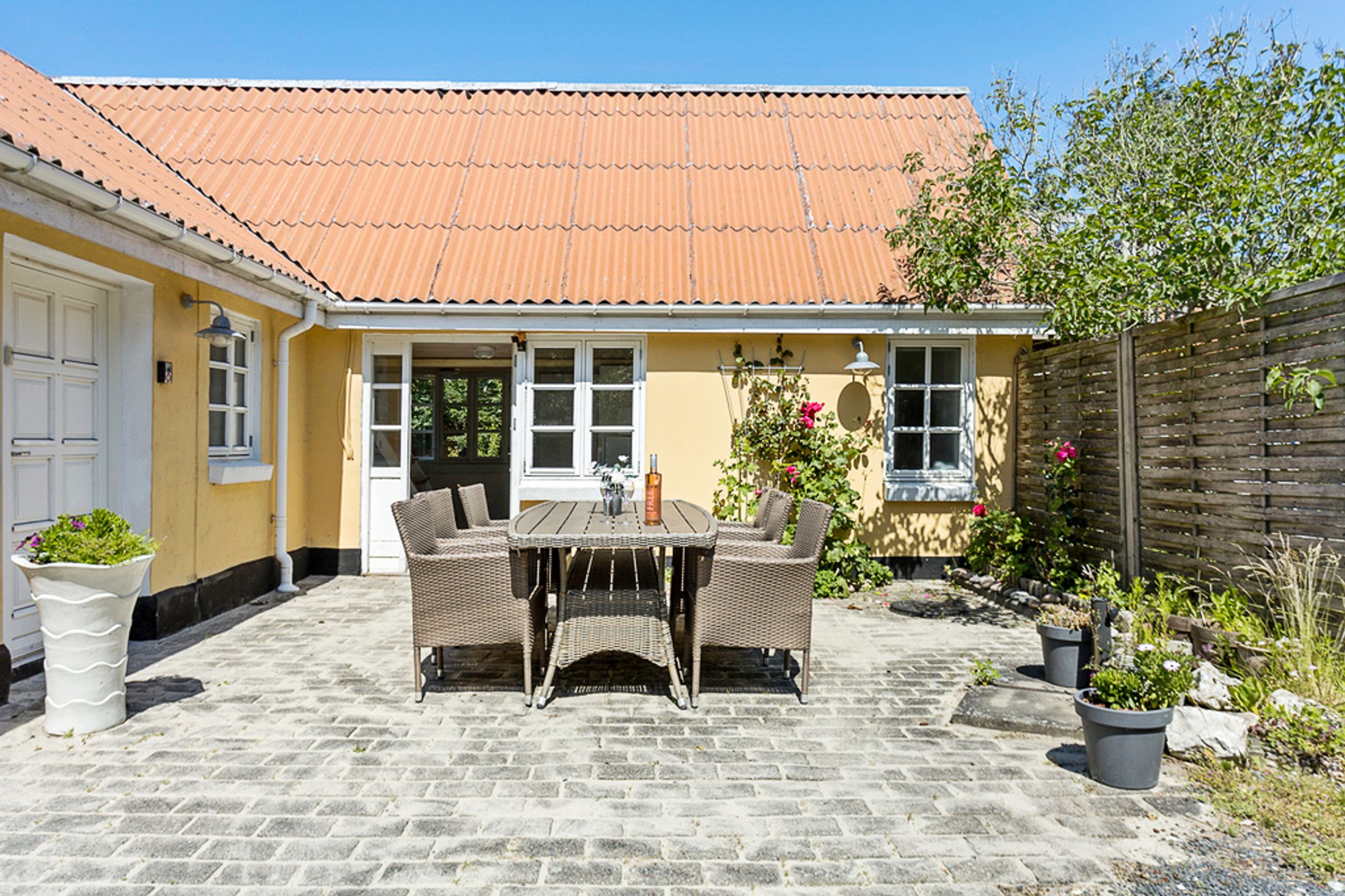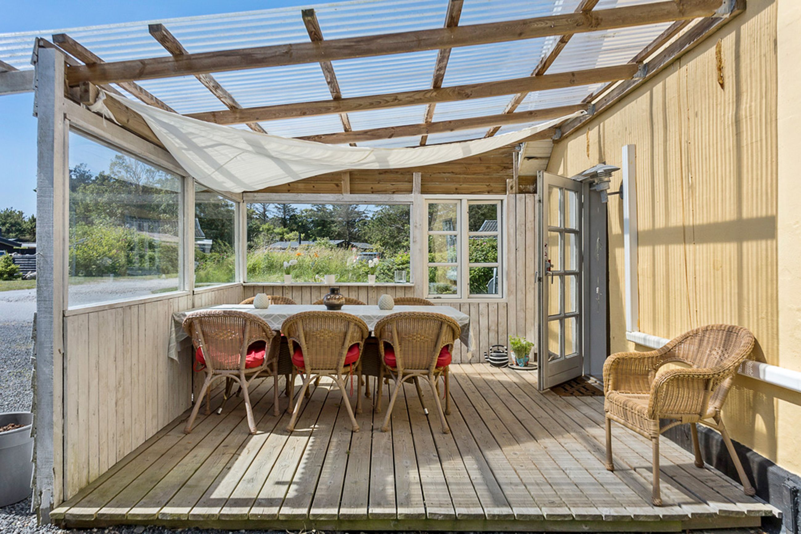 Med plads til den helt store familie og mulighed for overnattende gæster i det nyrenoverede anneks, er der rigeligt med plads til alle. Haven er helt ugenert, og den skønne overdækkede terrasse/udestue inviterer til hyggelige aftener året rundt. Hovedhuset byder på 4 rummelige værelser og 2 badeværelser samt et stort køkken-alrum med direkte udgang til terrassen og haven. En praktisk baggang giver plads til at smide overtøjet efter en lang dag på stranden.