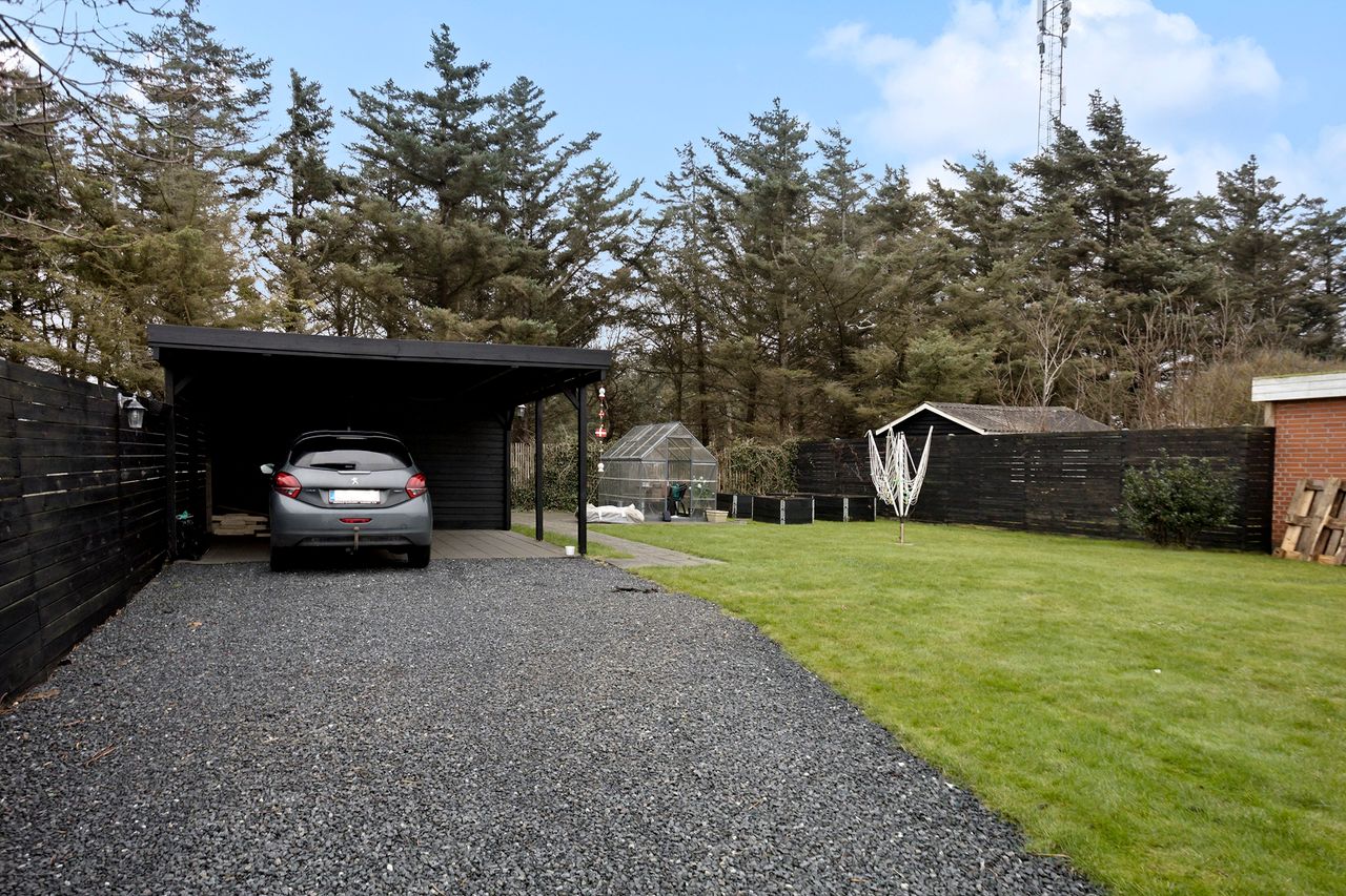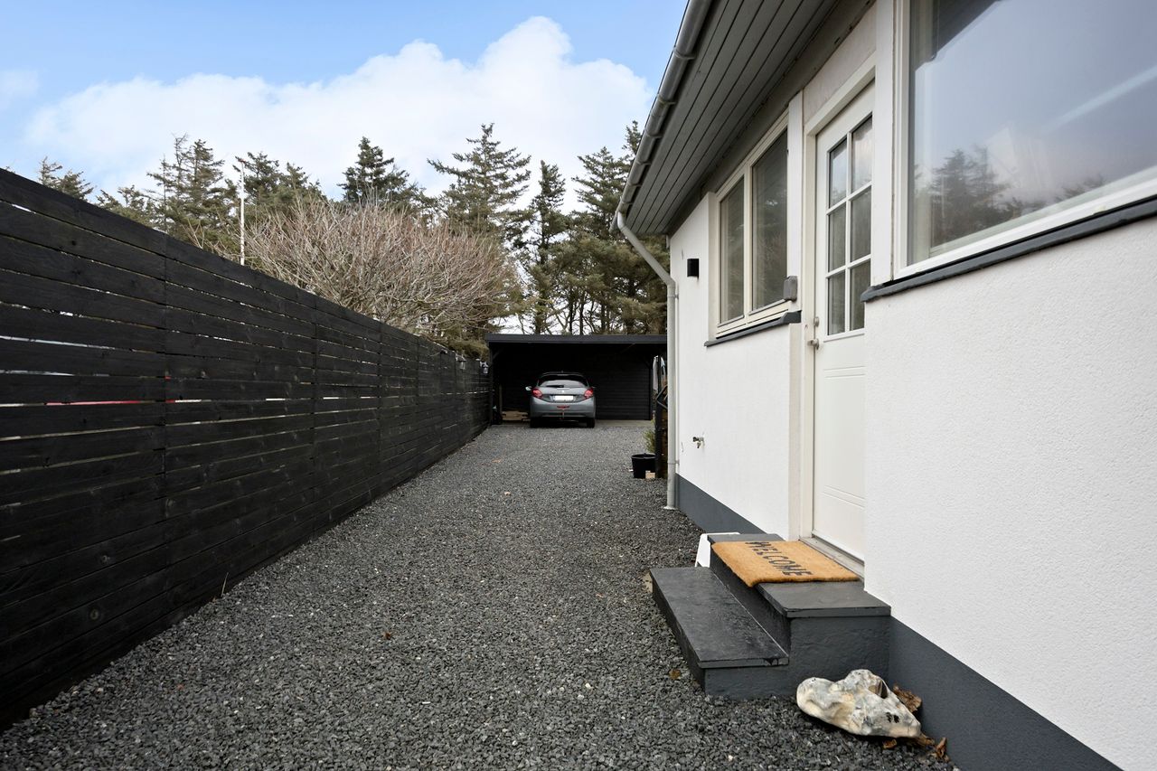 Udenfor finder du en hyggelig og ugeneret terrasse, hvor du kan nyde sommerdagene, samt en carport til bilen. Med kort afstand til skole, indkøb og byens øvrige faciliteter er alt lige inden for rækkevidde.