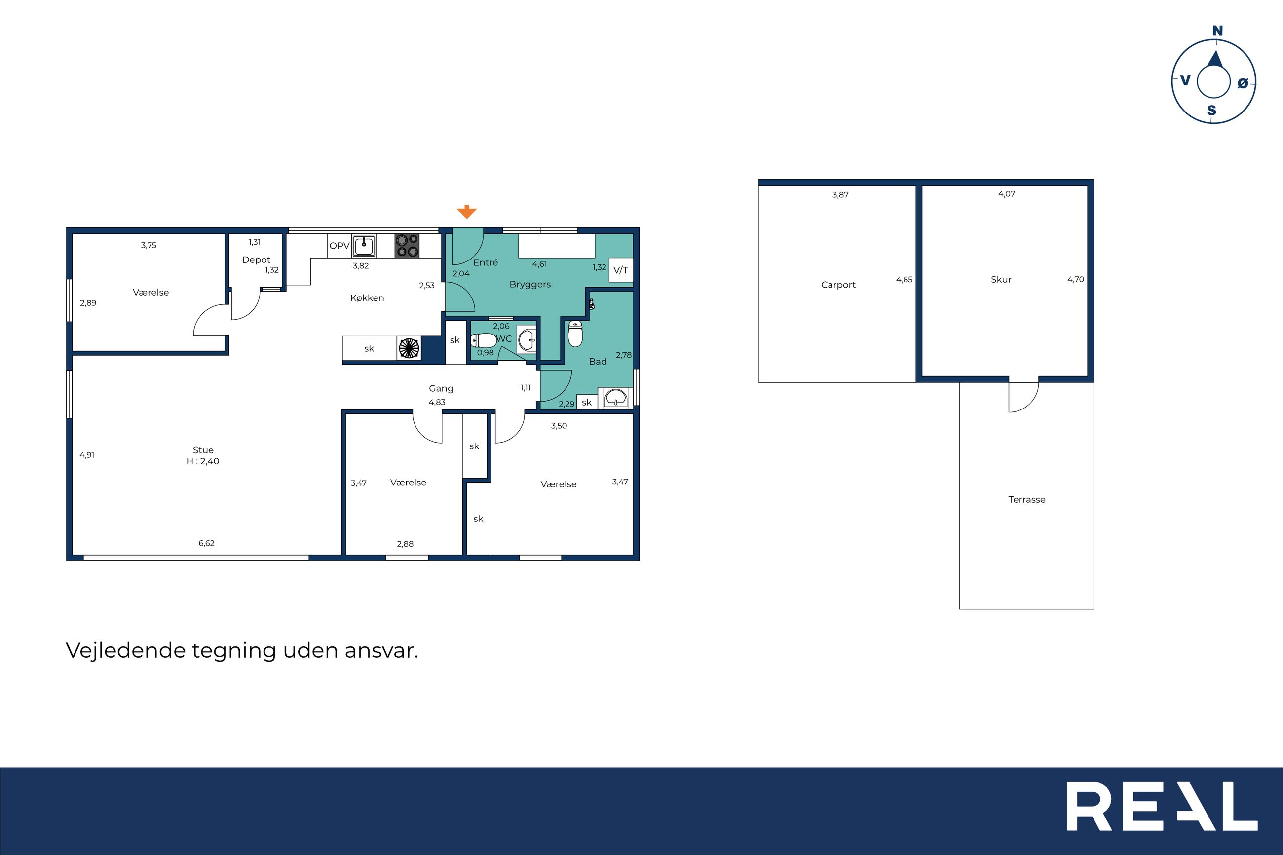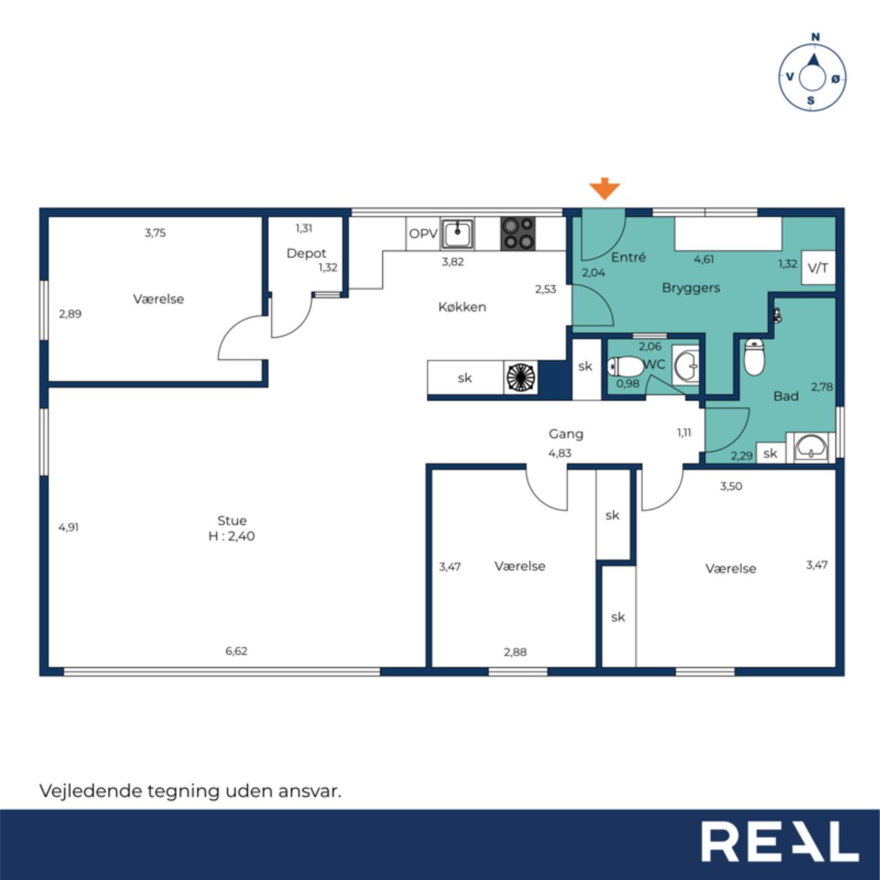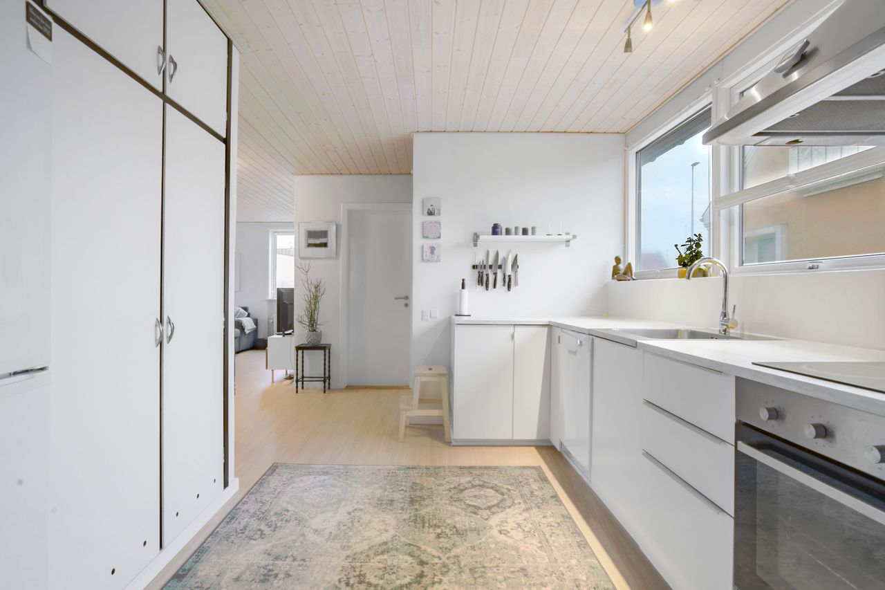 Indretningen byder på tre rummelige og skønne værelser, et lyst badeværelse samt et ekstra gæstetoilet. Det store køkken-alrum er husets naturlige samlingspunkt – her er der masser af plads til både madlavning og samvær, og som en ekstra bonus er der et praktisk viktualierum. Derudover rummer boligen et funktionelt bryggers, som gør hverdagen nem og bekvem.