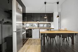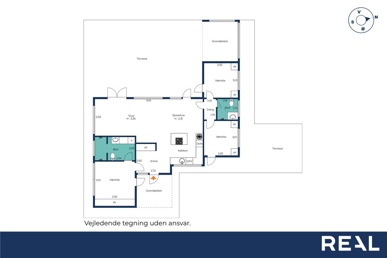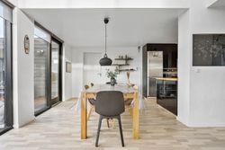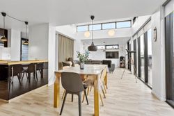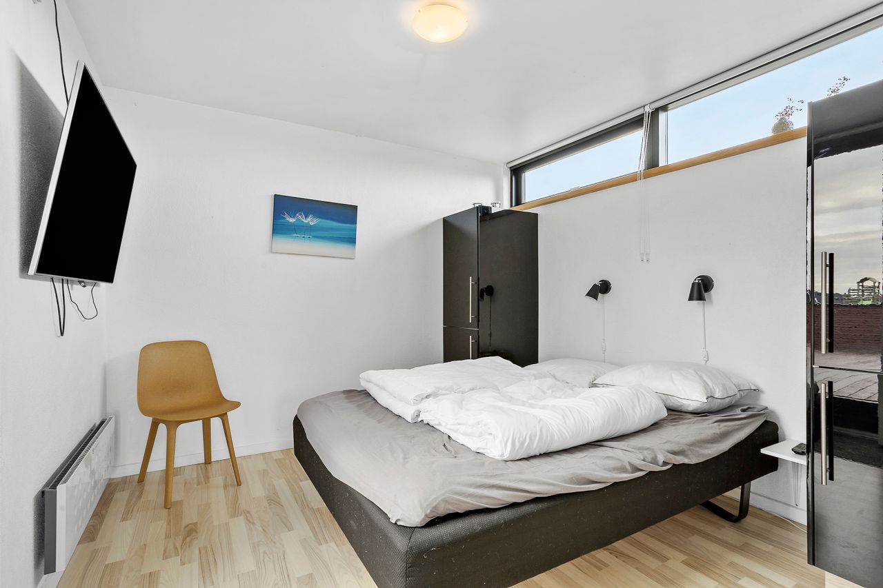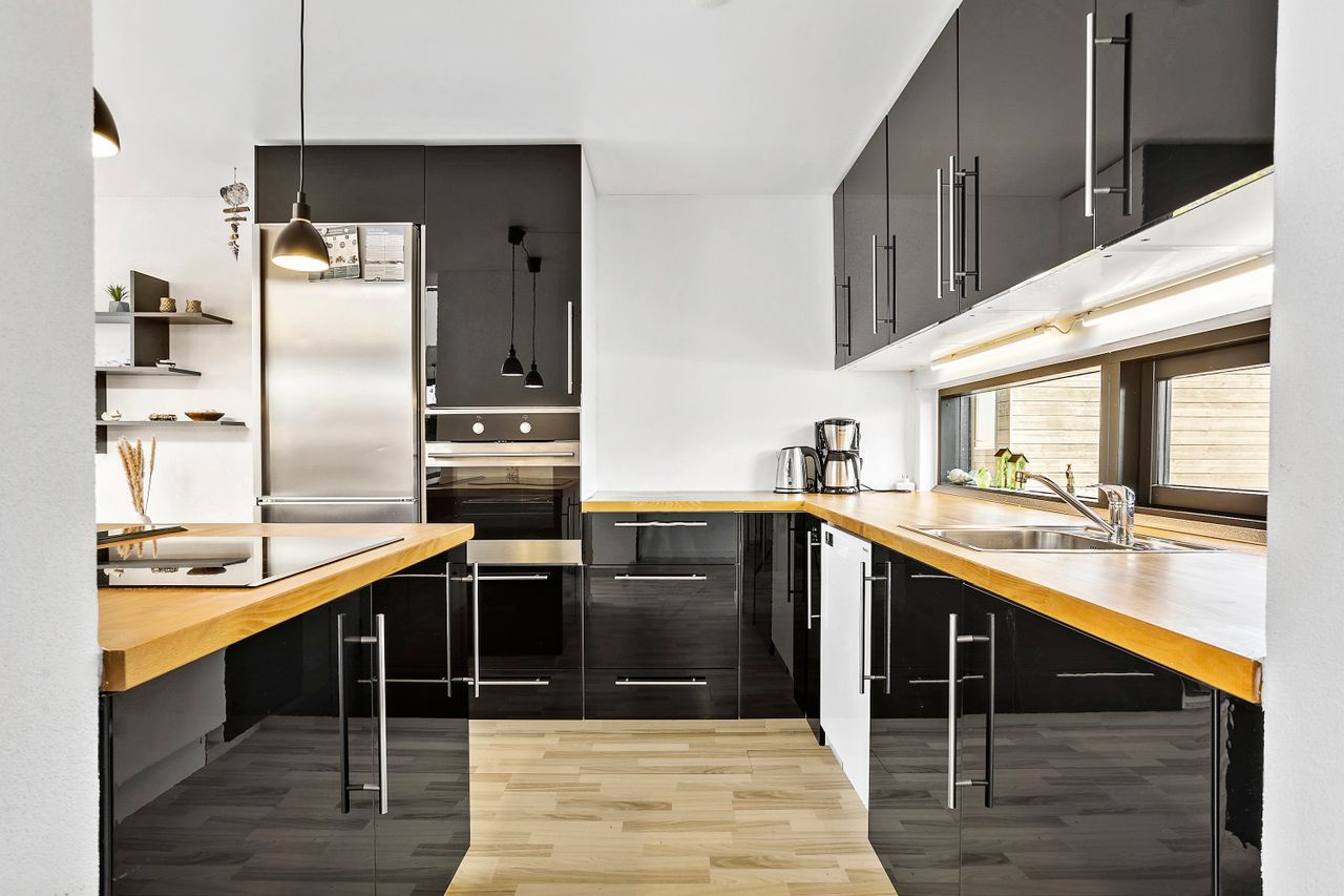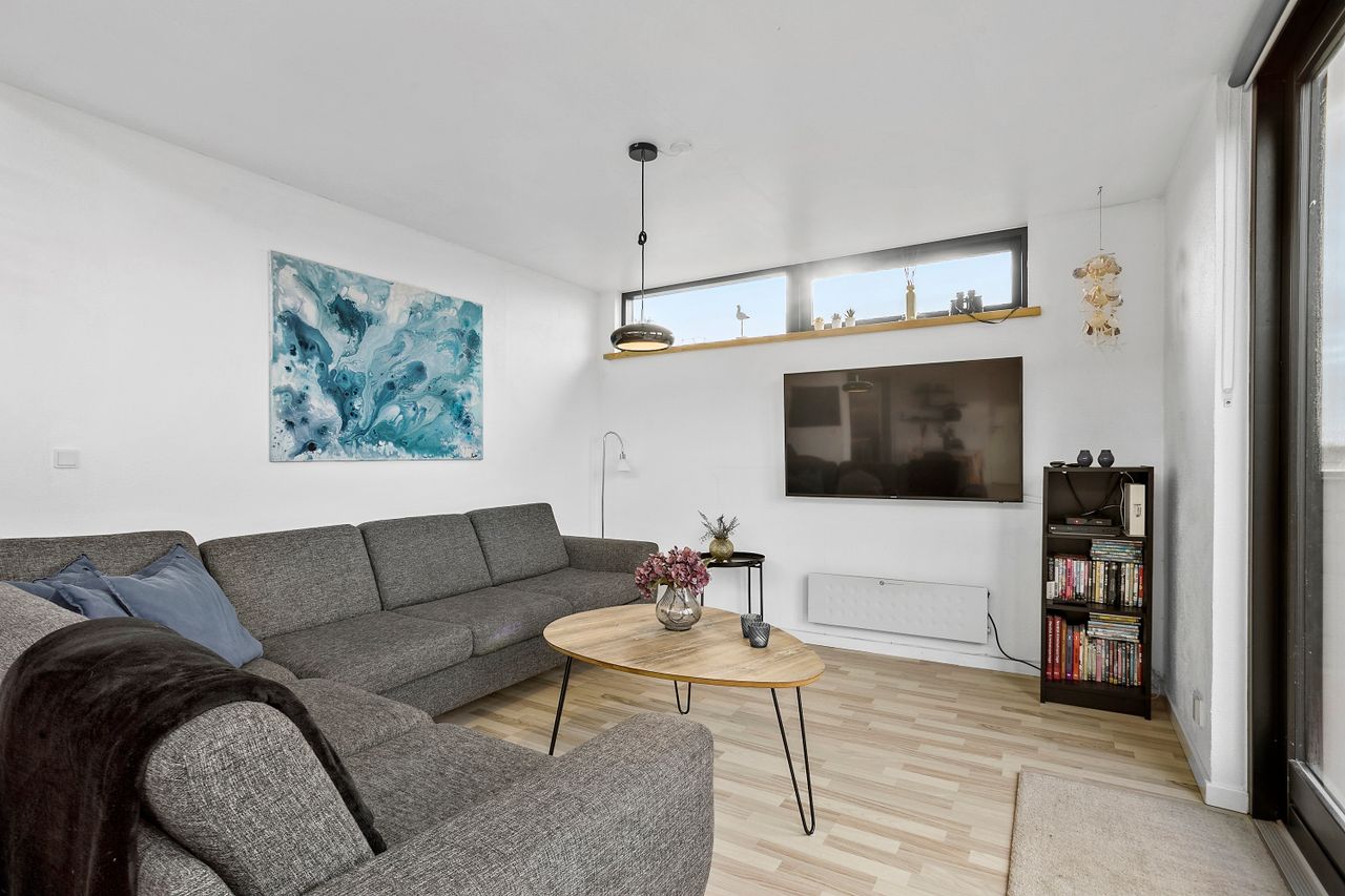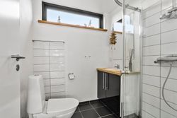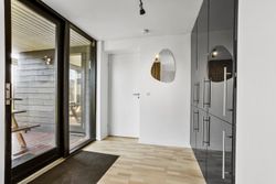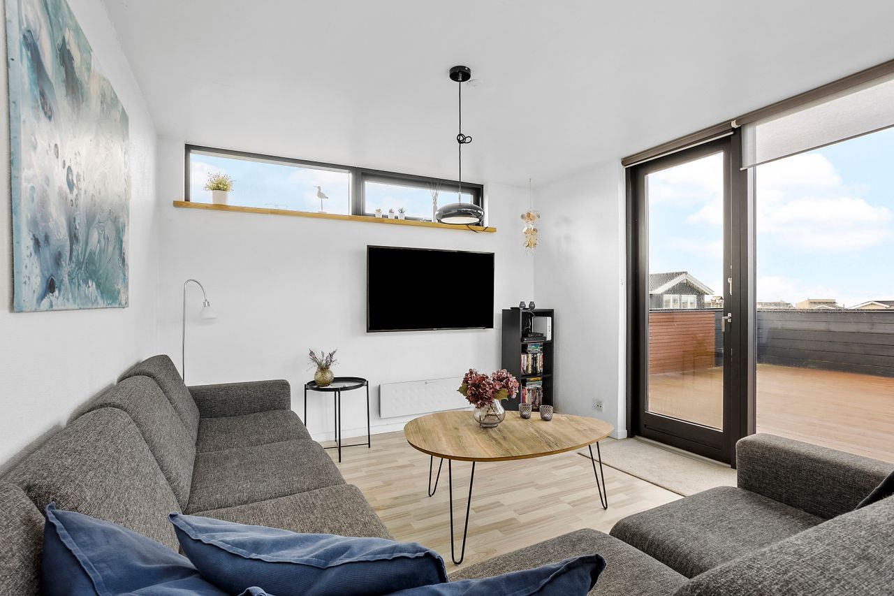 Huset imponerer med sin stilrene og moderne indretning, hvor lys og rummelighed er i fokus. Her finder du et stort og indbydende køkken-alrum med direkte udgang til de skønne terrassearealer, der elegant slynger sig omkring huset – perfekt til afslapning og hyggelige stunder under åben himmel.