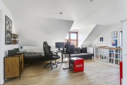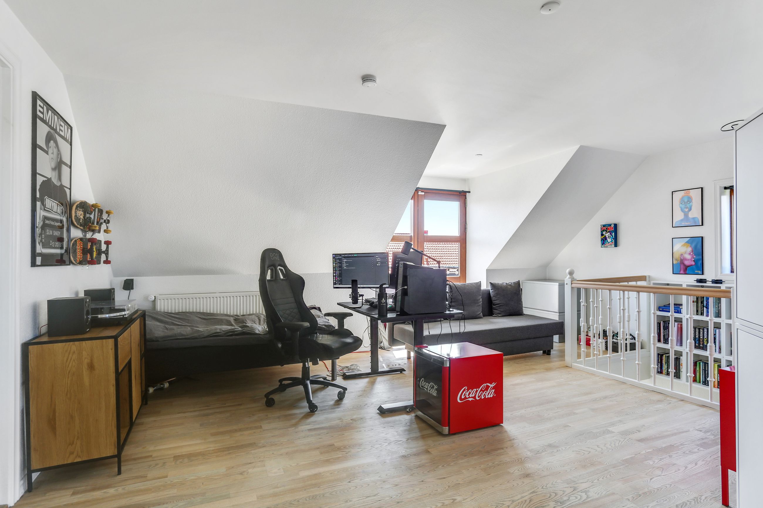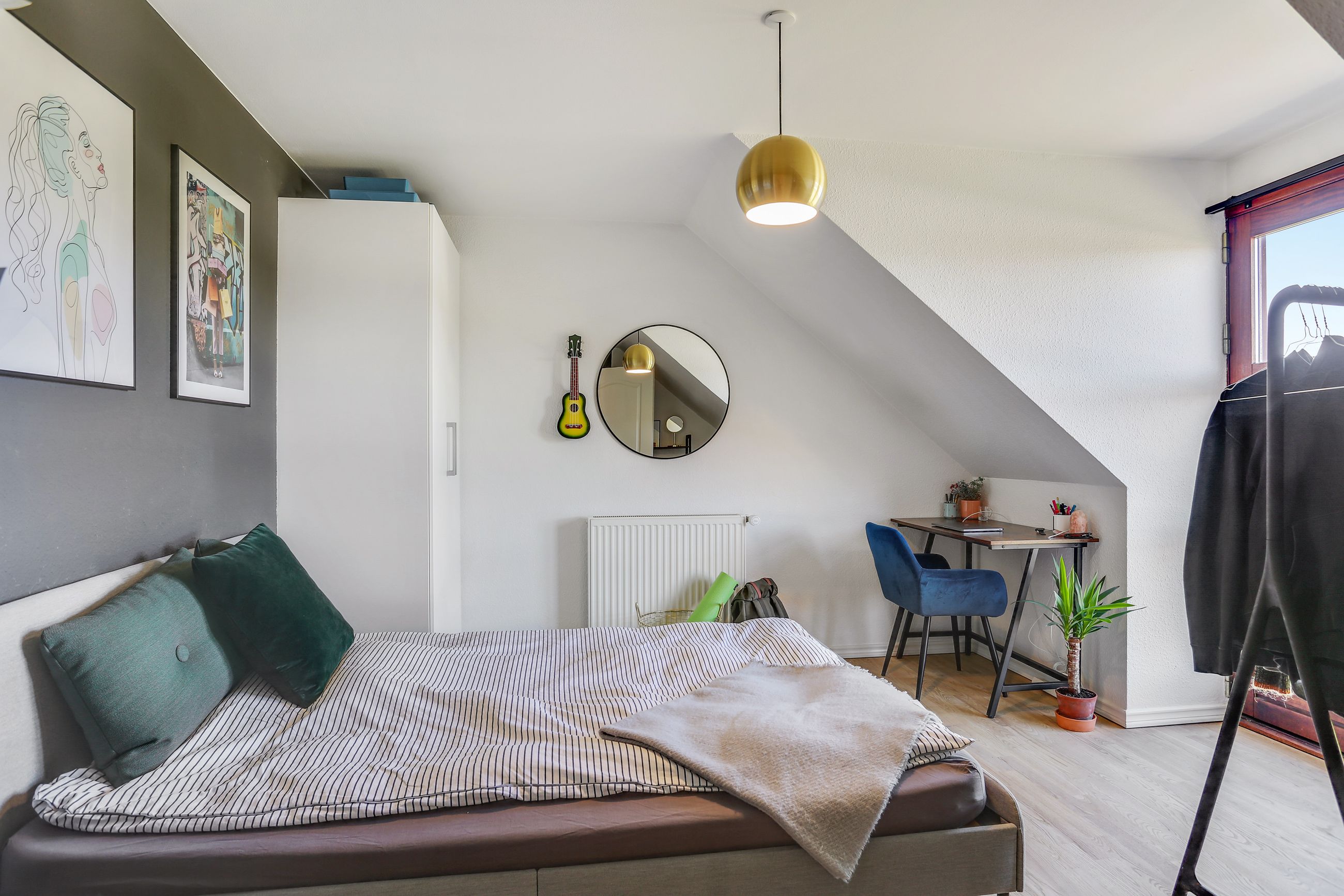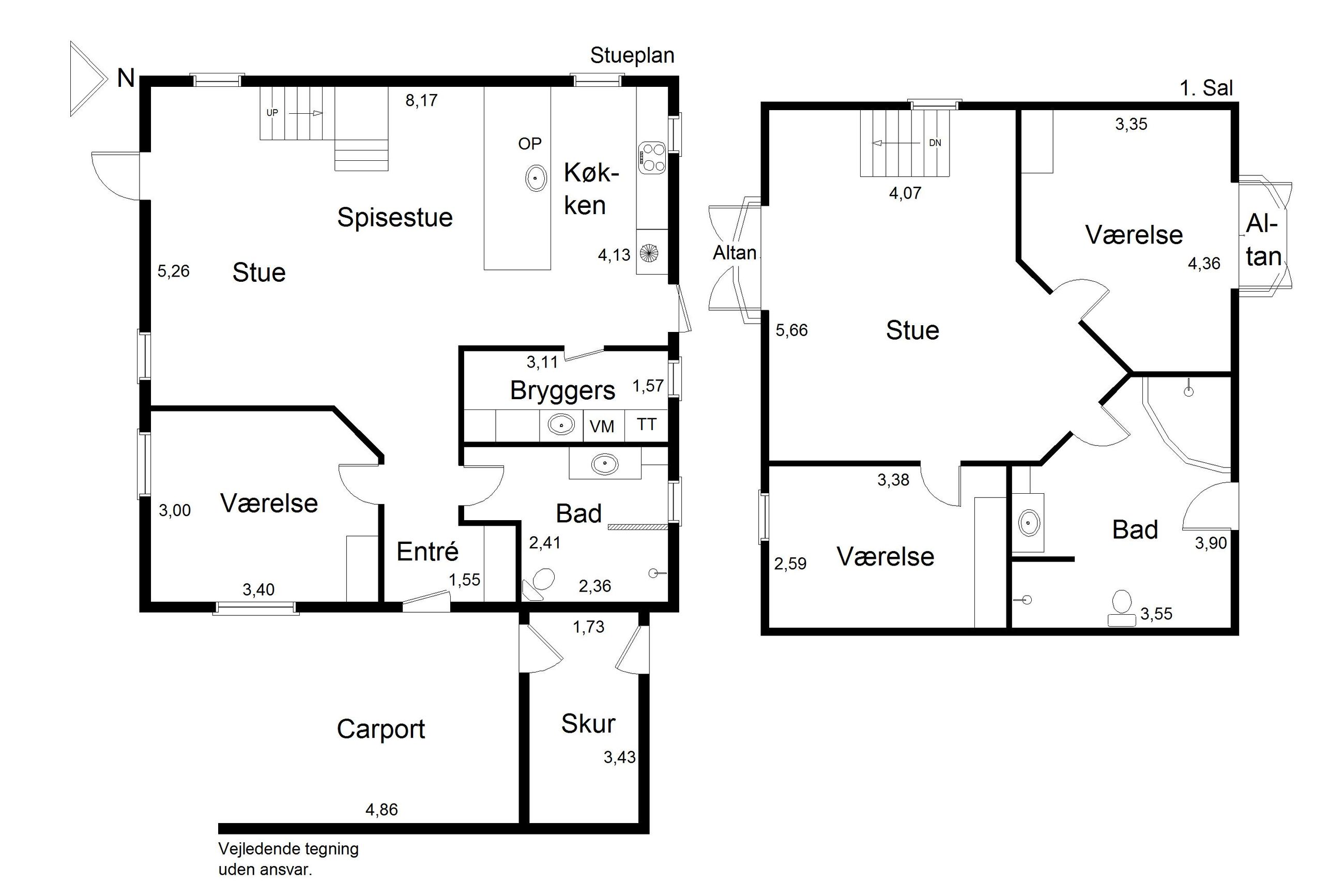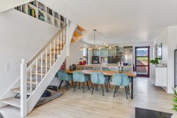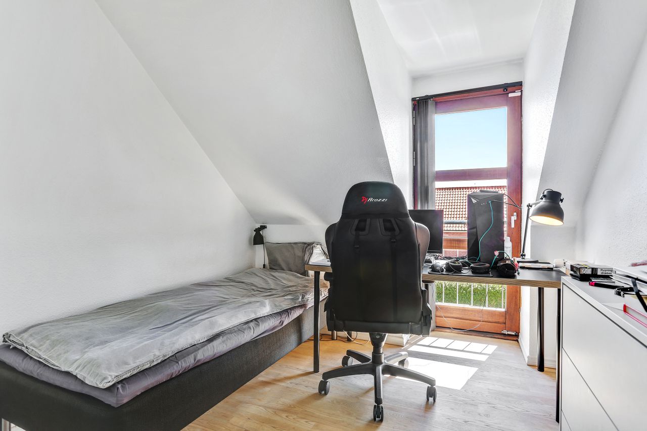 I stueplan finder du et lyst værelse, et stilfuldt badeværelse samt et praktisk bryggers. Hjertet af hjemmet er det åbne køkken-alrum, der indbyder til hyggelige stunder med familie og venner. Herfra er der direkte udgang til en skøn, lukket have med solrige kroge og læfyldte opholdspladser – ideel til både afslapning og udendørs samvær.