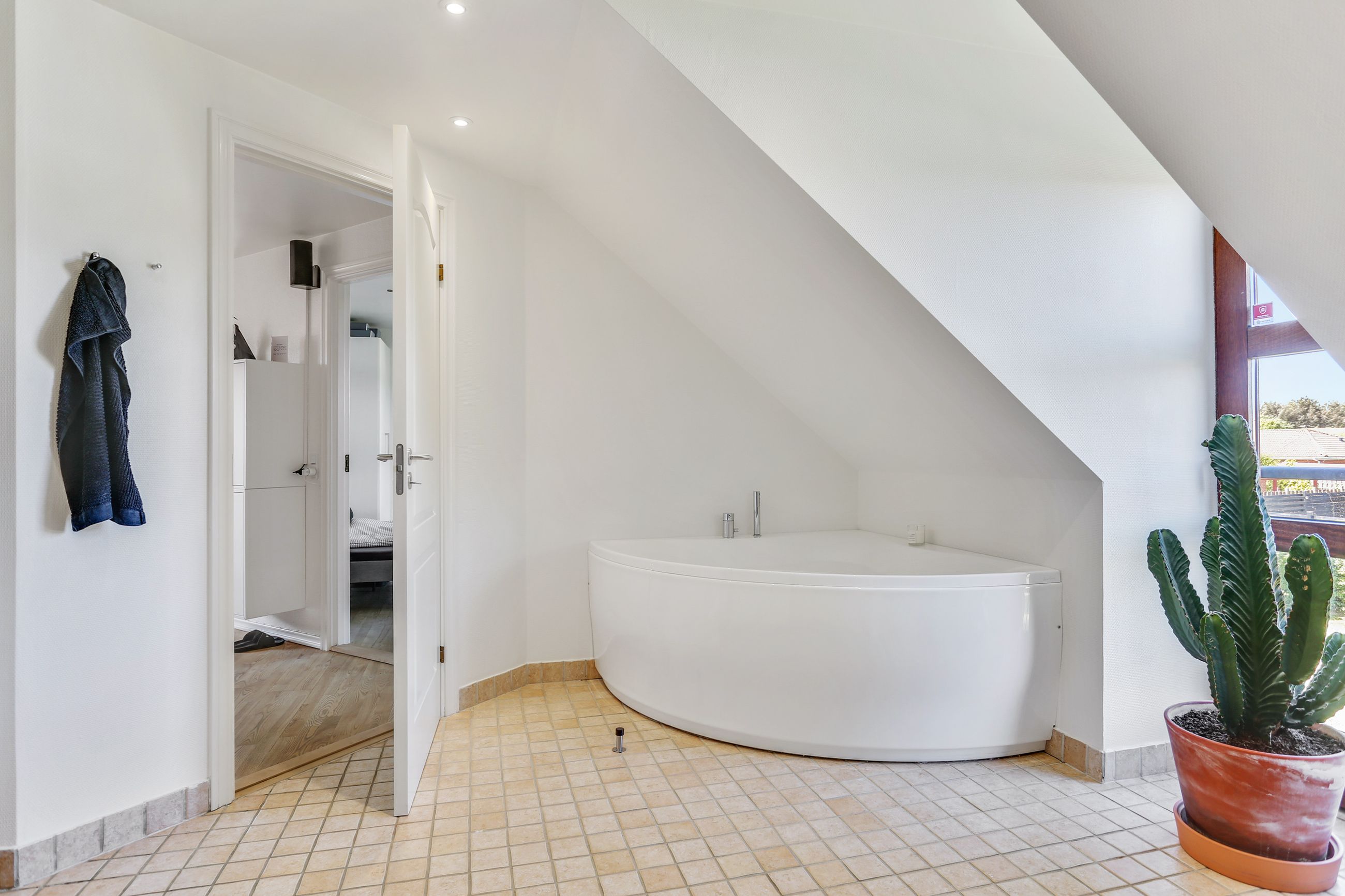 På førstesalen venter en hyggelig opholdsstue, to rummelige værelser samt et lækkert badeværelse med spa, der tilfører lidt ekstra luksus til hverdagen.