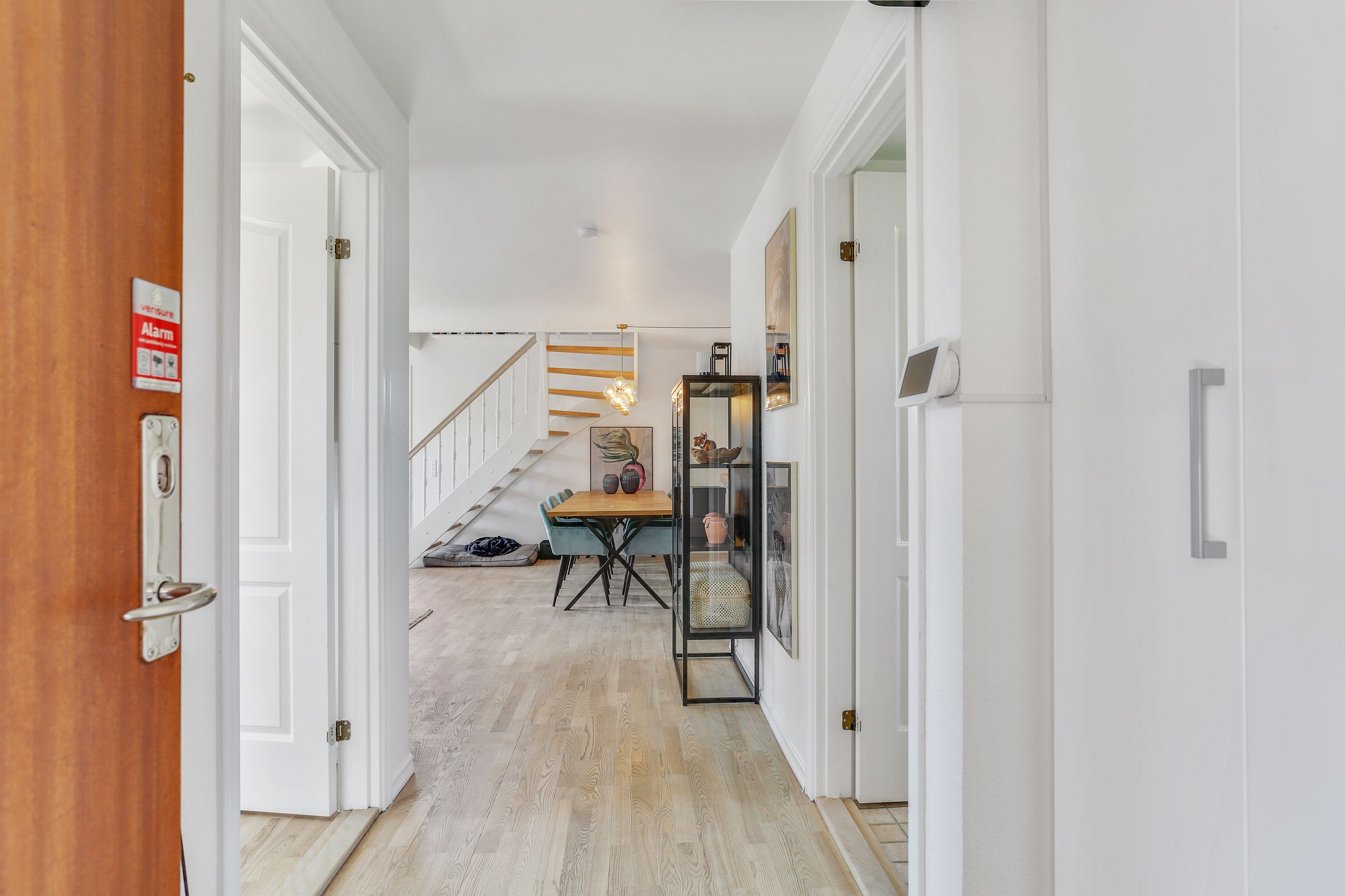 Når du træder indenfor, mødes du af en indbydende atmosfære og en gennemtænkt planløsning. Huset byder på en rummelig carport med direkte adgang til boligen, hvilket gør hverdagen ekstra bekvem.