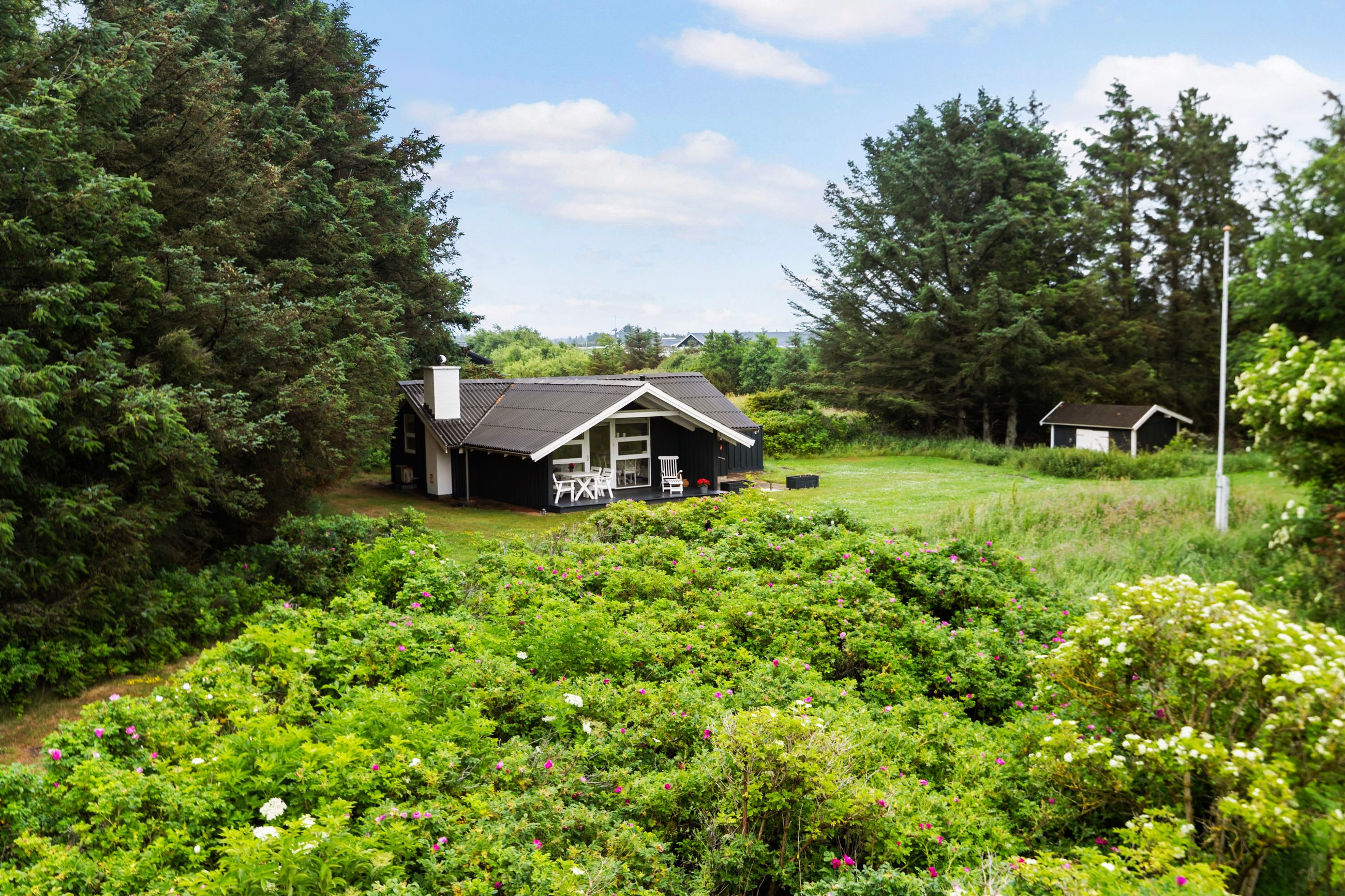 Her er hyggen i højsædet – både inde og ude. Sommerhuset er indrettet med tre gode værelser, et lyst badeværelse og et stort, åbent