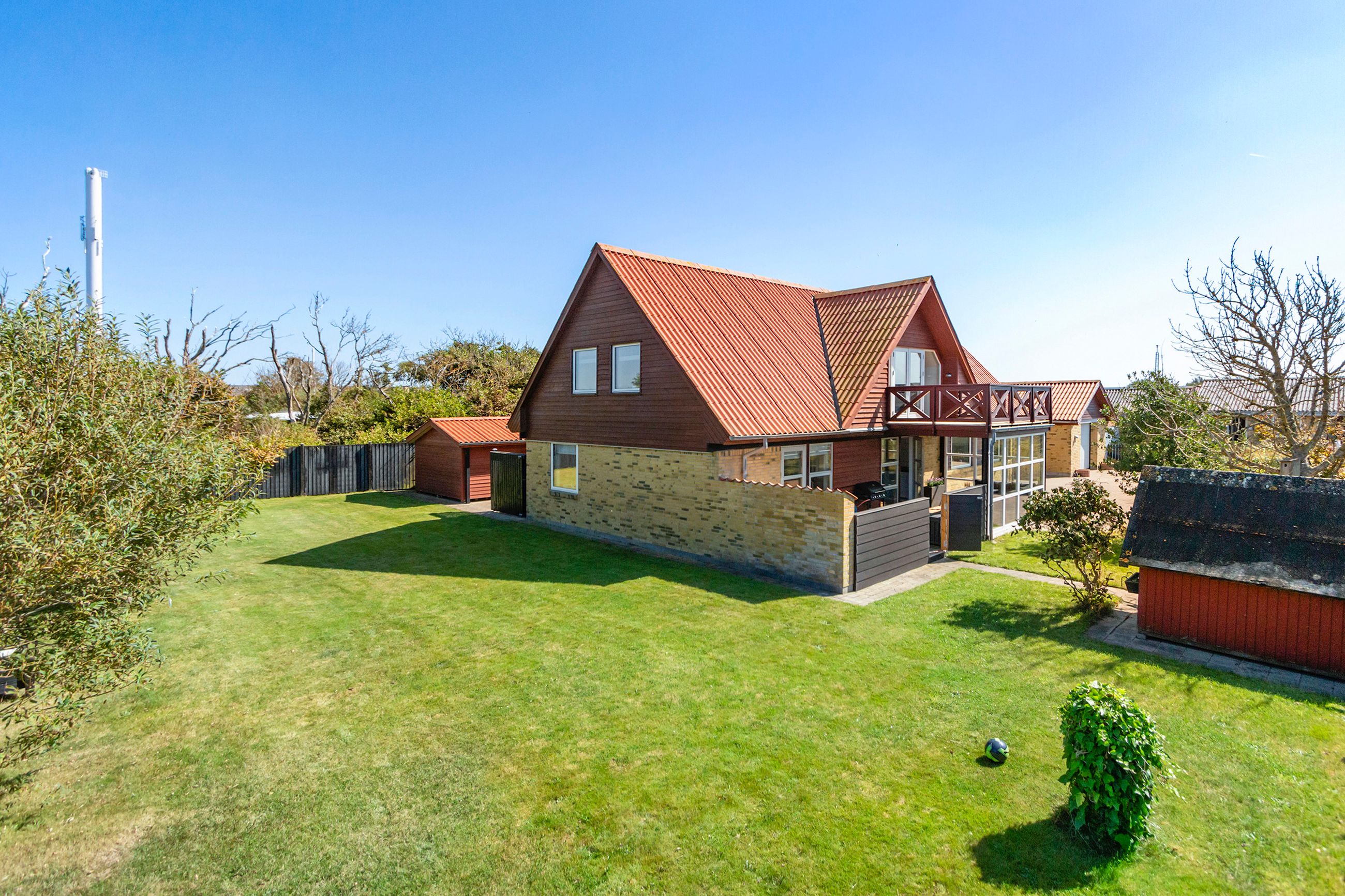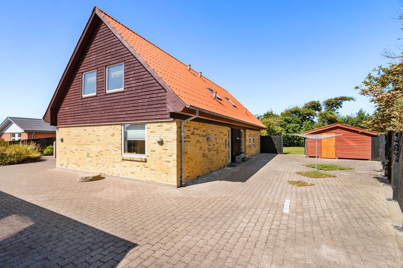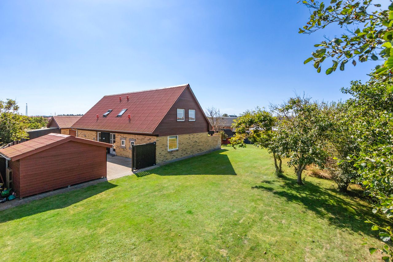 Villaen er opført på en stor grund, som giver masser af plads til leg, boldspil og hyggelige stunder i det fri.