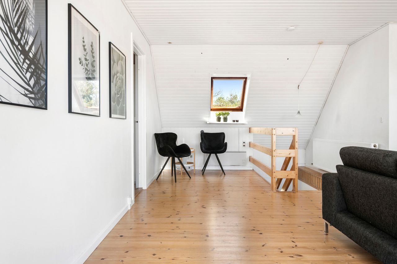 Boligen er ideel til den store familie med hele fire rummelige værelser – og med mulighed for at indrette endnu flere, hvis behovet opstår. Indretningen er fordelt på to plan, hvilket giver en god og funktionel planløsning med luft og pladsfornemmelse.