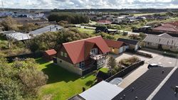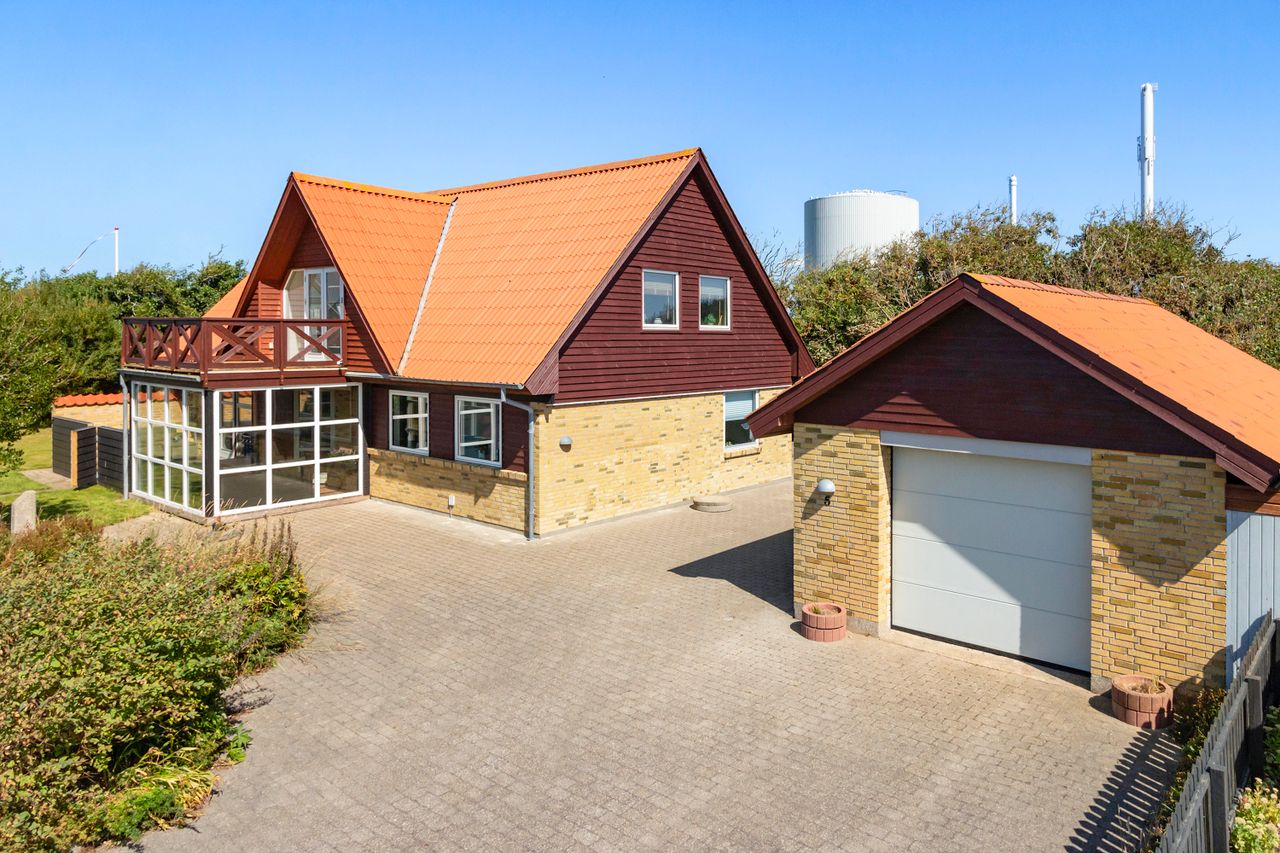 Til ejendommen hører desuden en rummelig garage samt gode opbevaringsmuligheder. Huset opvarmes med fjernvarme, hvilket sikrer en både økonomisk og driftsvenlig løsning.