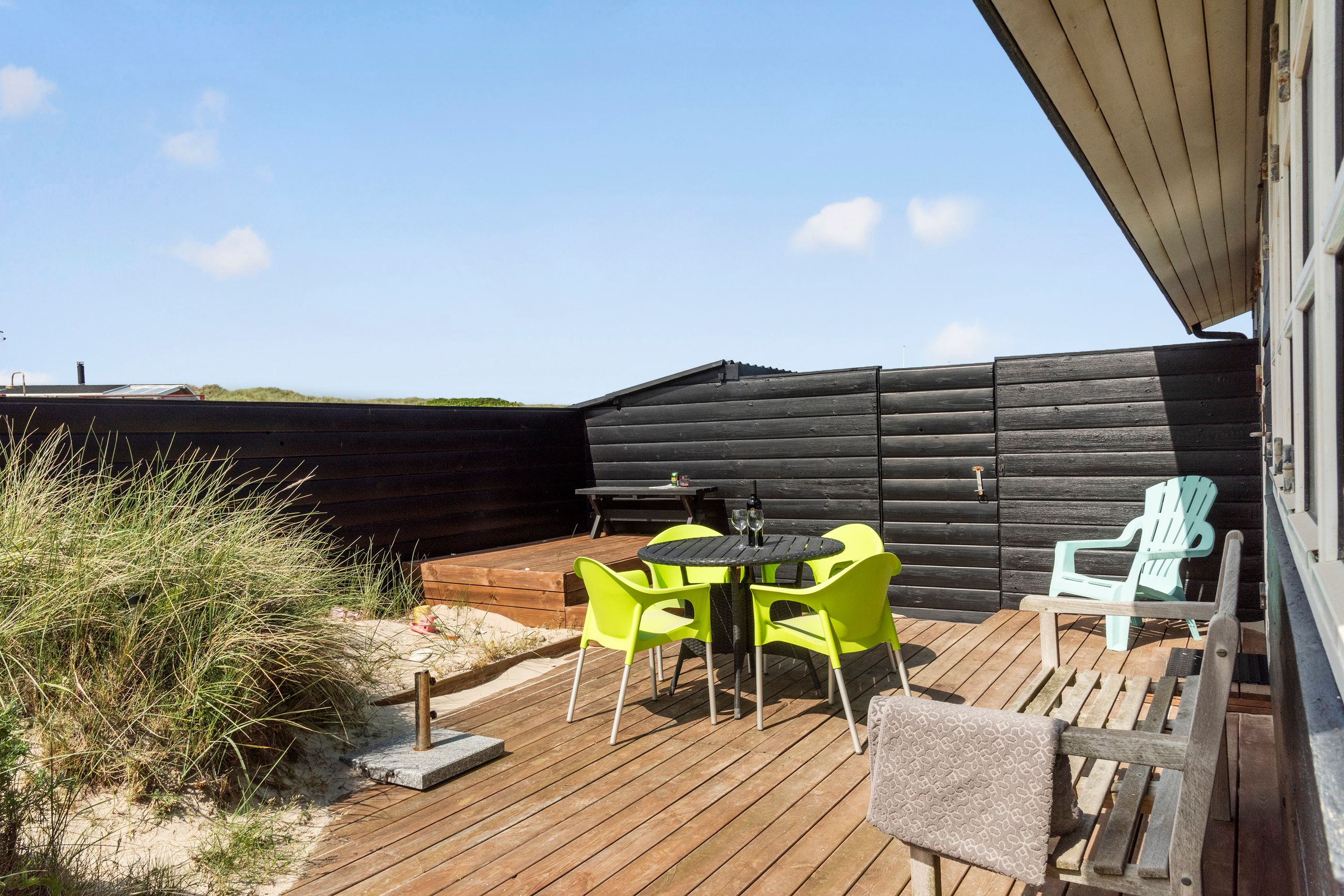 Den overdækkede terrasse skaber læ og luner, når vestenvinden rusker, og giver mulighed for udendørshygge med grill og tæpper – selv på kølige aftener. Her kan I nyde stilheden, samværet og det særlige lys, som kun findes tæt på Vesterhavet.
