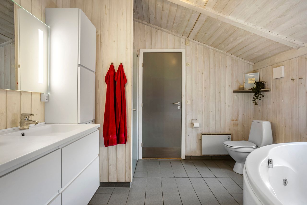 Huset fremstår moderne og indbydende med tre rummelige værelser samt en hyggelig hems. Her er god plads til både familie og gæster. Det store badeværelse rummer både spa og sauna, så her kan hverdagen nemt afløses af afslapning og velvære.