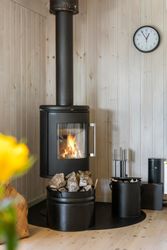 Som en ekstra detalje er der opført et nyt skur til opbevaring af cykler og udstyr. Huset opvarmes både med brændeovn og varmepumpe, hvilket gør det behageligt og nemt at holde varmt året rundt.