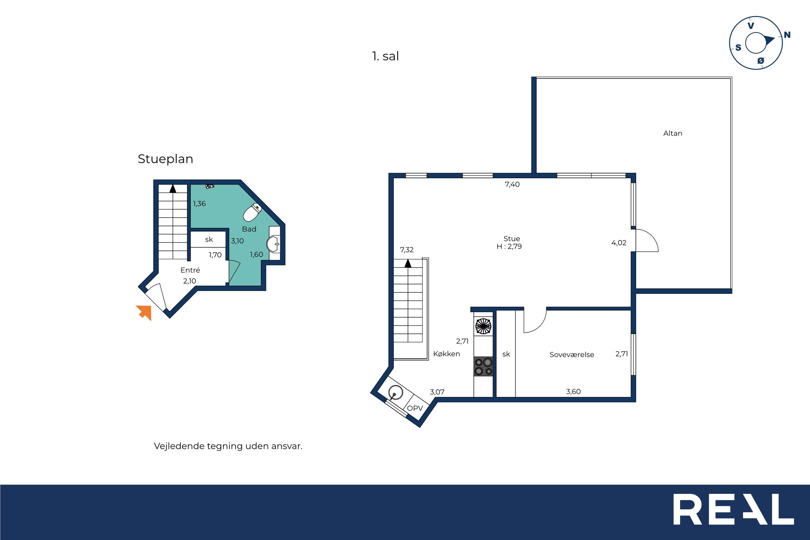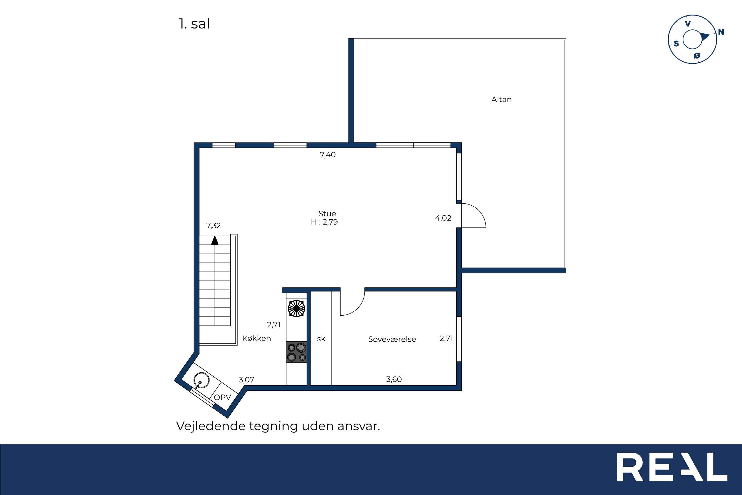 Indenfor mødes du af en bolig, hvor hvert rum føles rart at være i – et rummeligt badeværelse, et stort soveværelse og et opholdsrum med plads til både samvær og fordybelse.
