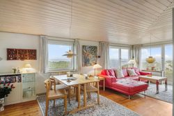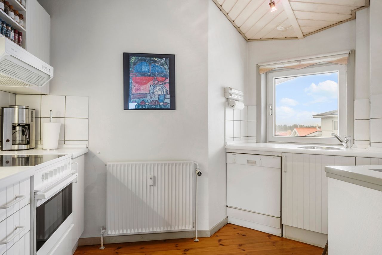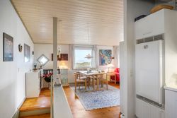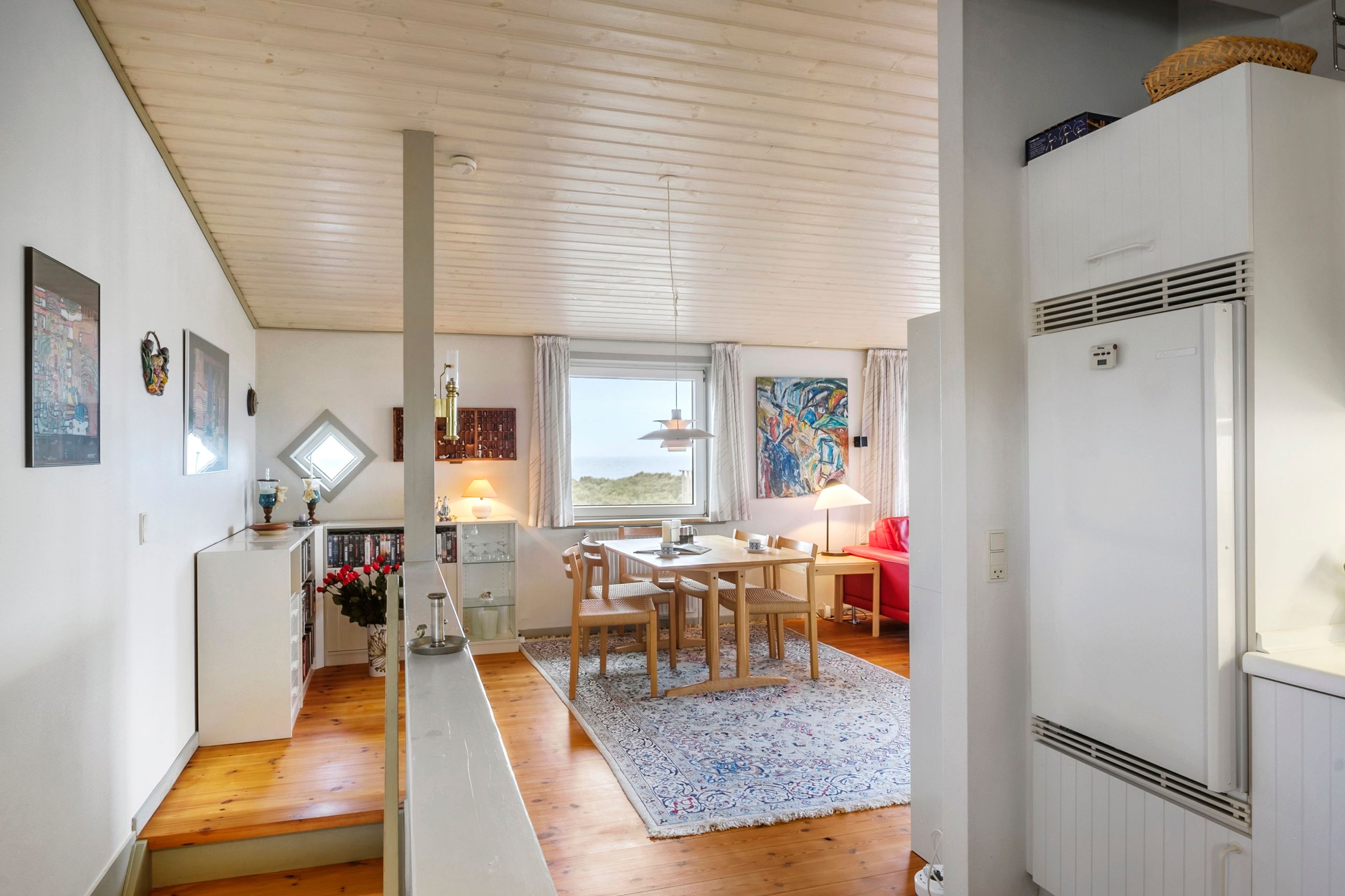 Fra både køkken-alrummet og soveværelset har du en panoramaudsigt, der aldrig mister sin magi. Du kan følge bådene, der trækkes op ved molen, se solen danse i horisonten og mærke den særlige atmosfære, som kun findes her i Løkken.
