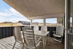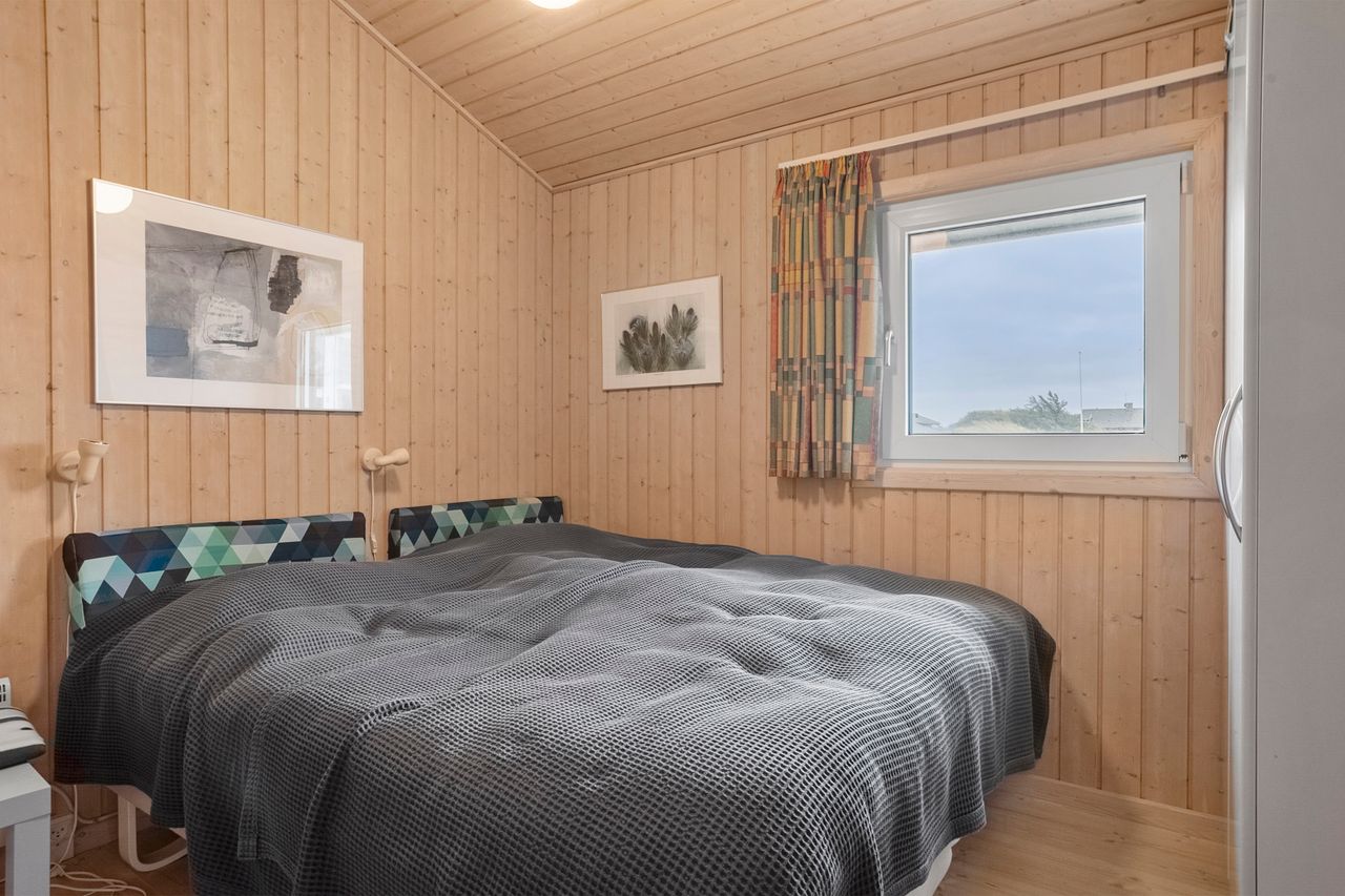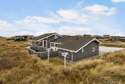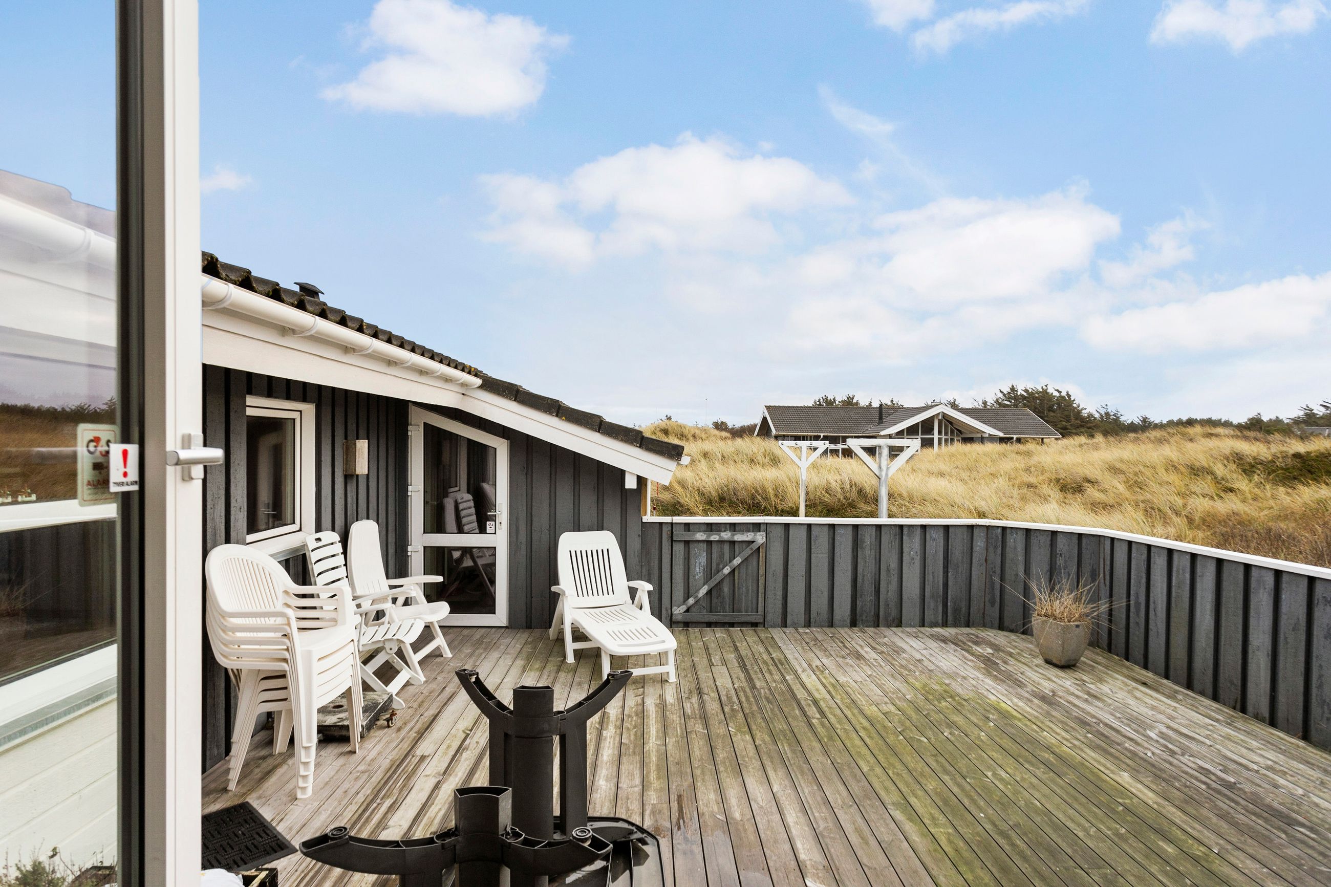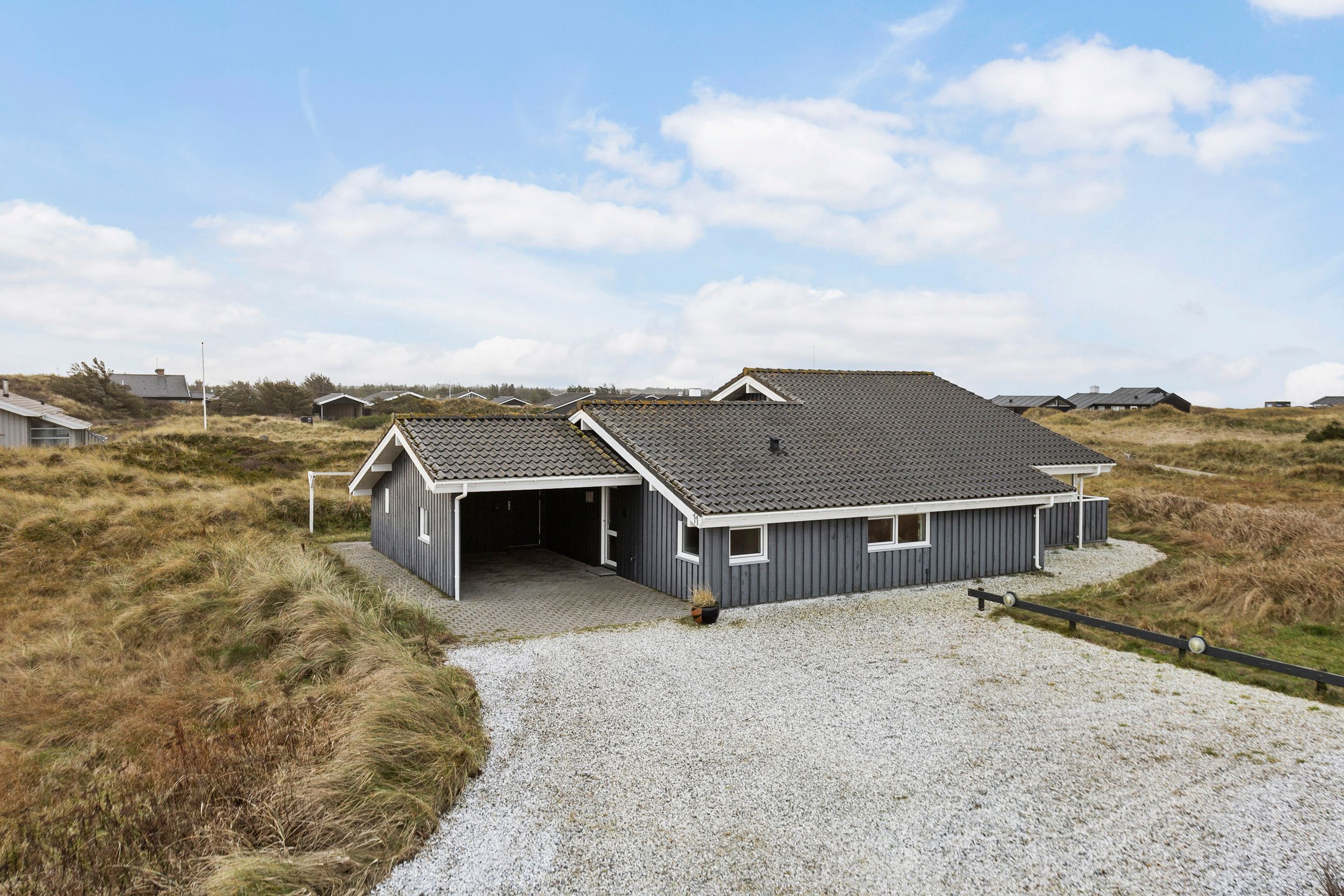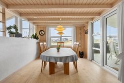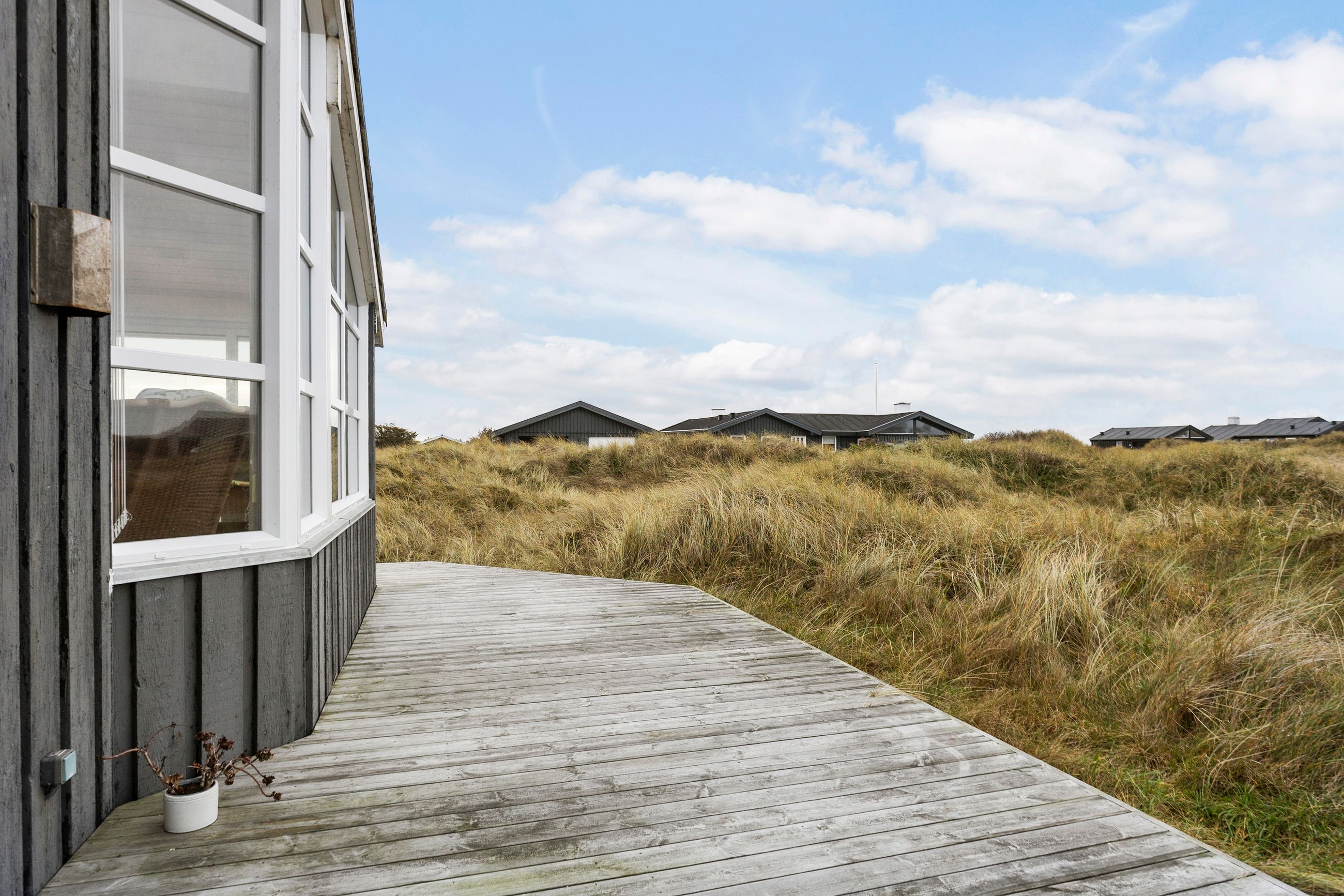 Husets hjerte er det lyse og indbydende køkken i åben forbindelse med spisestuen, hvor samvær og feriehygge er i fokus. Den rummelige stue imponerer med et skønt lysindfald fra de store vinduespartier og en dejlig udsigt til det omkringliggende klitlandskab – naturen bliver en naturlig del af indretningen.