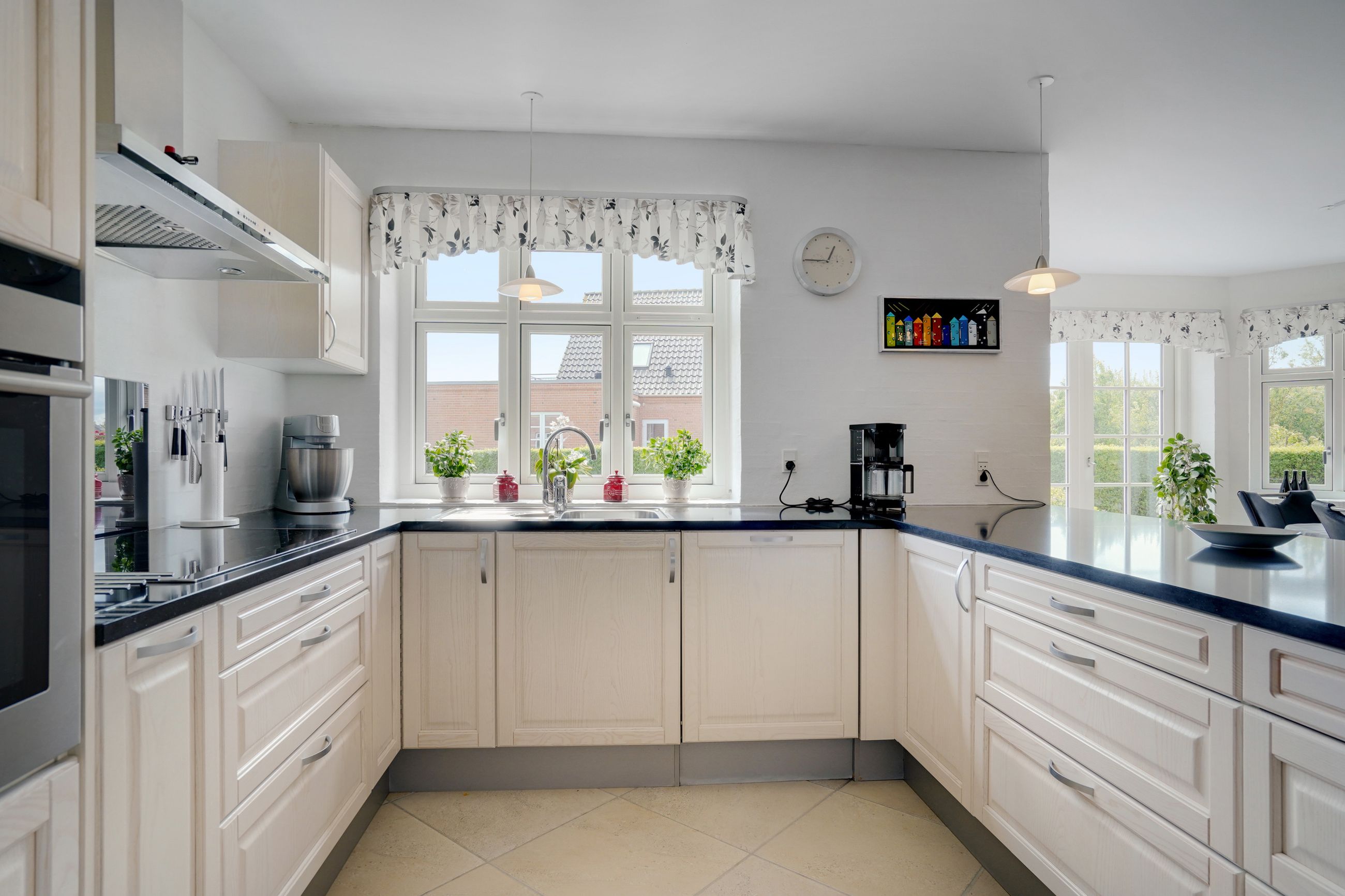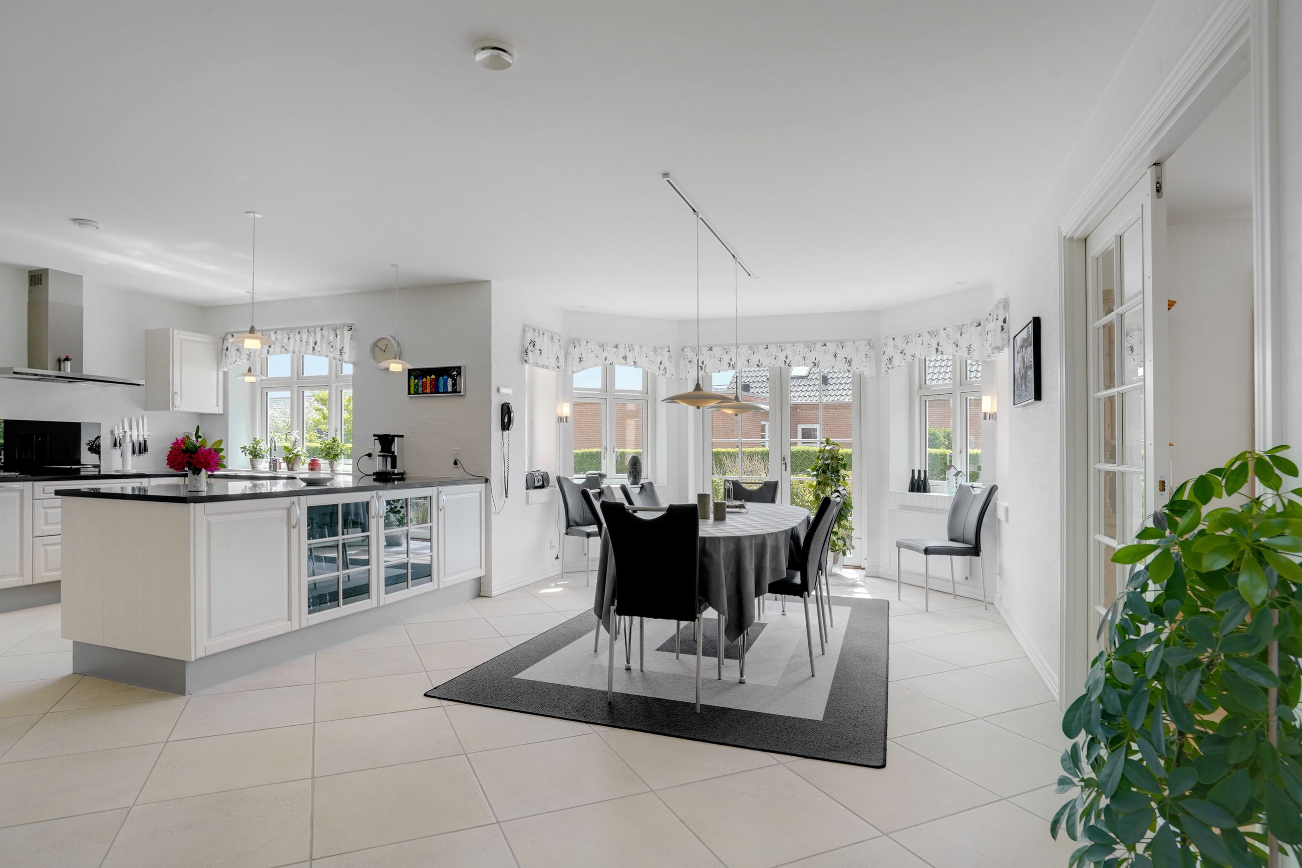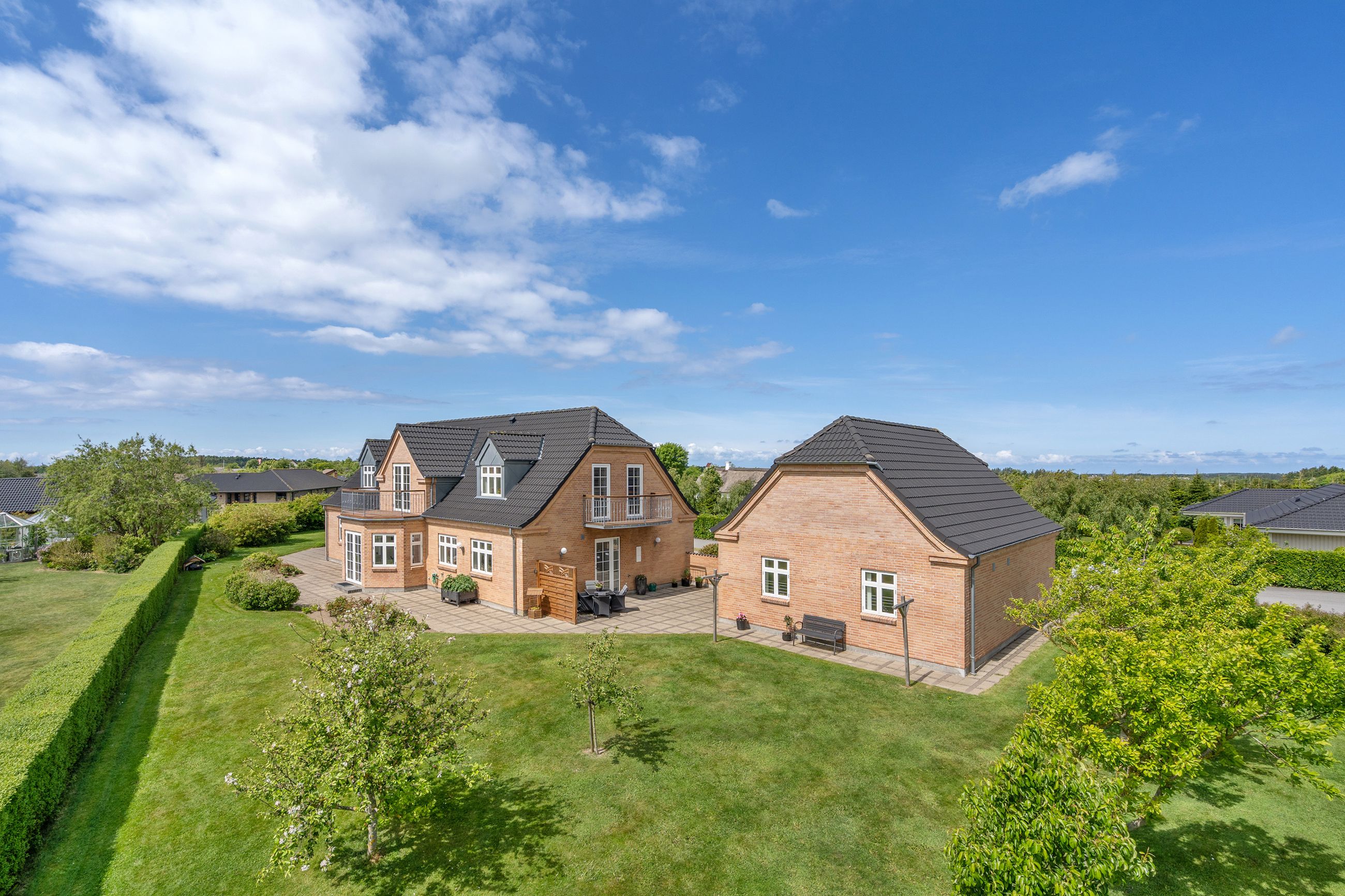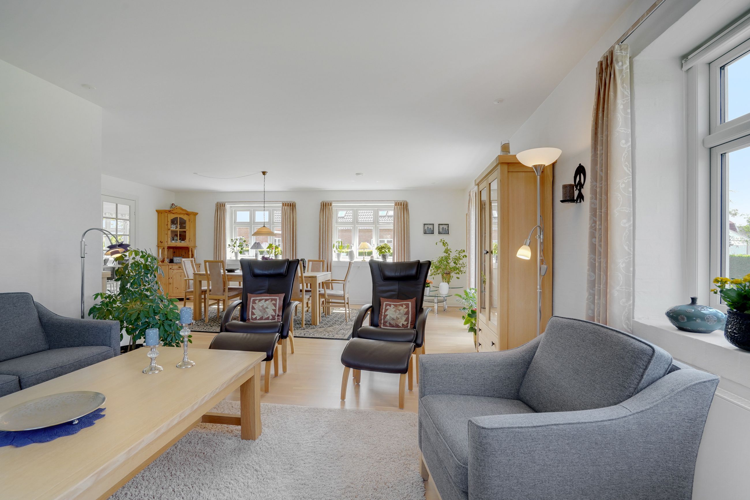 Man kommer ind i en dejlig stor hall, hvor der er adgang til husets store køkken/alrum, som er hjertet i huset. Stor dejlig opholdsstue med trægulv og adgang til haven. Gode værelser. Dejligt rummeligt badeværelse. 1. salen indeholder lyst stue, tekøkken. Stort soveværelse med waæl in skab. Dejlig badeværelse. Værelse/kontor med udgang til altan, herfra flot udsigt over marker, enge mv.