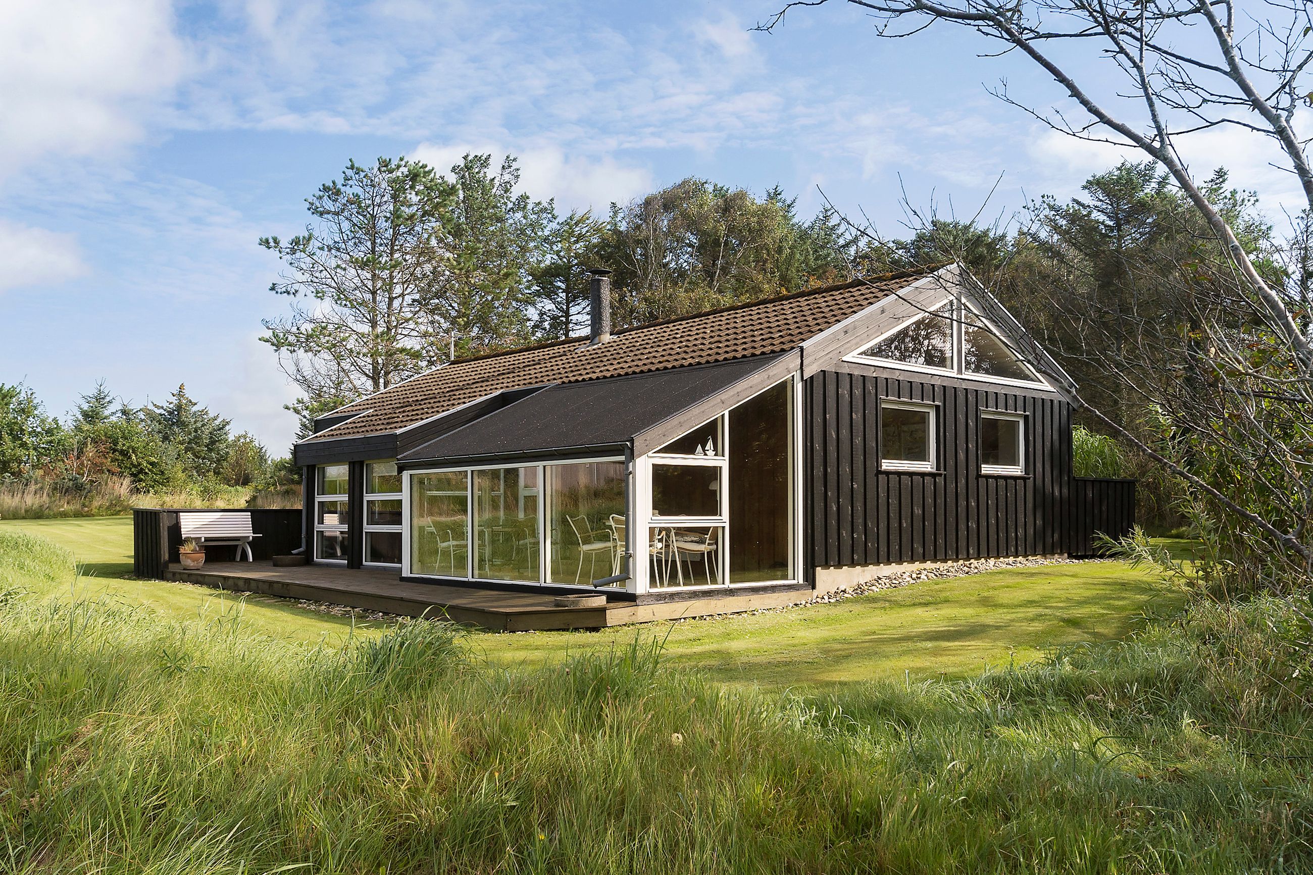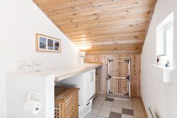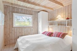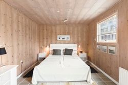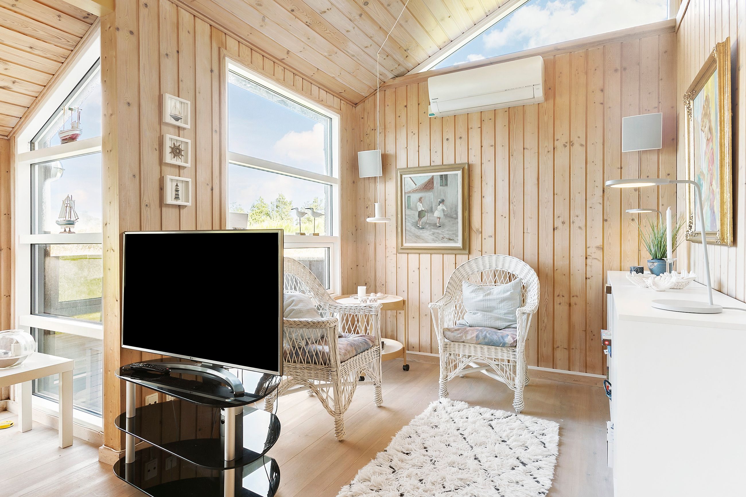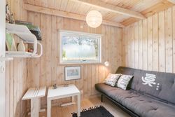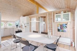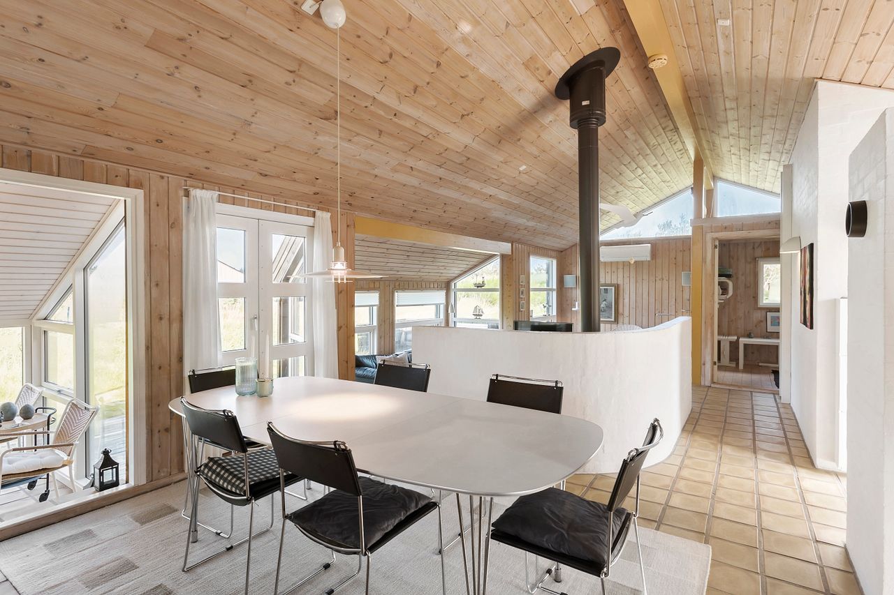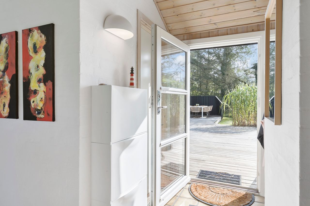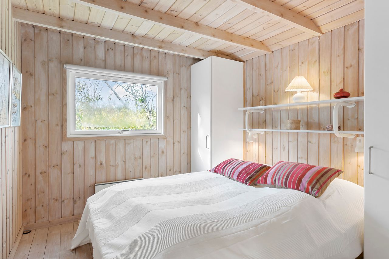 Indenfor mødes du af store vinduespartier, der skaber en lys og indbydende atmosfære i det rummelige køkken-alrum, som er i åben forbindelse med den store stue. Her er der plads til både afslapning og hyggelige middage med familie og venner. Huset byder også på viktualierum med ekstra opbevaring og køleskab. Sommerhuset har tre gode værelser, alle med indbygget skabsplads, og et lyst køkken, der er funktionelt og veludstyret.