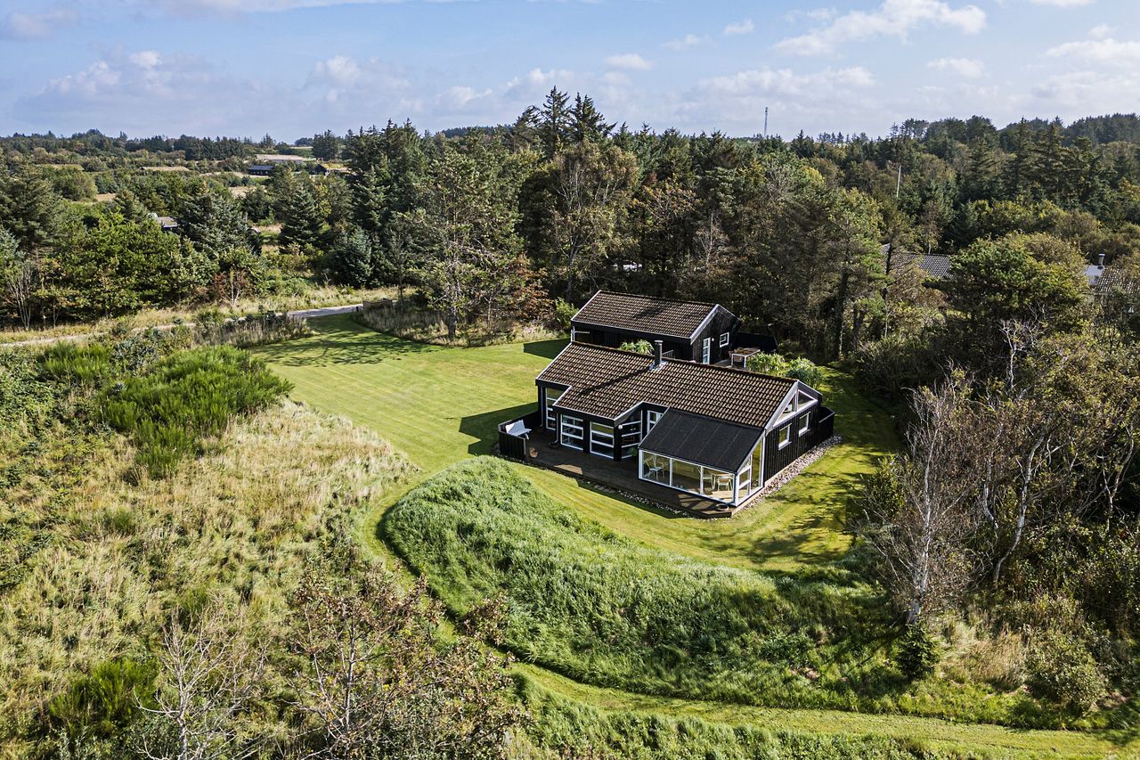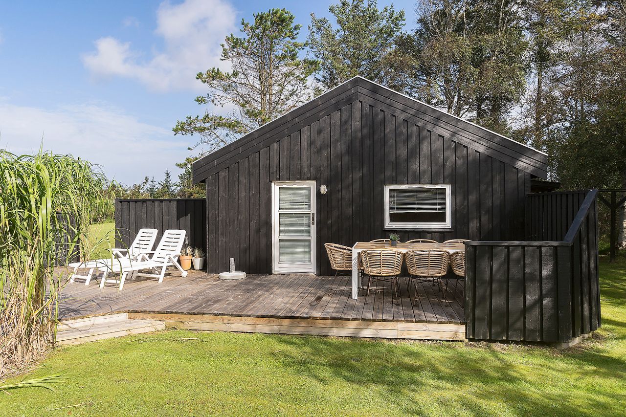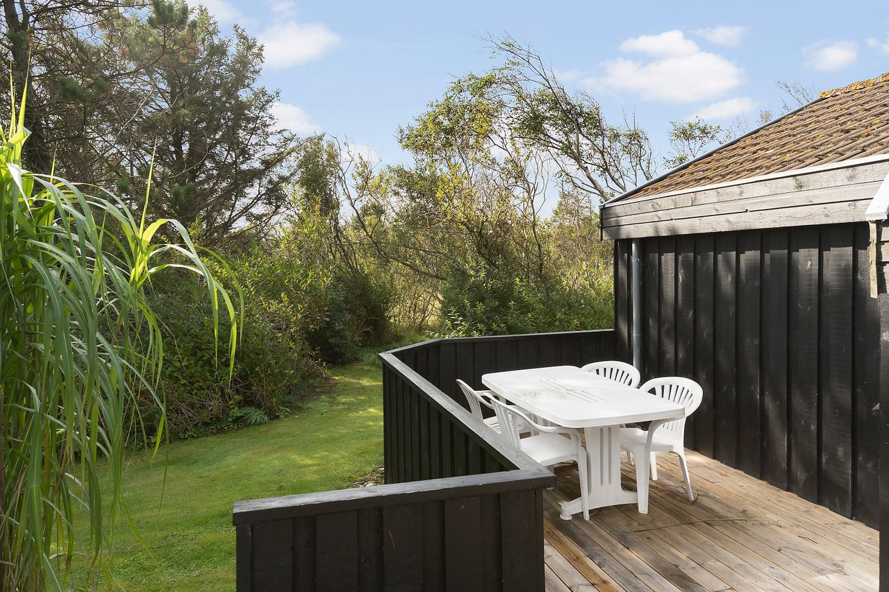 Dette dejlige sommerhus ligger i et roligt område og byder på alt, hvad du behøver for at nyde en afslappende ferie tæt på naturen. Huset har flere gode terrasser, hvor du kan nyde solen og den friske luft, mens haven giver masser af plads til leg og aktiviteter for både børn og voksne. Sælger har plantet nye grantræer for ca. 4 år siden, samt lavet en høj således du er afskærmet fra naboen. Du er tæt på Fårup Sommerland, gode indkøbs muligheder, Jambo Feriepark som blandt andet byder på minigolf, Vesterhavet og meget mere.