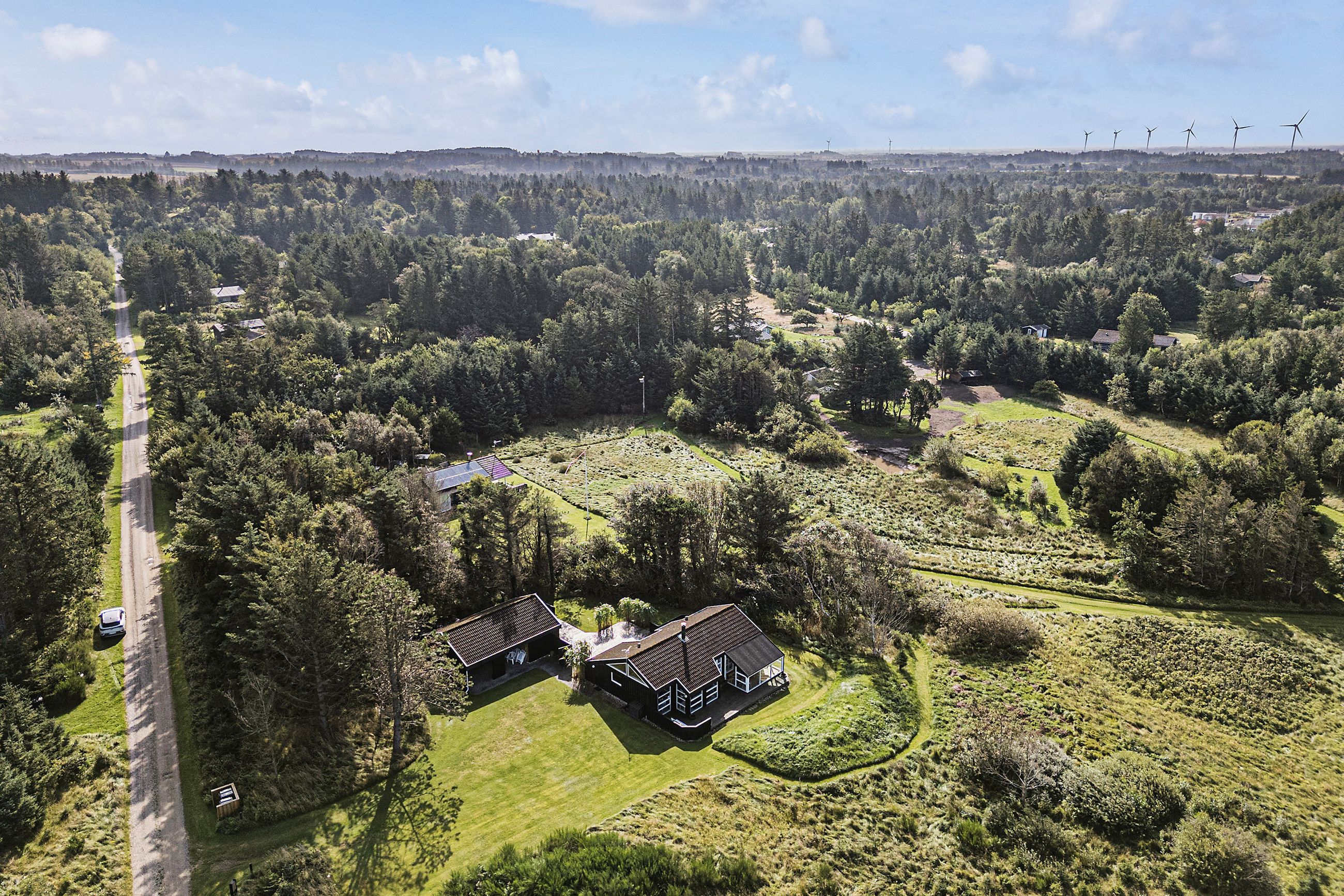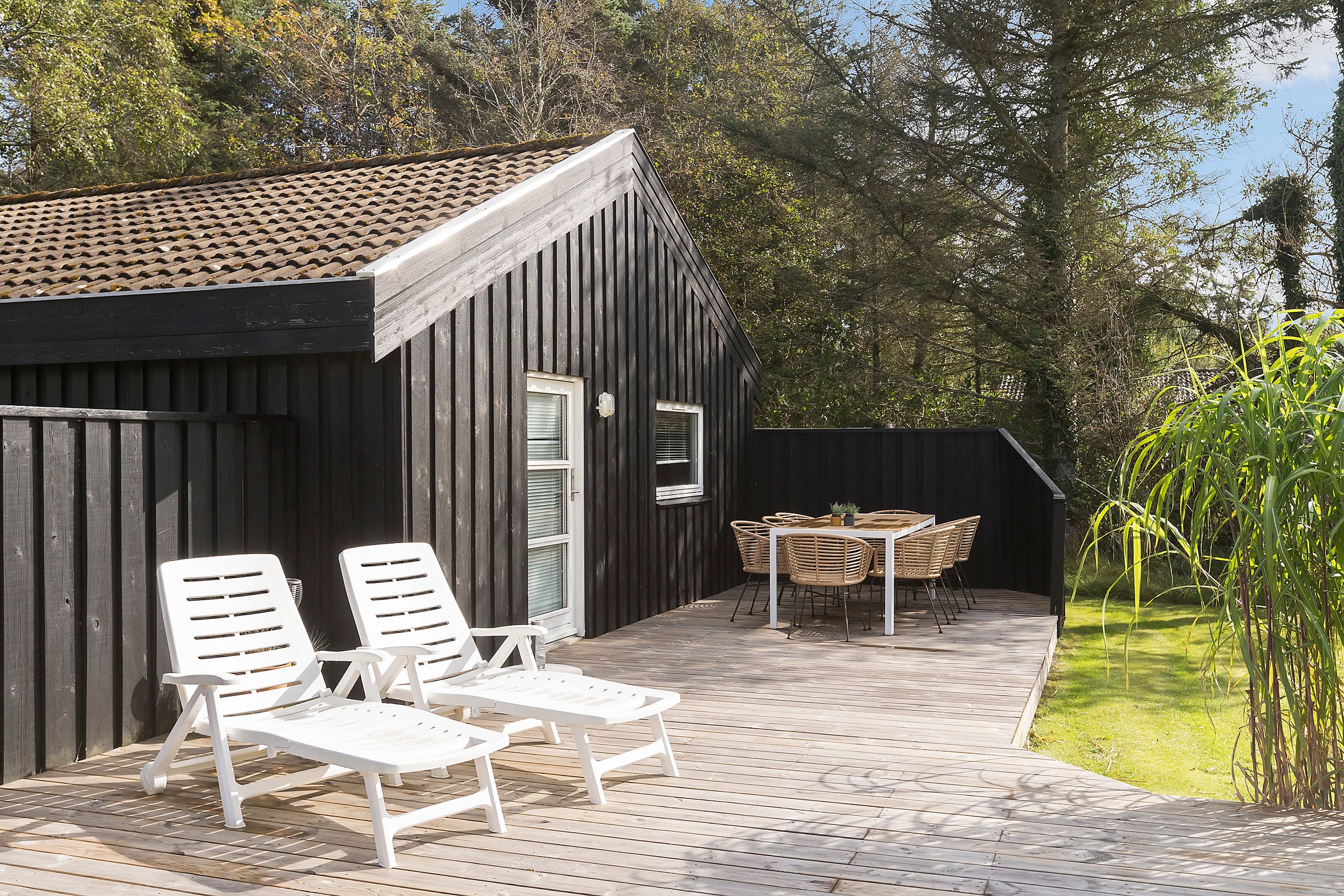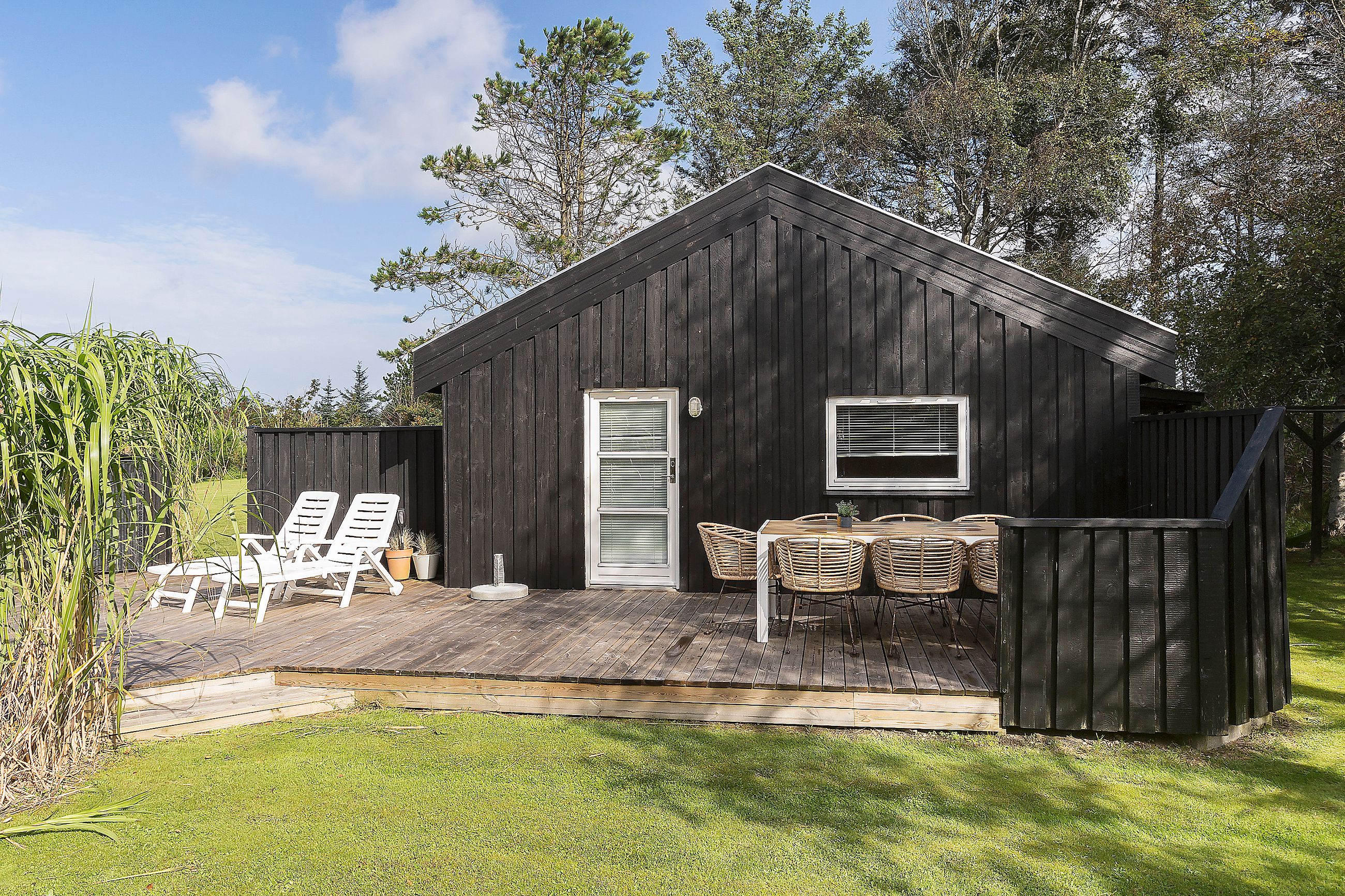 Dette dejlige sommerhus ligger i et roligt område og byder på alt, hvad du behøver for at nyde en afslappende ferie tæt på naturen. Huset har flere gode terrasser, hvor du kan nyde solen og den friske luft, mens haven giver masser af plads til leg og aktiviteter for både børn og voksne. Sælger har plantet nye grantræer for ca. 4 år siden, samt lavet en høj således du er afskærmet fra naboen. Du er tæt på Fårup Sommerland, gode indkøbs muligheder, Jambo Feriepark som blandt andet byder på minigolf, Vesterhavet og meget mere.