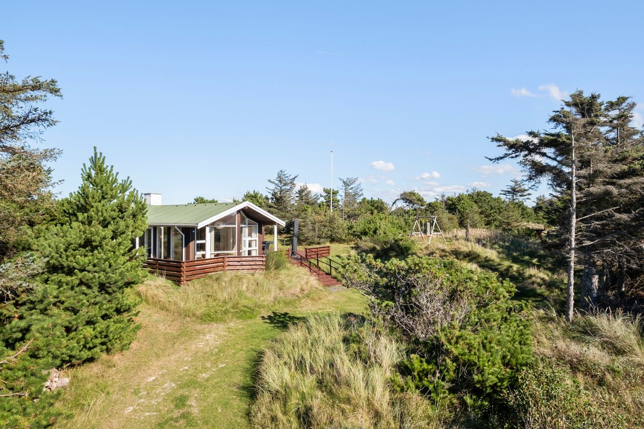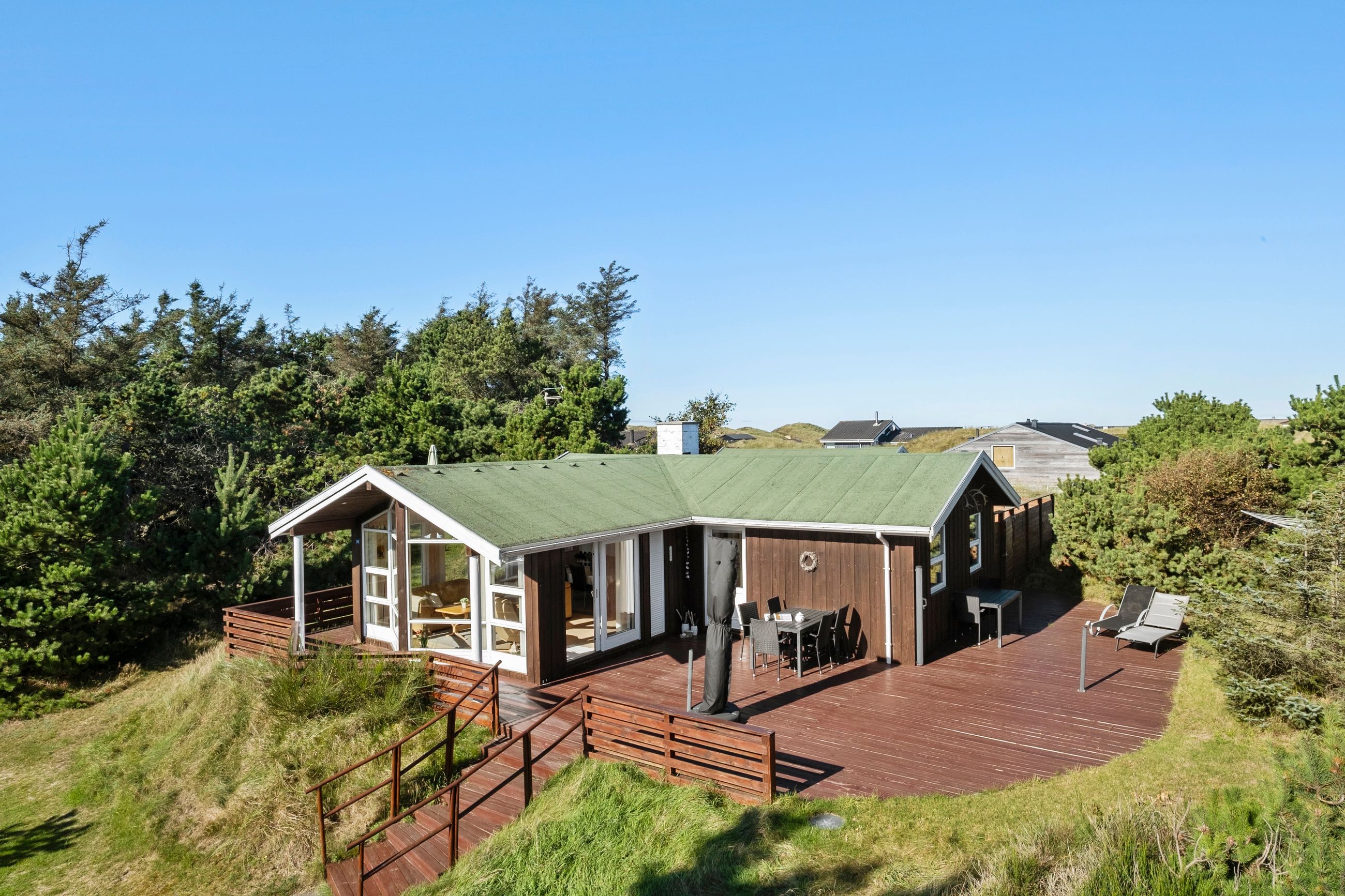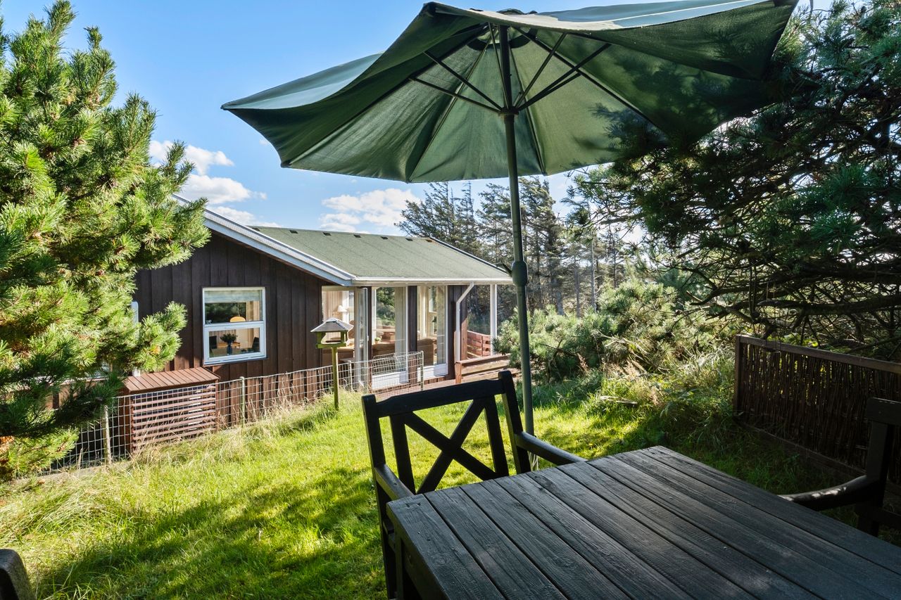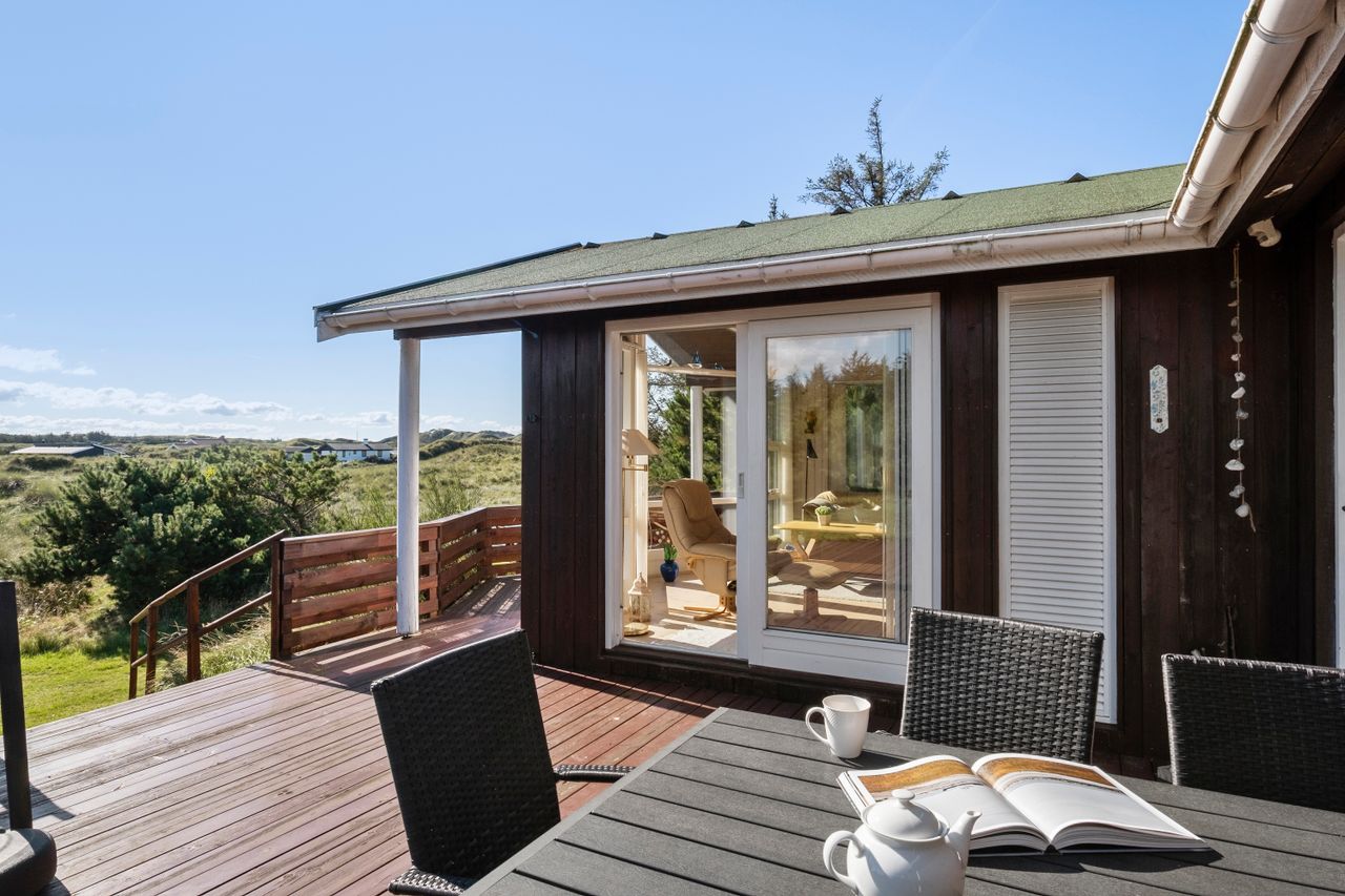 Huset ligger højt i rolige omgivelser med en flot udsigt ud over det uspolerede lyng- og klitområder. På trods af den høje placering er der stadig rig mulighed for at finde sol og læ på de omkringliggende små terrasser. Der findes desuden en lukket terrasse hvor som er helt ugeneret.