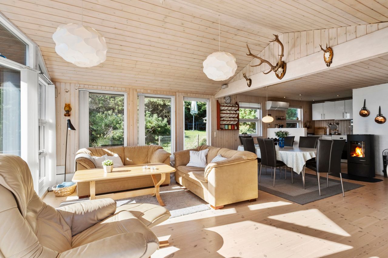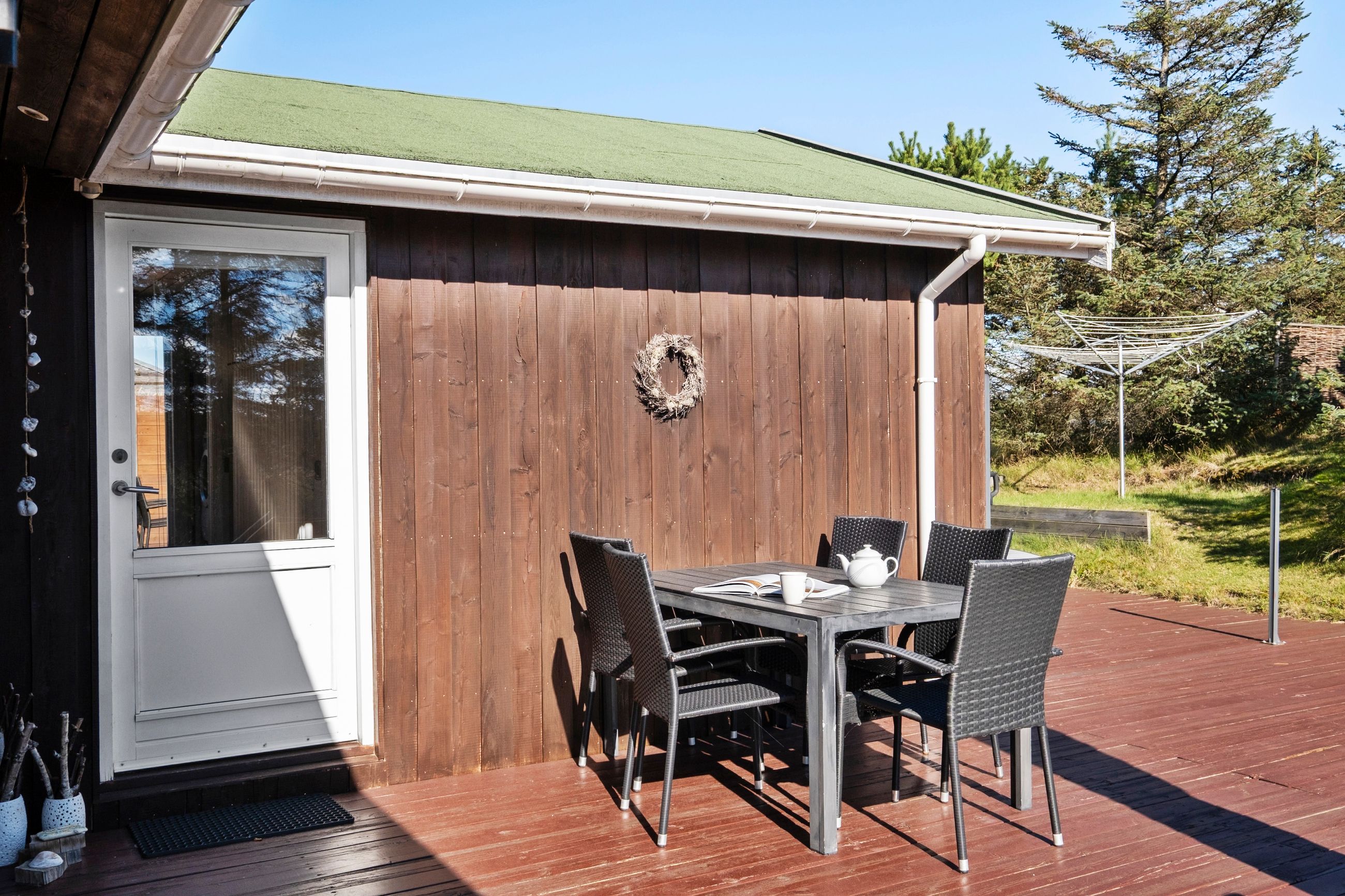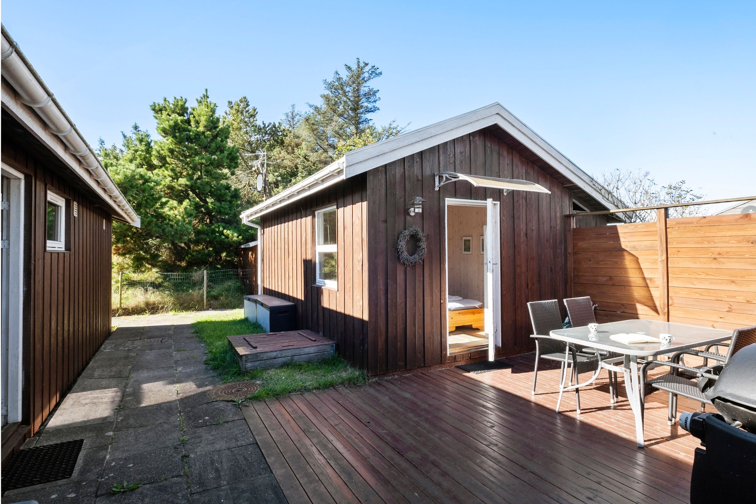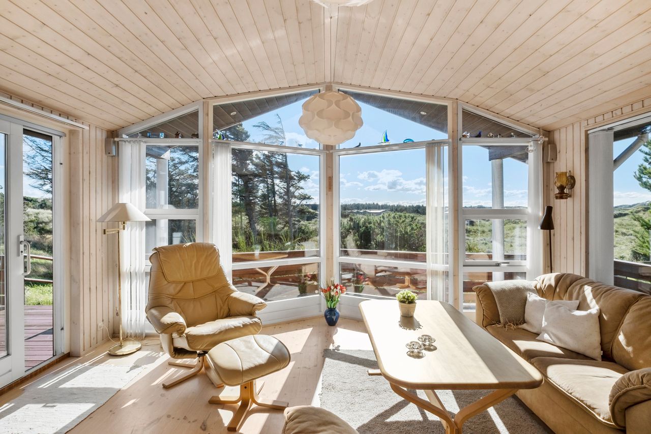 Huset ligger højt i rolige omgivelser med en flot udsigt ud over det uspolerede lyng- og klitområder. På trods af den høje placering er der stadig rig mulighed for at finde sol og læ på de omkringliggende små terrasser. Der findes desuden en lukket terrasse hvor som er helt ugeneret.