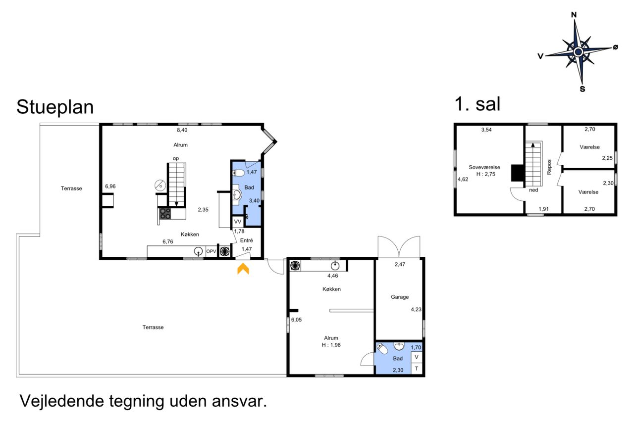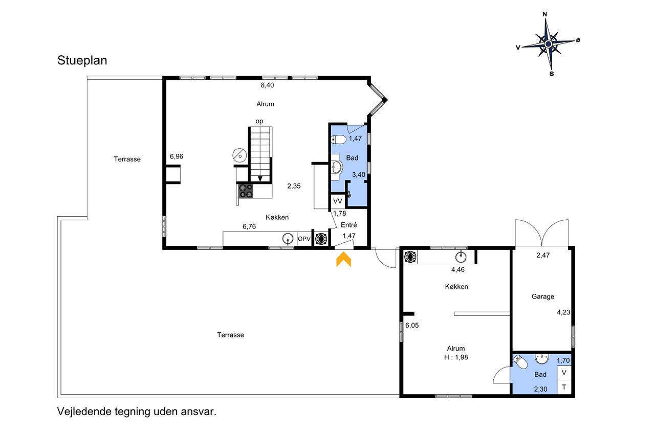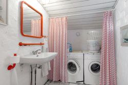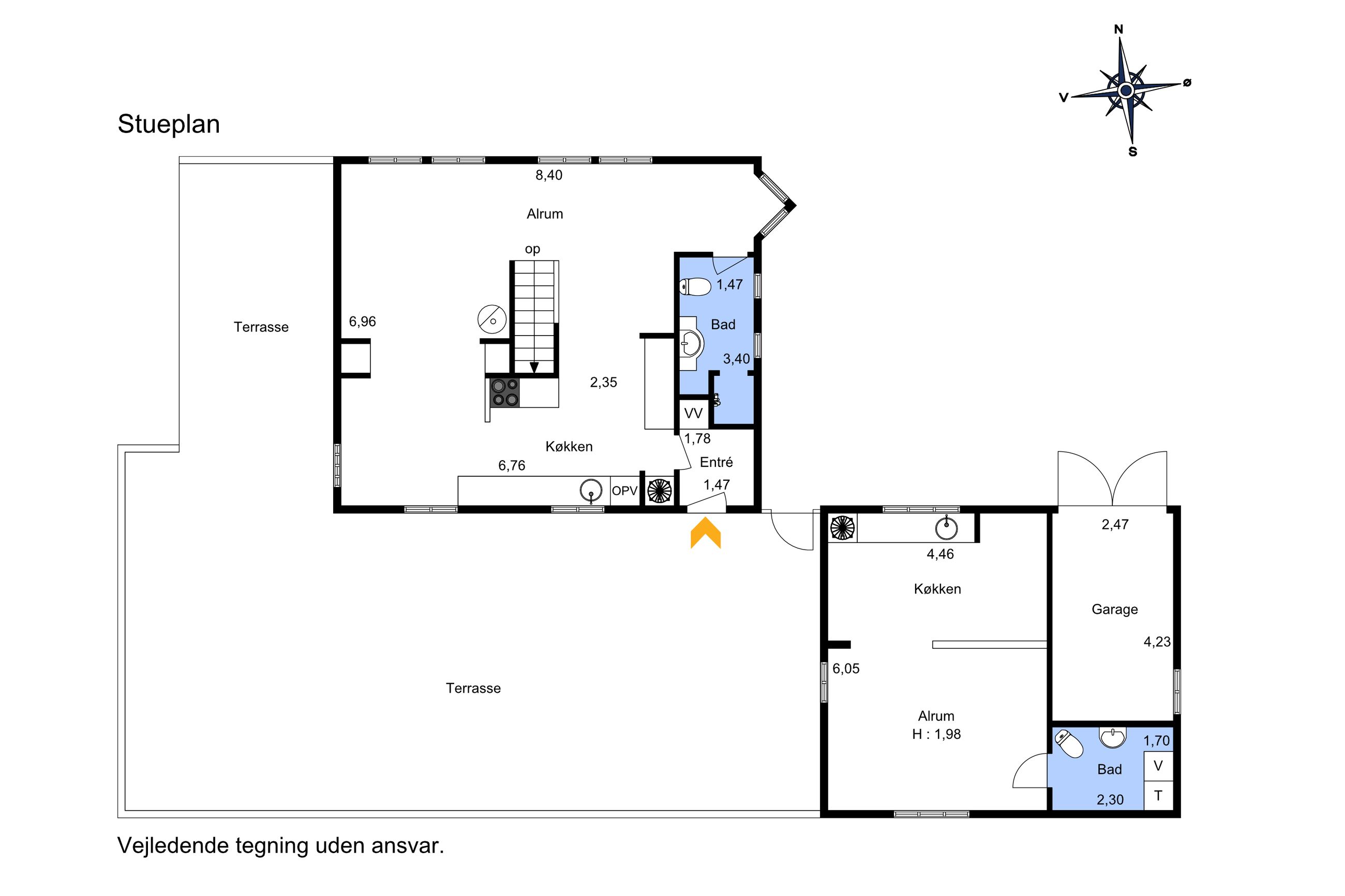 Desuden er der garage, hvor der er indrettet anneks. Anneks indeholder et grovkøkken, badeværelse og soverum.