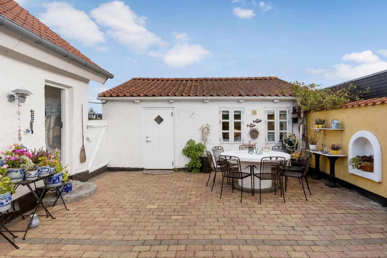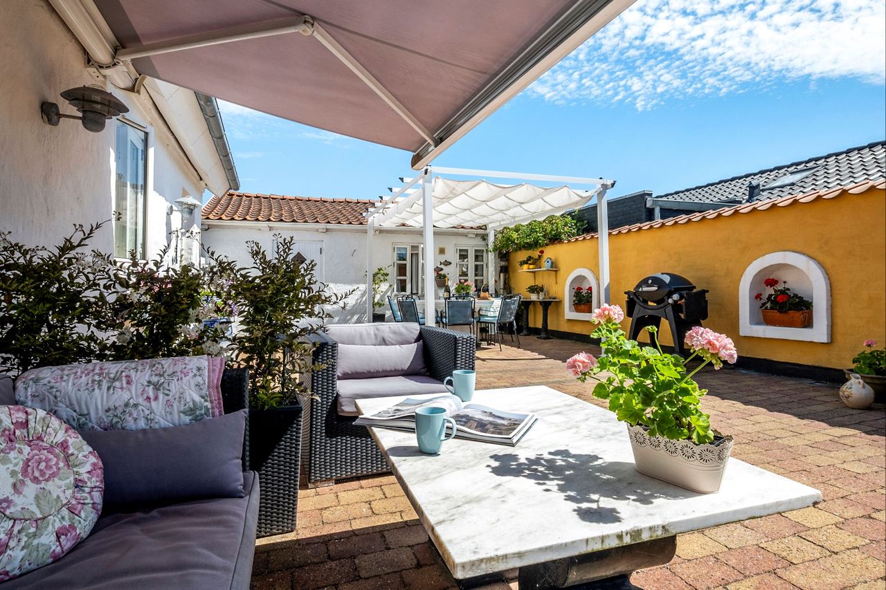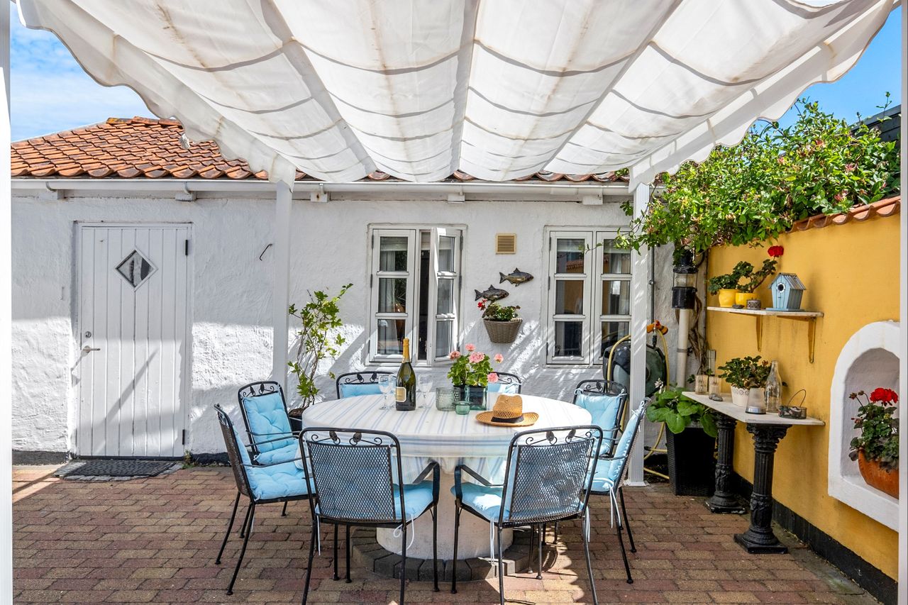 Huset har en dejlig lukket gårdhave - hvor man kan nyde solen og drikke en kop kaffe i ro.