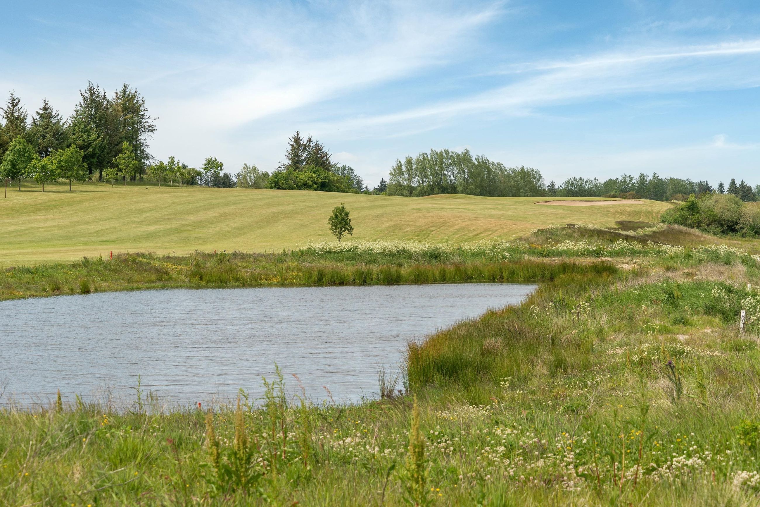 Golfklub er nærmeste nabo og her er der udsigt til flotte åbne arealer og skovrejsningsprojekt lige syd for