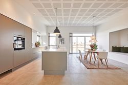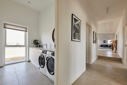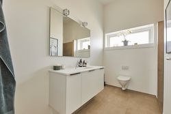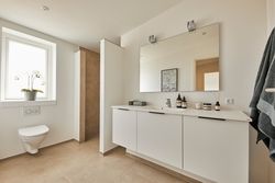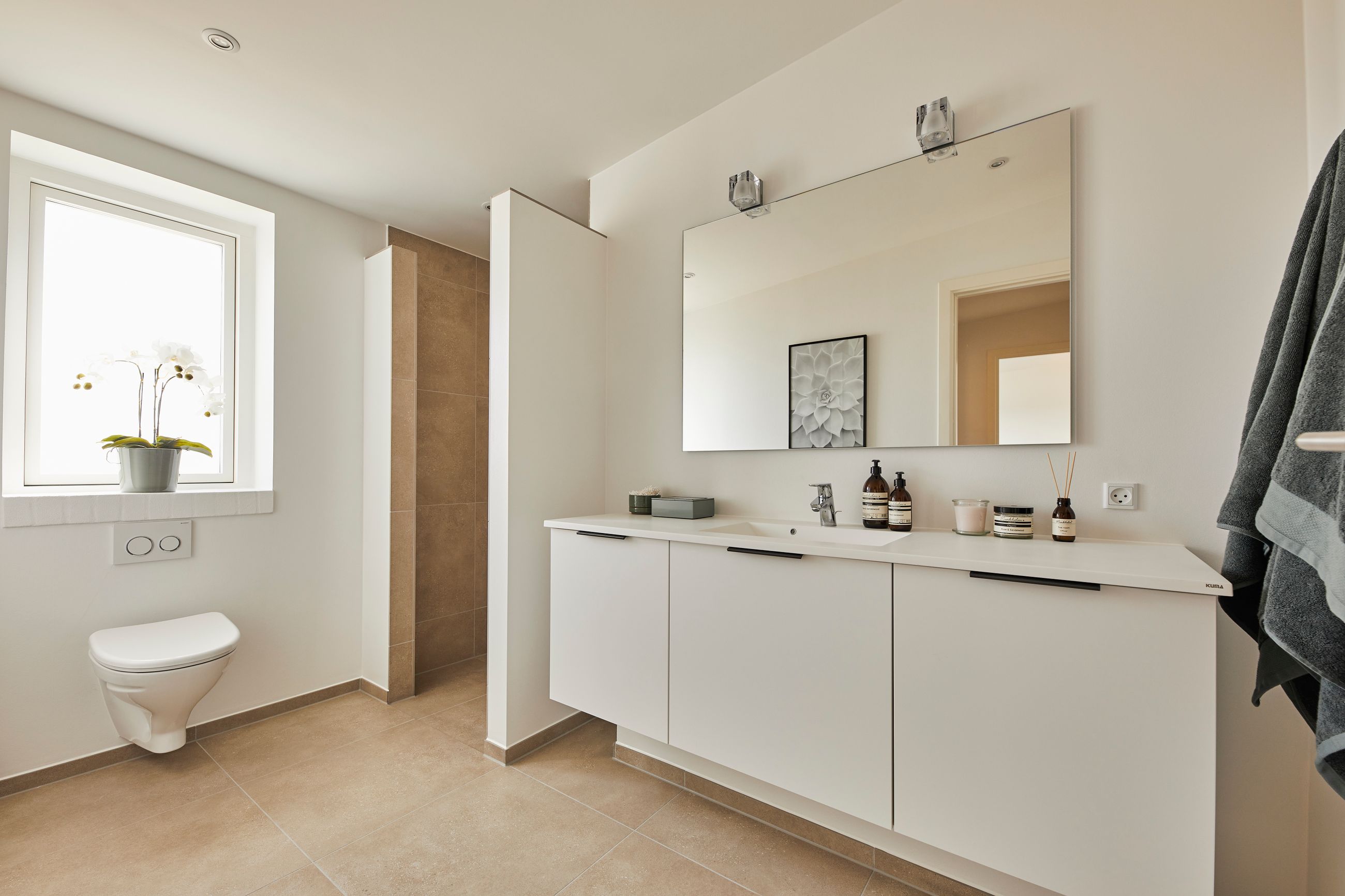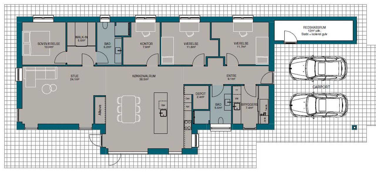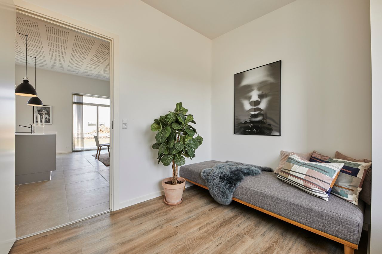 Overvejer du at bygge dit drømmehus i den attraktive udstykning, Gofthaven i Hjørring, så er det dette projektforslag fra Milton Huse måske noget for dig!? Flot og funktionelt forskudt vinkelhus på 170 m2 med ensidig taghælding, opført med tagpap uden listedækning på hele huset. Der er arkitekttagrender, nedløb og inddækning i sort alu og vinduerne er Rationel Aura Plus, 3-lags træ/alu lavenergi, sorte udvendigt og hvide indvendigt. Huset har desuden en 50 m2 stor integreret dobbelt carport med opmuret søjle samt redskabsrum, hvor gulvet er støbt og isoleret. Kom tørskoet fra carporten ind i husets entré med videre adgang til bryggers, 2 værelser og tilhørende badeværelse. Fra entréen er der adgang til det rummelige køkken/alrum, der er husets naturlige samlingsplads til hyggestunder og fælles madlavning. De skrå lofter med akustikfeler giver en dejlig stor rumfornemmelse og den indbyggede alkove indbyder til hygge og lektielæsning. Her er også direkte forbindelse til soveværelset med tilhørende dejligt badeværelse og walk-in. I stuen er der et flot lysindfald fra flere vinkler og udgang til terrassen. Gulve i entré, bryggers og begge badeværelser, herunder vægge i de store brusenicher, er med store flotte 60 x 60 cm fliser. I alle andre rum er der flotte akustikgulve i lyst design. I hele huset er der flotte hvide gipslofter og i køkken/alrummet er der skrå lofter med akustikfelter, der sikrer en optimal akustik og et godt indeklima i det store centrale rum. Samtlige vægge er beklædt med glasfilt. Alt inventar er fra HTH. Huset er med varmegenvindingsanlæg, som sikrer et perfekt indeklima og lavt energiforbrug. Husets energiklasse er LE2018 og opvarmning er med jordvarme. Vil du vide mere kontakt RealMæglerne Hjørring på tlf. 72 119 114.