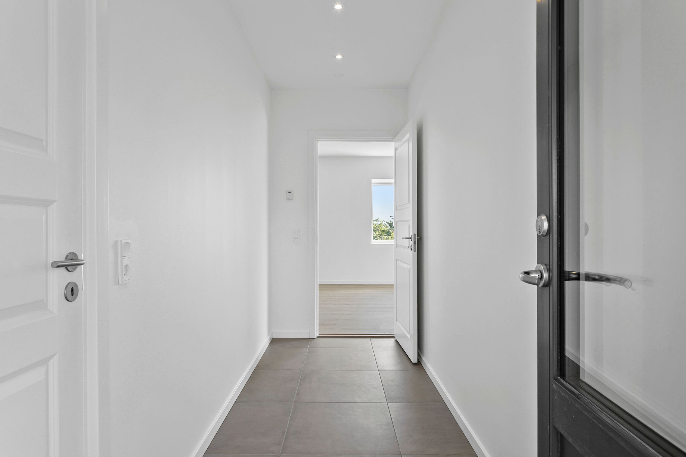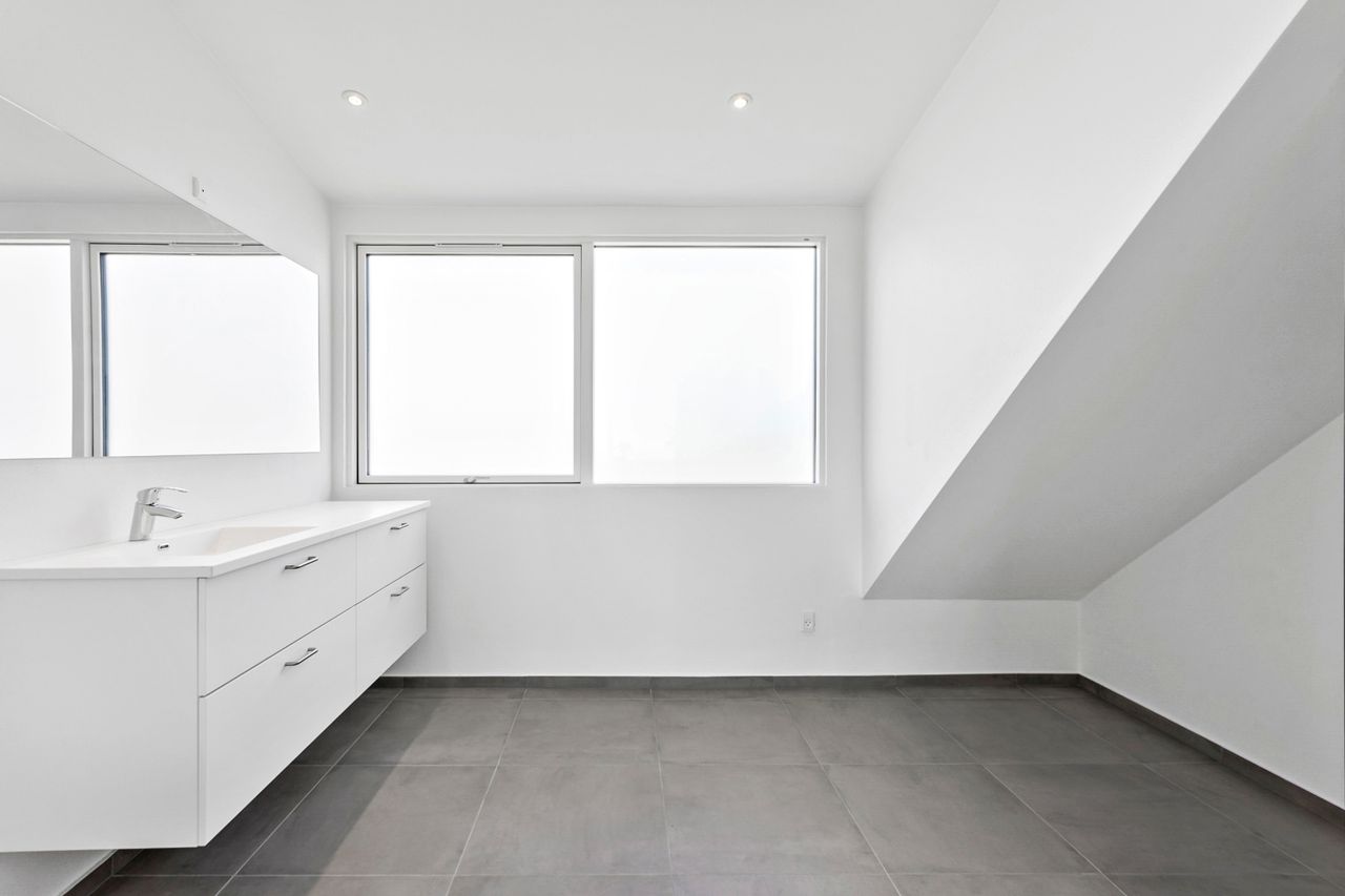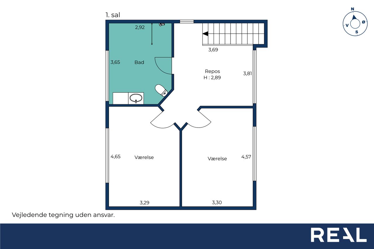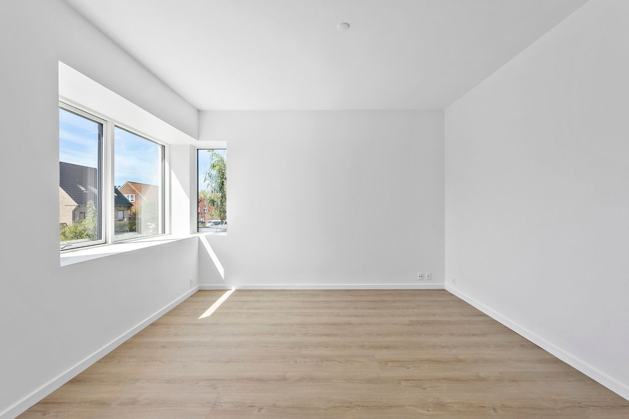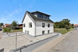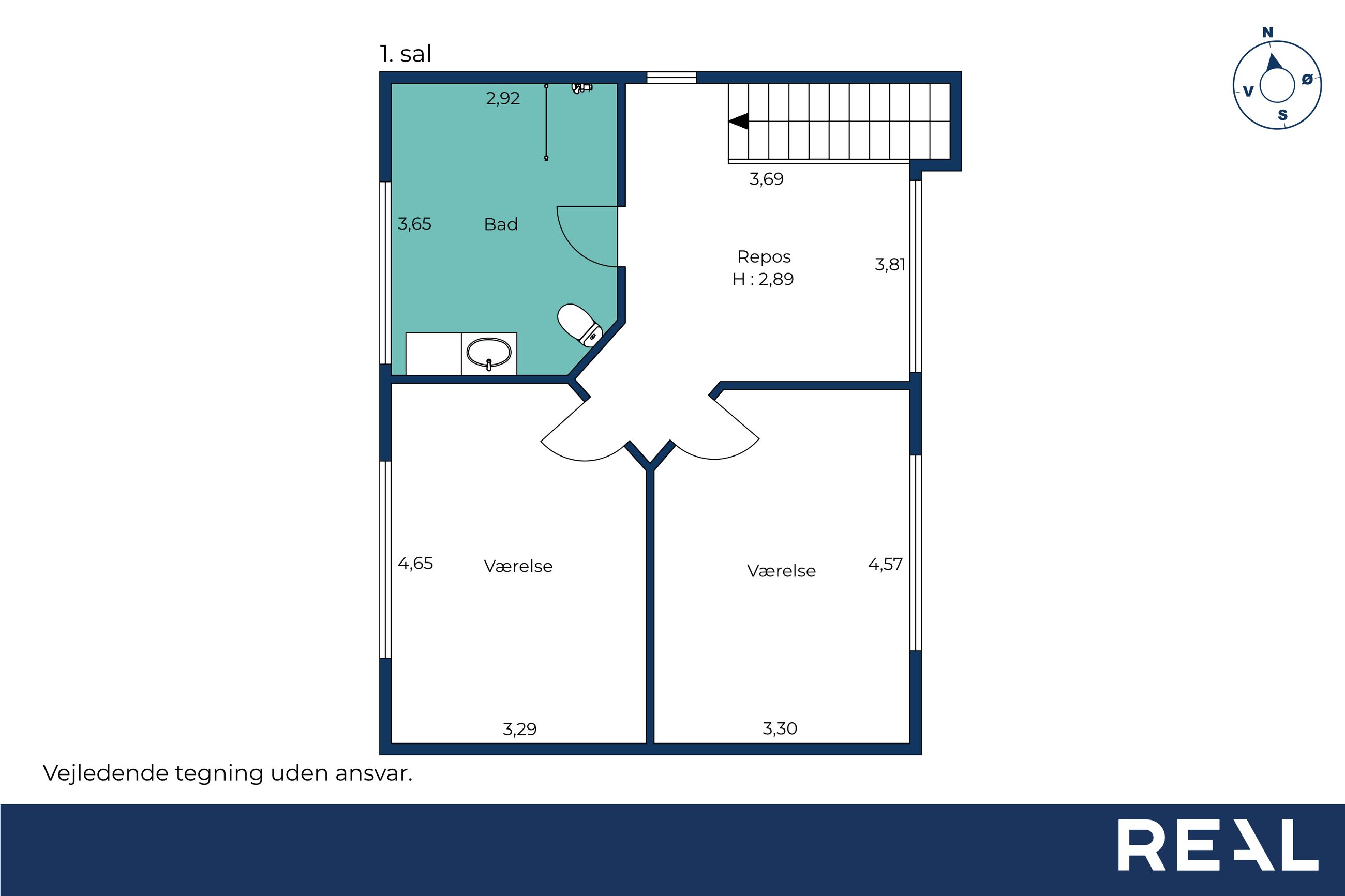 På husets overetage finder vi et stort repos, perfekt til hjemmekontor med udsigt mod øst så langt øjet rækker. Derudover er der to store værelser og et badeværelse med bruseniche. Taget er lavet med listedækning og tagpap fra 2016, hvilket fuldender villaens moderne udtryk.