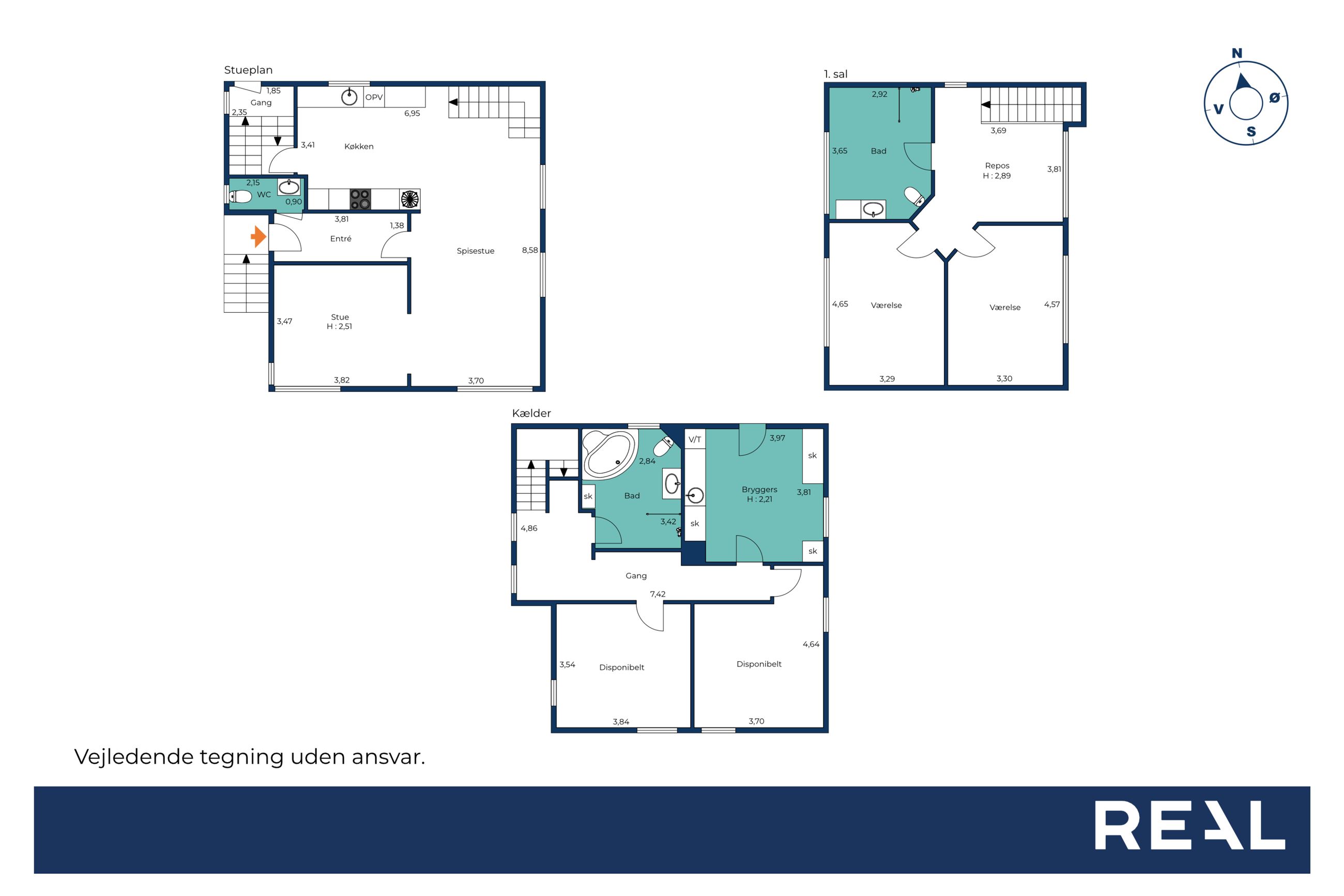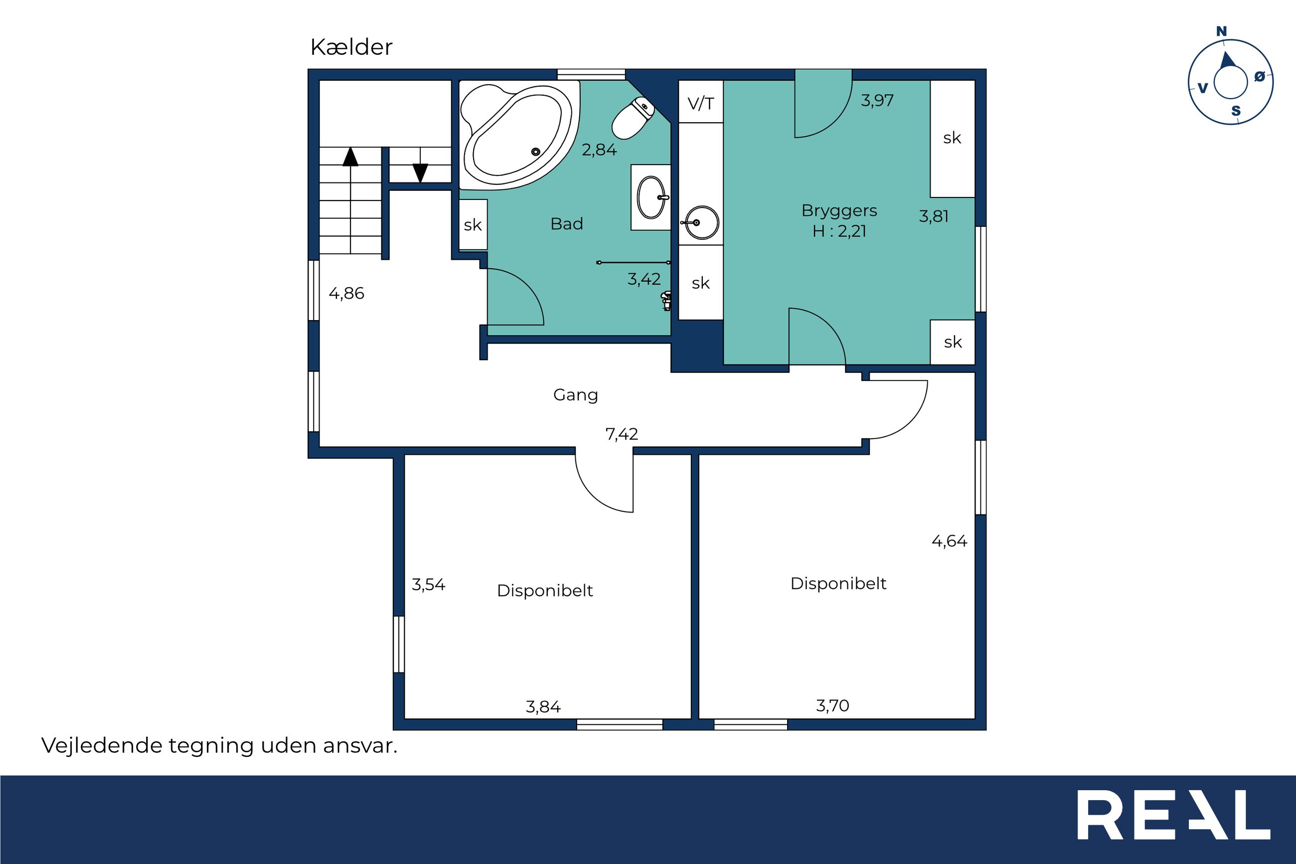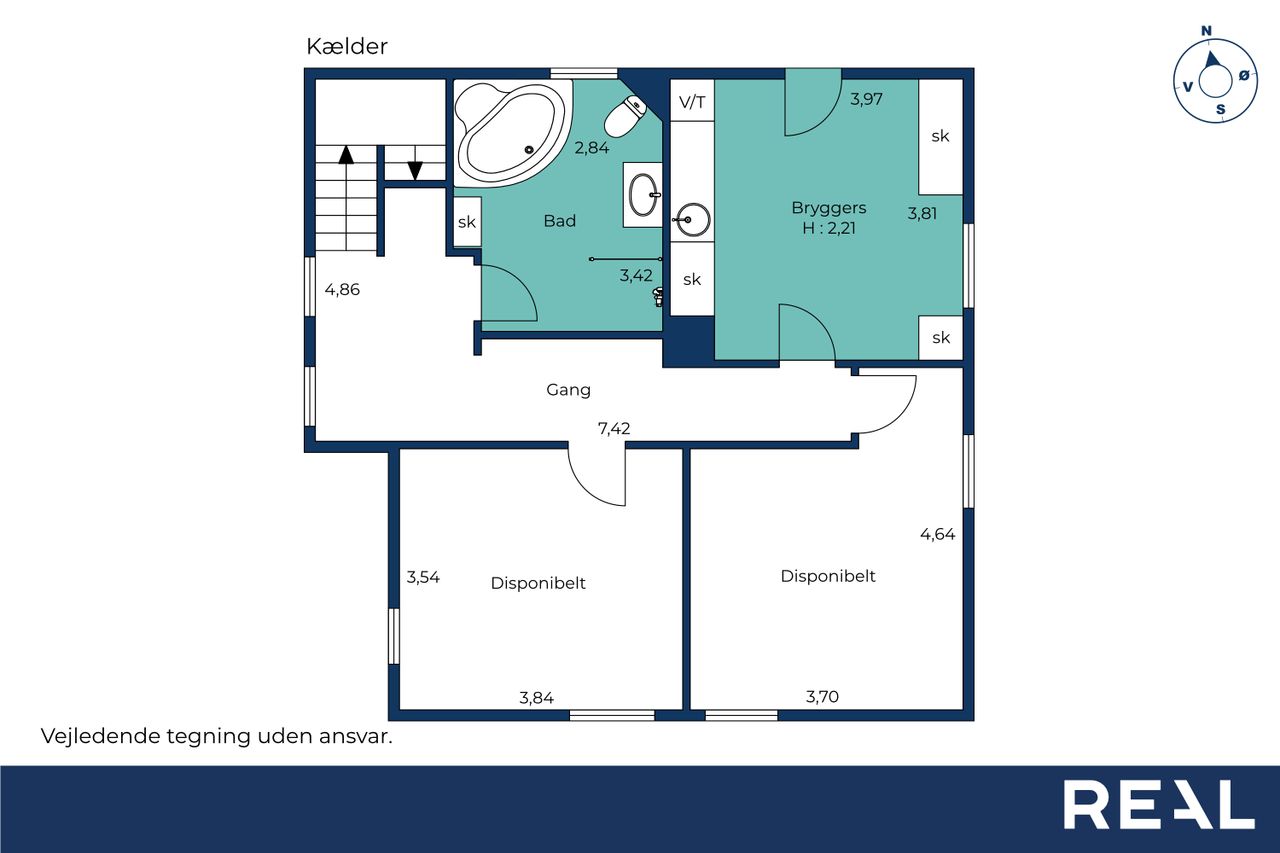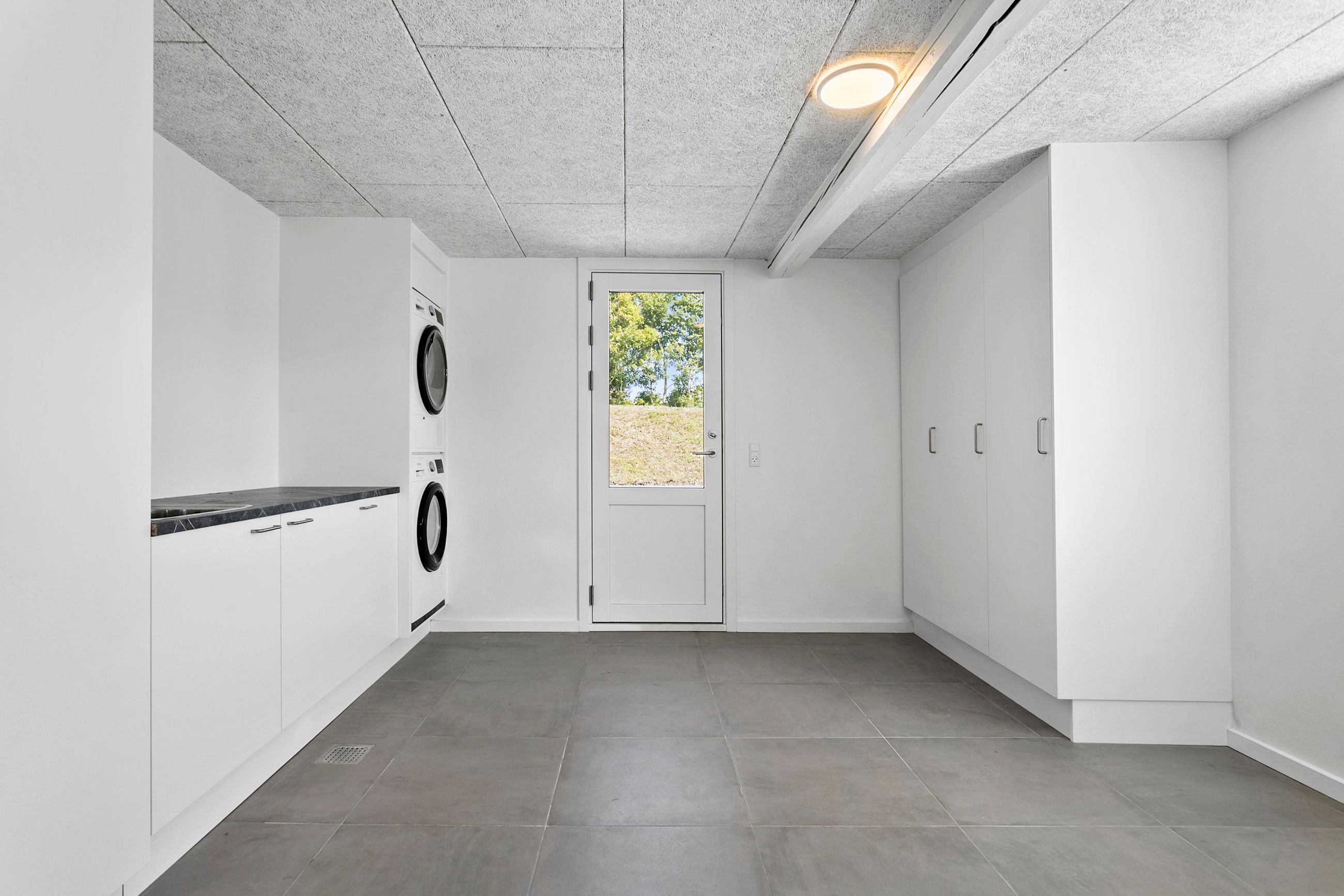 Indendørs er villaen opgraderet med gulvvarme på alle etager. Kælderen byder på et stort praktisk bryggers med vaskesøjle, to store værelser (godkendt til beboelse), og et rummeligt badeværelse med både bruseniche og badekar.