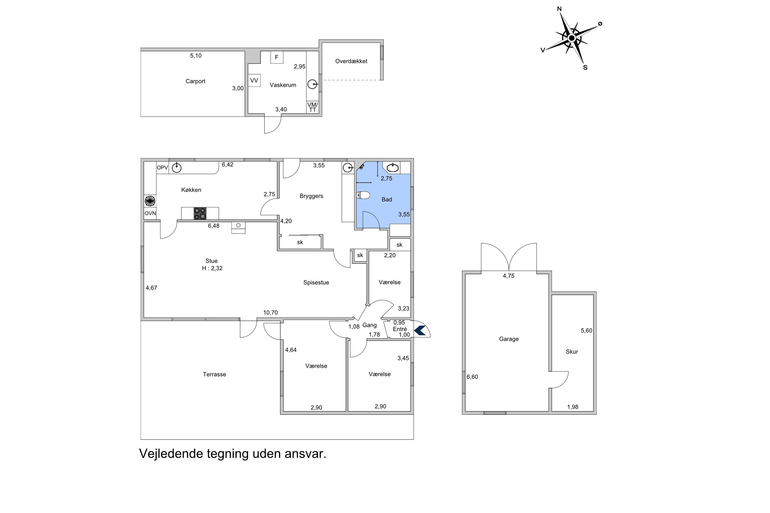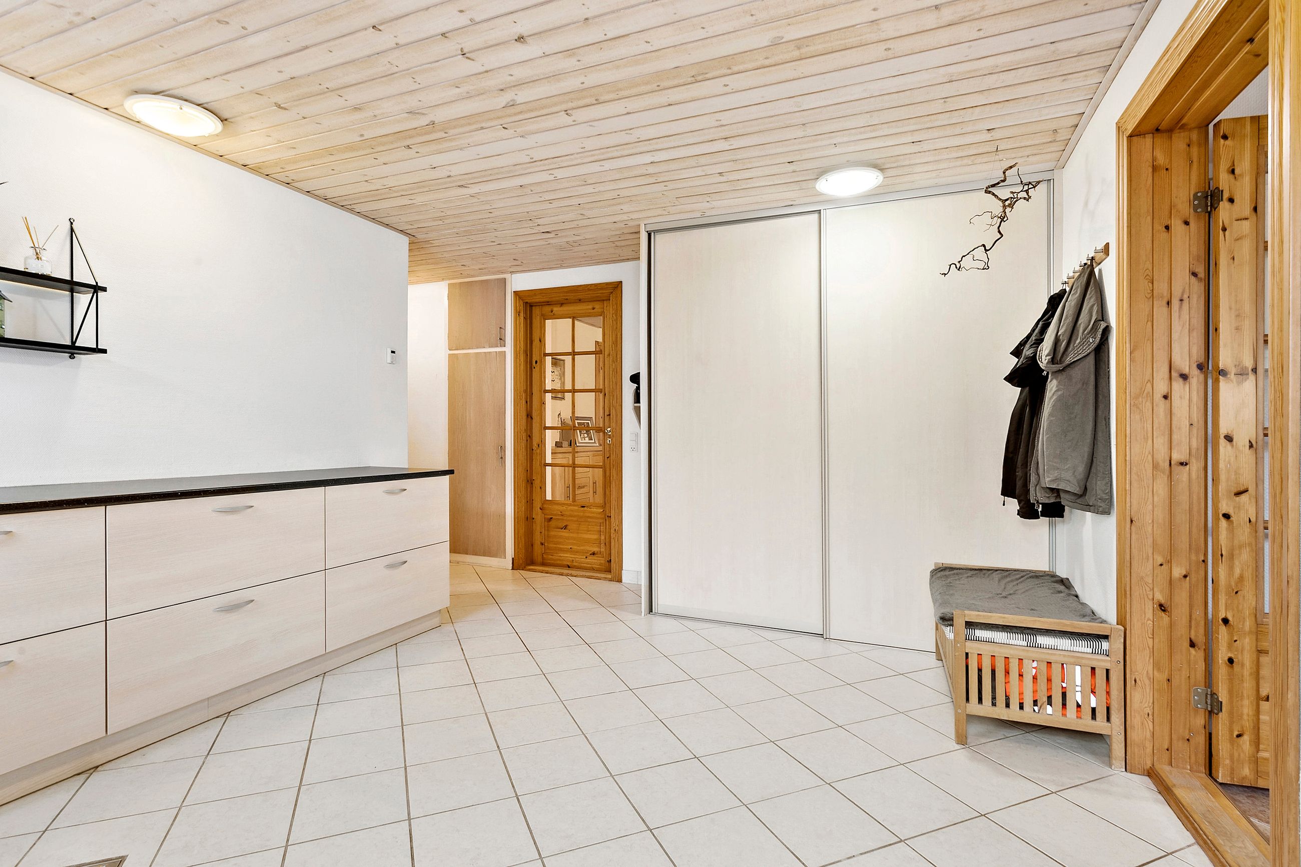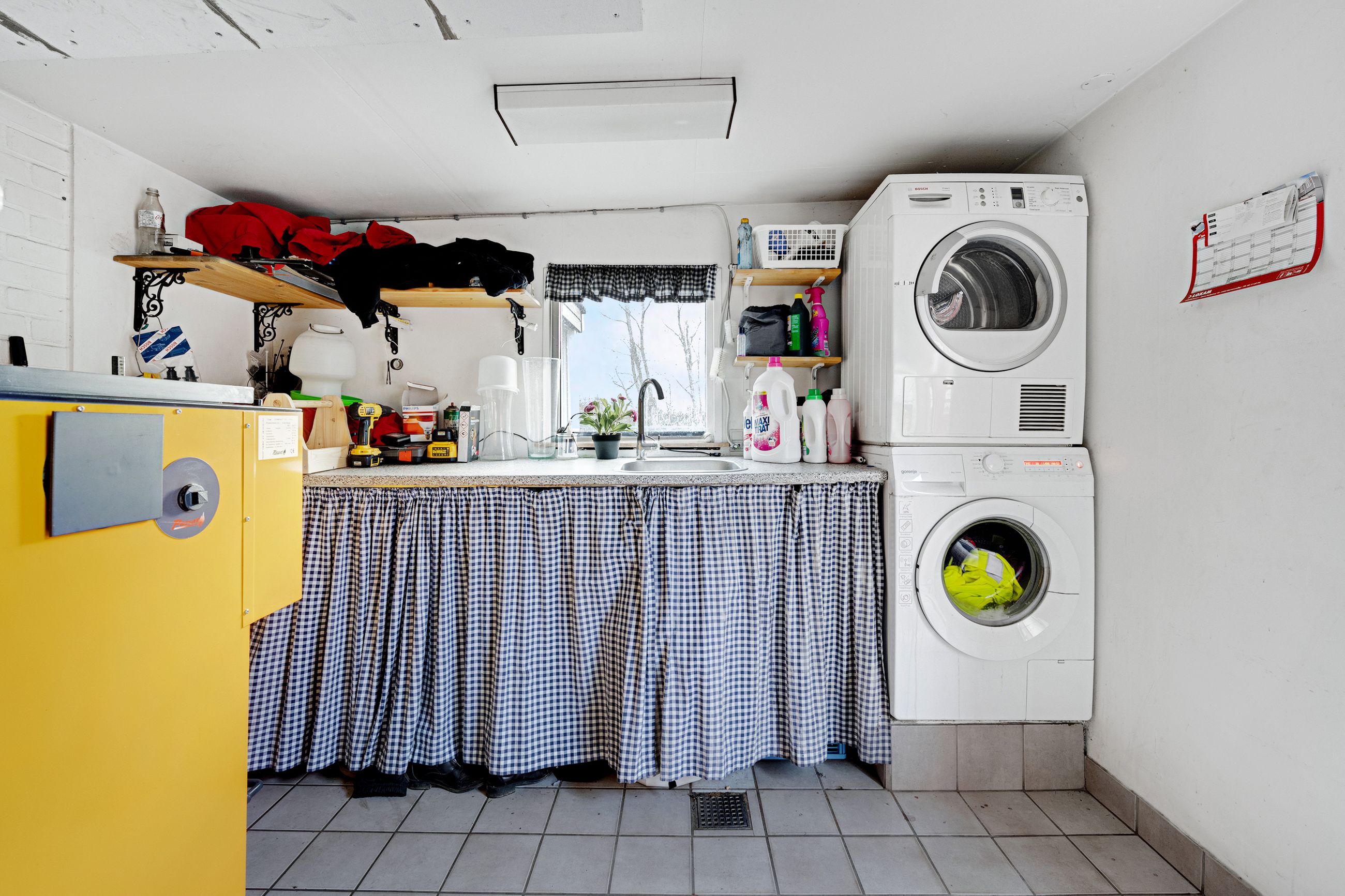 Boligen byder på: et rummeligt bryggers (hvor her er plads til både vaskemaskine og tørretumbler), et