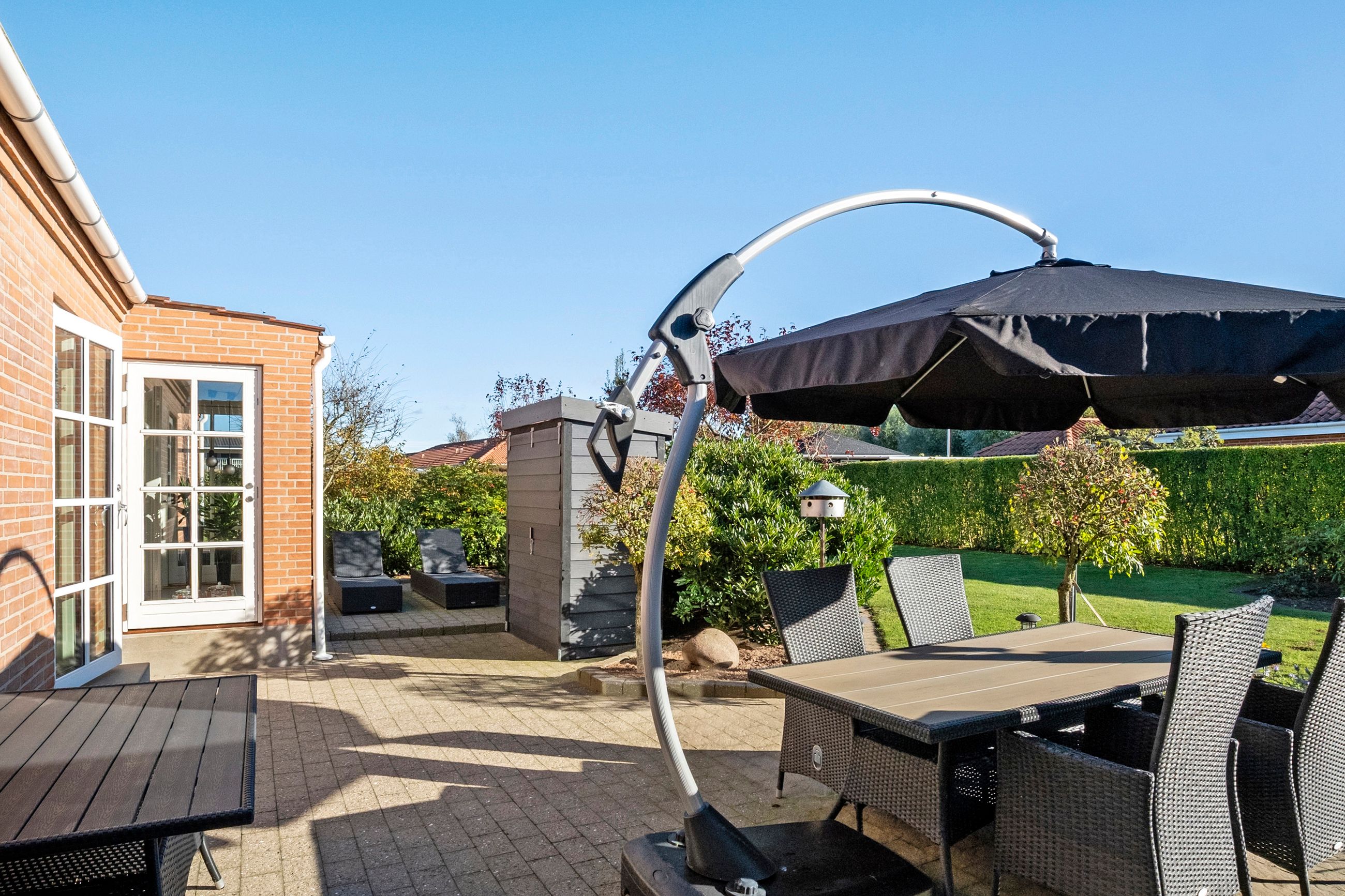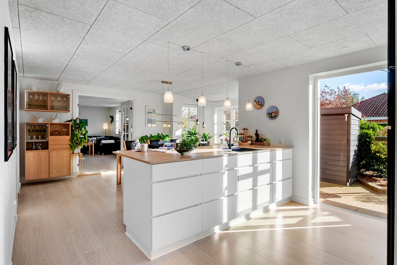 Fra køkkenet er der direkte udgang til en skøn, solrig terrasse