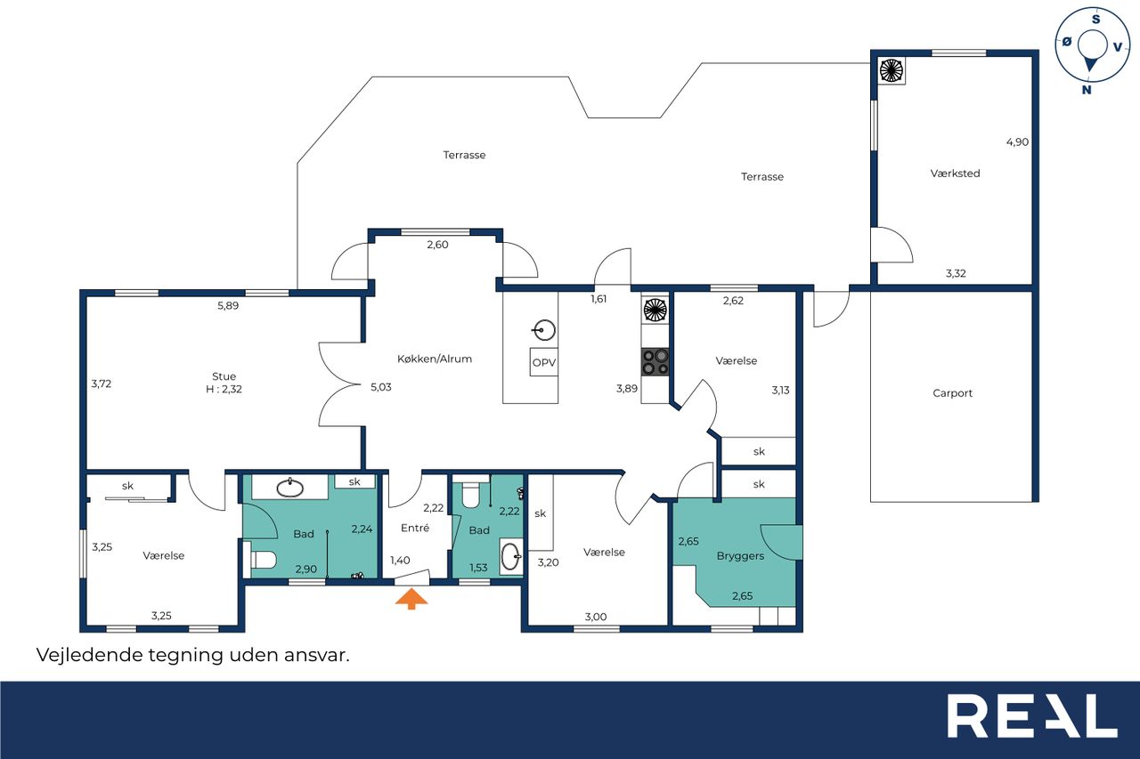 – Bryggers med plads til vaskefaciliteter
