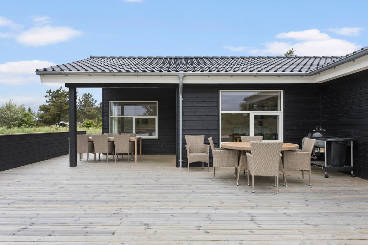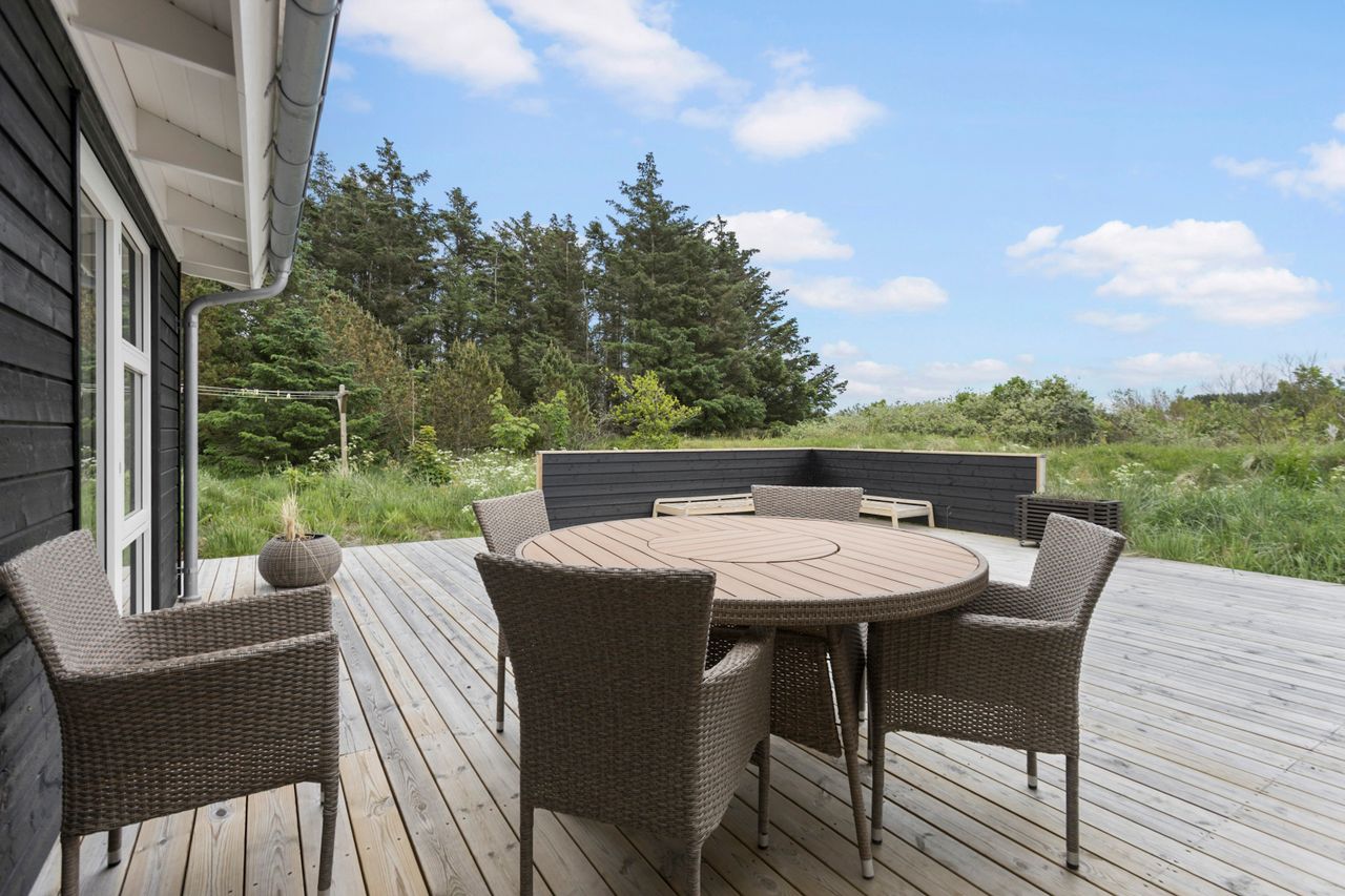 sætter den helt rigtige stemning. Fra stuen er der udgang til en stor sydvendt terrasse, hvor en del er