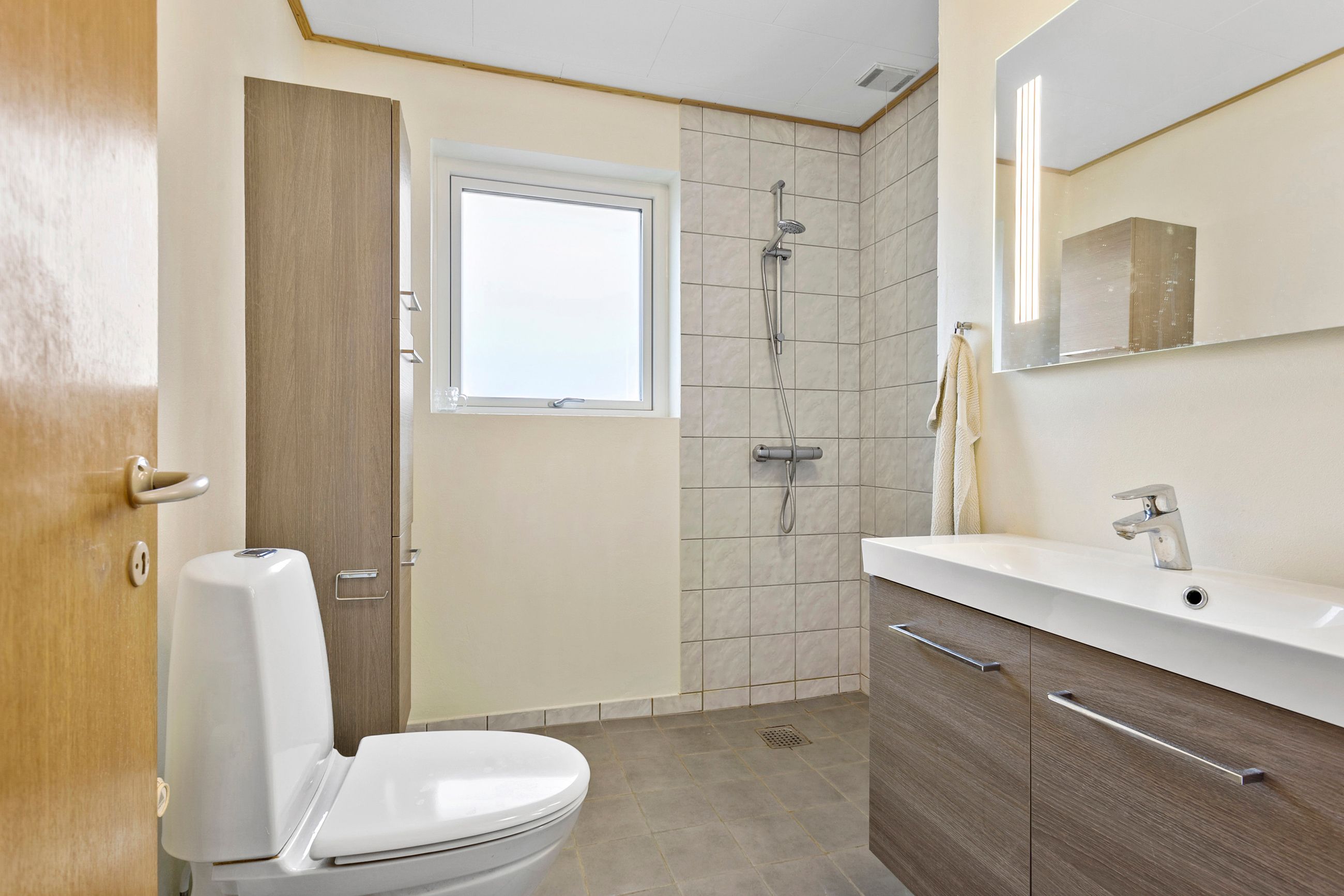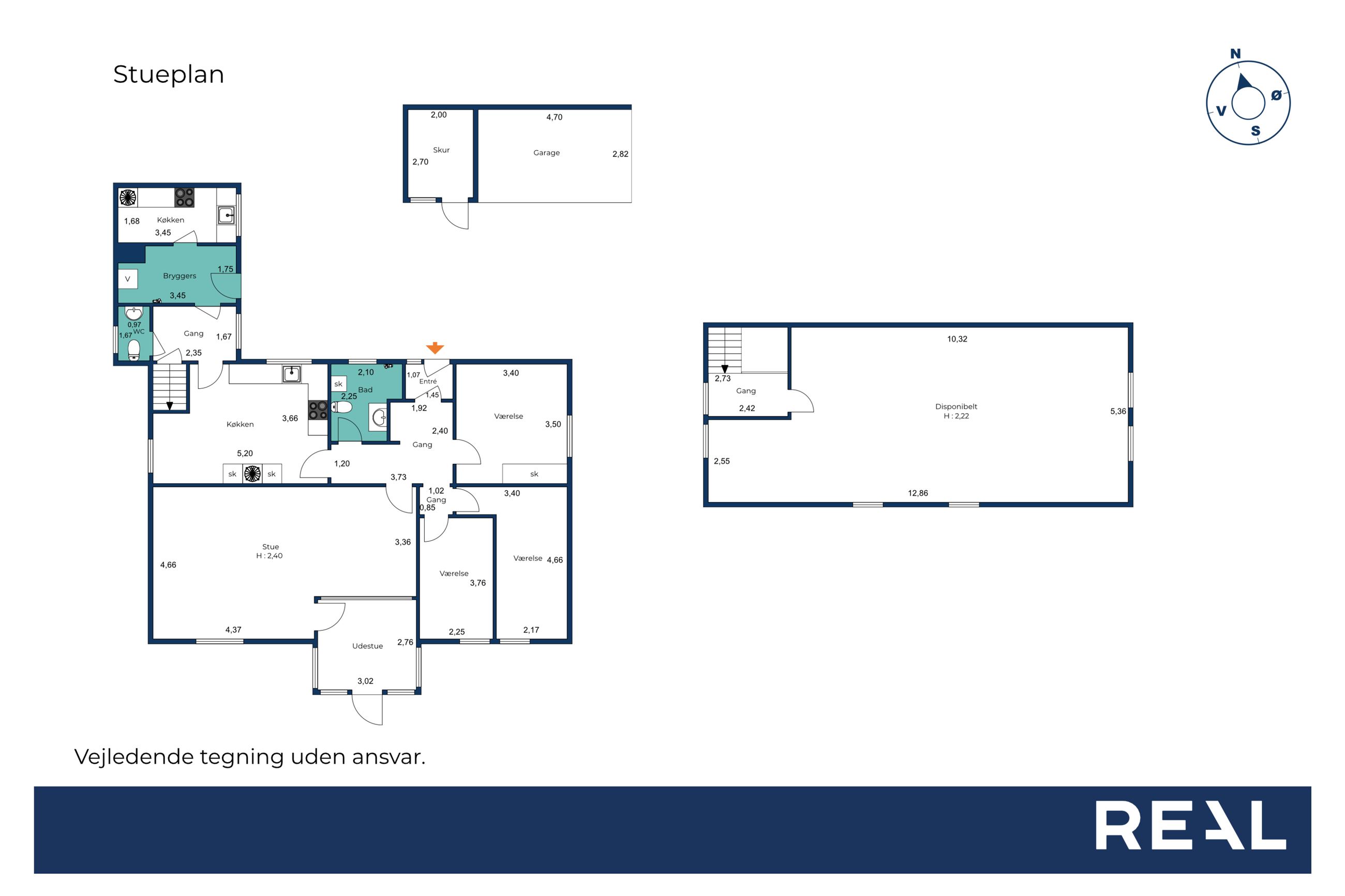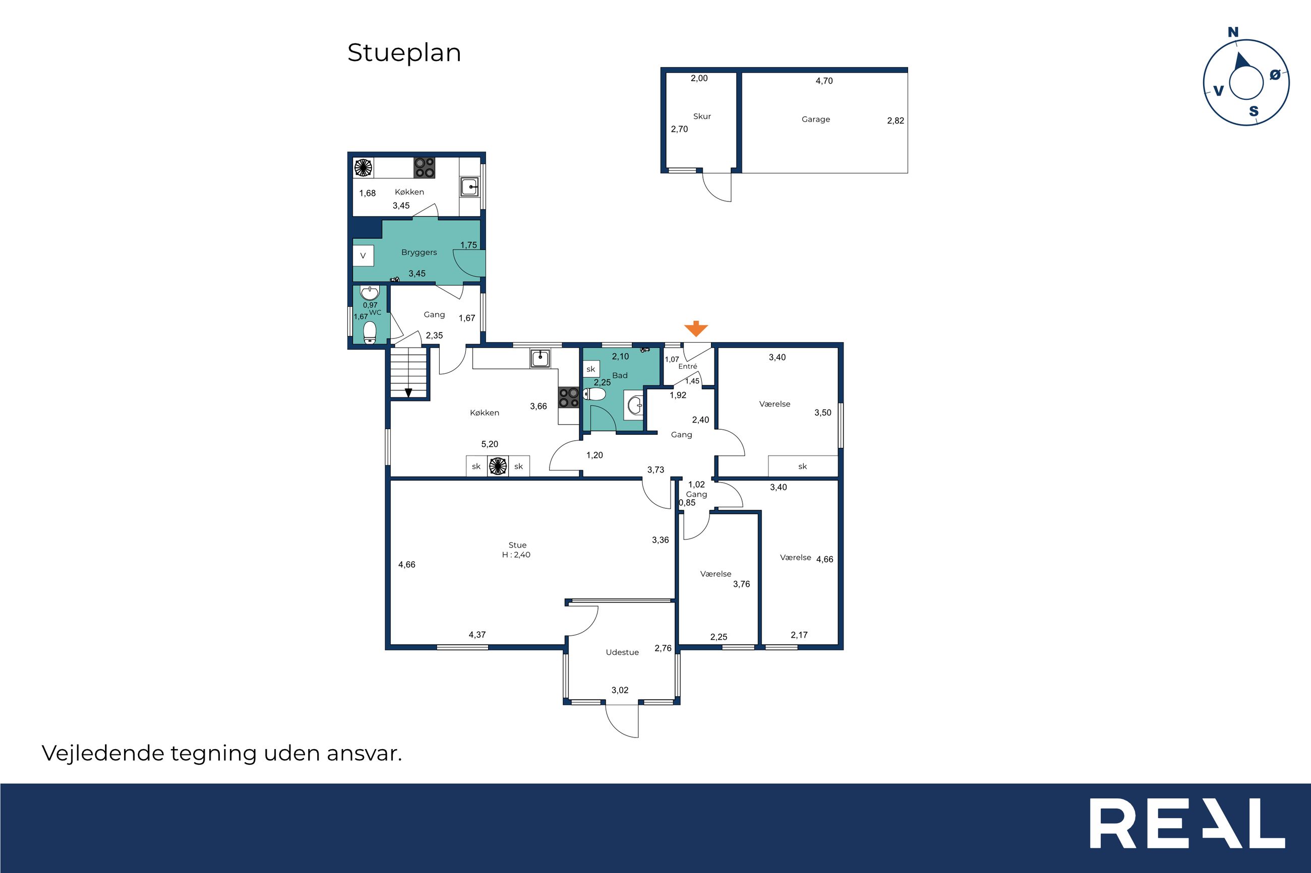 Ydermere byder stueplanen på til et lyst badeværelse, gæstetoilet, bryggers, lille