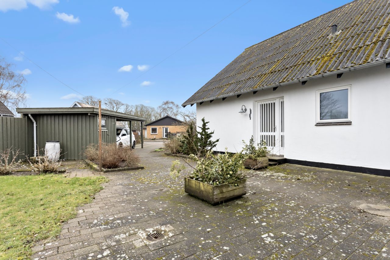 samt carport og skur.